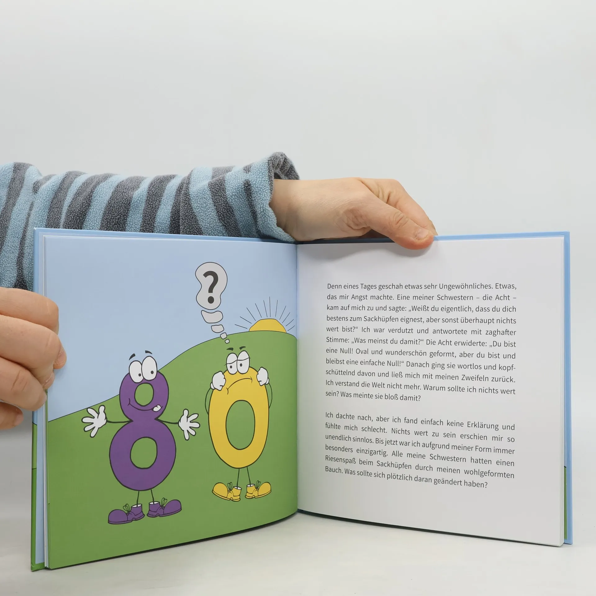 In dieser Geschichte lernen die Kinder ein Auf und Ab im Leben der Zahl 0 kennen. Sie setzen sich mit den Begriffen Freundschaft, Fröhlichkeit, Glück, Stolz, Zweifel und Kritik auseinander. Die Geschichte der Zahl 0 zeigt einen Weg, wie man schwierige Situationen durch liebevolle Begleitung von Freunden, Geschwistern oder Eltern in den Griff bekommen kann. So gewinnen Kinder mehr Selbstvertrauen und sind dadurch in der Lage, ihr Leben ein bisschen leichter zu meistern.