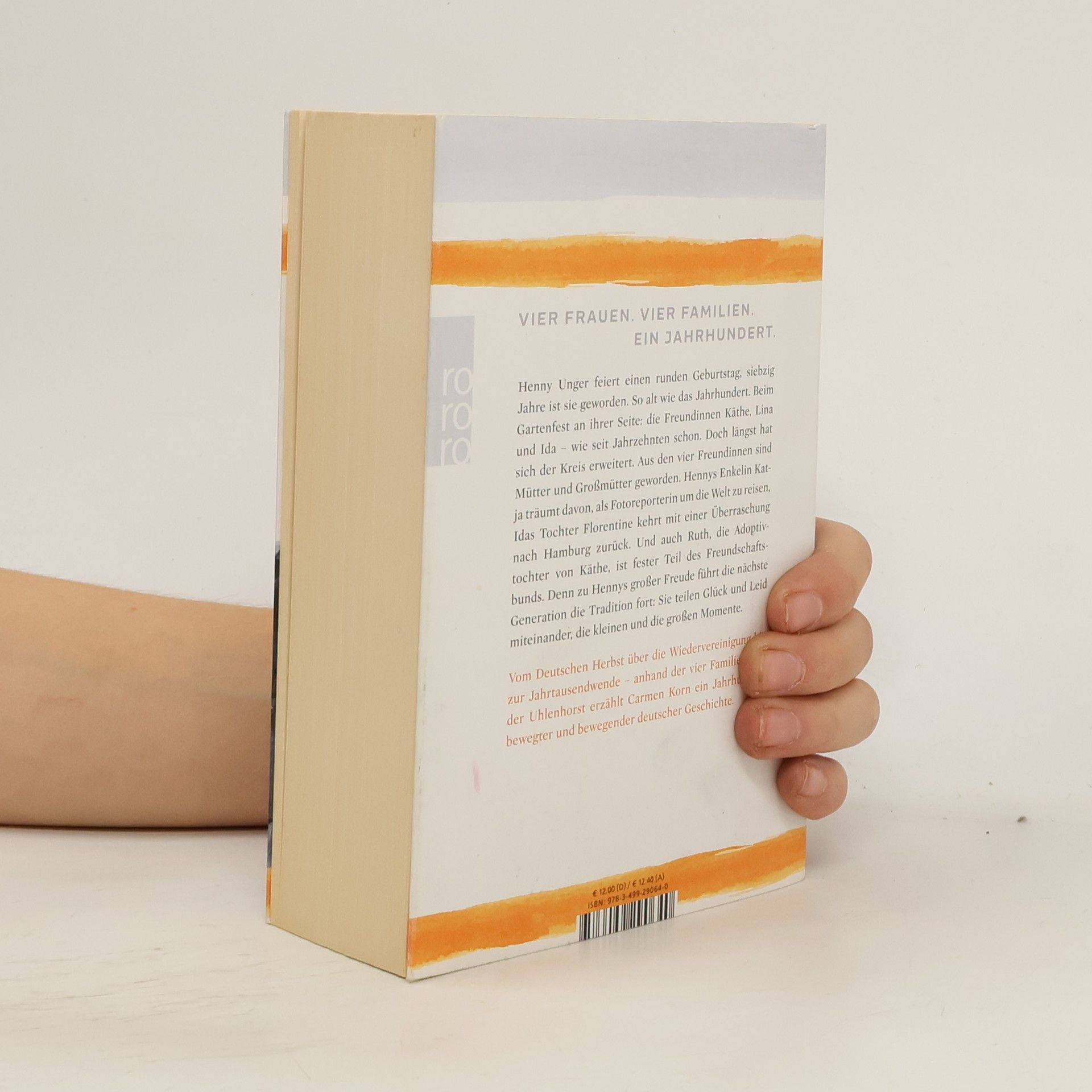 Der fulminante Abschluss der Bestseller-Trilogie endlich im Taschenbuch. Henny Unger feiert Geburtstag, siebzig Jahre ist sie geworden. So alt wie das Jahrhundert. Beim Gartenfest an ihrer Seite: die Freundinnen Käthe, Lina und Ida. Doch längst hat sich der Kreis der Gratulanten erweitert. Aus den vier Freundinnen sind Mütter und Großmütter geworden. Hennys Enkelin Katja träumt davon, als Fotoreporterin um die Welt zu reisen, Idas Tochter Florentine kehrt mit einer Überraschung nach Hamburg zurück. Und auch Ruth, die Adoptivtochter von Käthe, ist fester Teil des Freundschaftsbunds. Denn die nächste Generation führt die Tradition fort: Sie teilen Glück und Leid miteinander, die kleinen und die großen Momente. Vom Deutschen Herbst über die Wiedervereinigung bis zur Jahrtausendwende – anhand der vier Familien aus Uhlenhorst erzählt Carmen Korn ein Jahrhundert bewegter und bewegender deutscher Geschichte. Ihre Jahrhunderttrilogie begeistert unzählige Leser und Leserinnen.