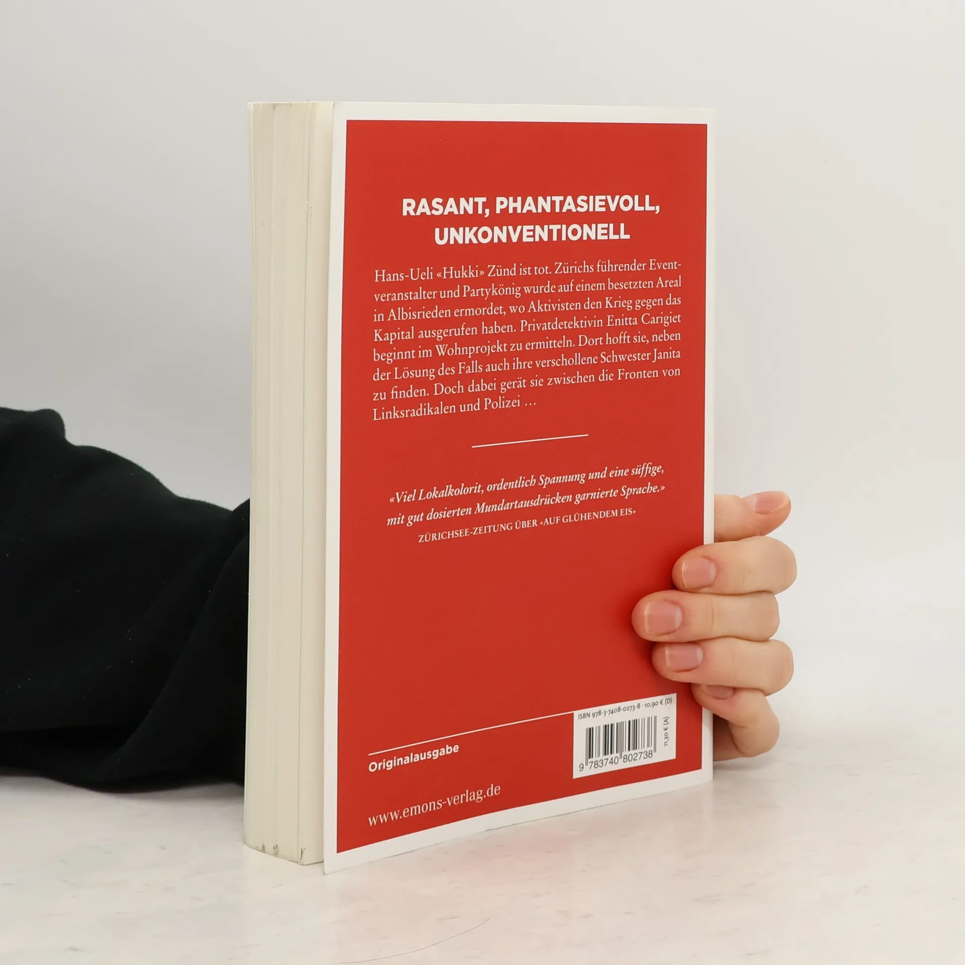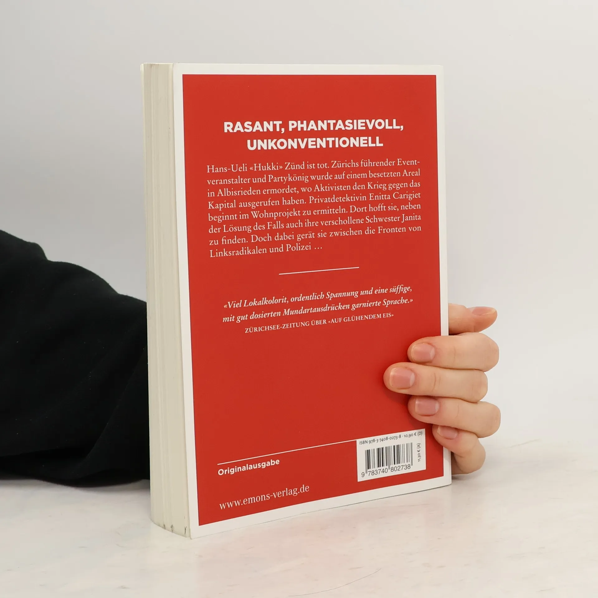 Ein neuer Fall für die Privatdetektivin und den Velokurier. Hans-Ueli «Hukki» Zünd ist tot. Zürichs führender Eventveranstalter und Partykönig wurde auf einem besetzten Areal in Albisrieden ermordet, wo Aktivisten den Krieg gegen das Kapital ausgerufen haben. Privatdetektivin Enitta Carigiet beginnt im Wohnprojekt zu ermitteln. Dort hofft sie, neben der Lösung des Falls auch ihre verschollene Schwester Janita zu finden. Doch dabei gerät sie zwischen die Fronten von Linksradikalen und Polizei ...