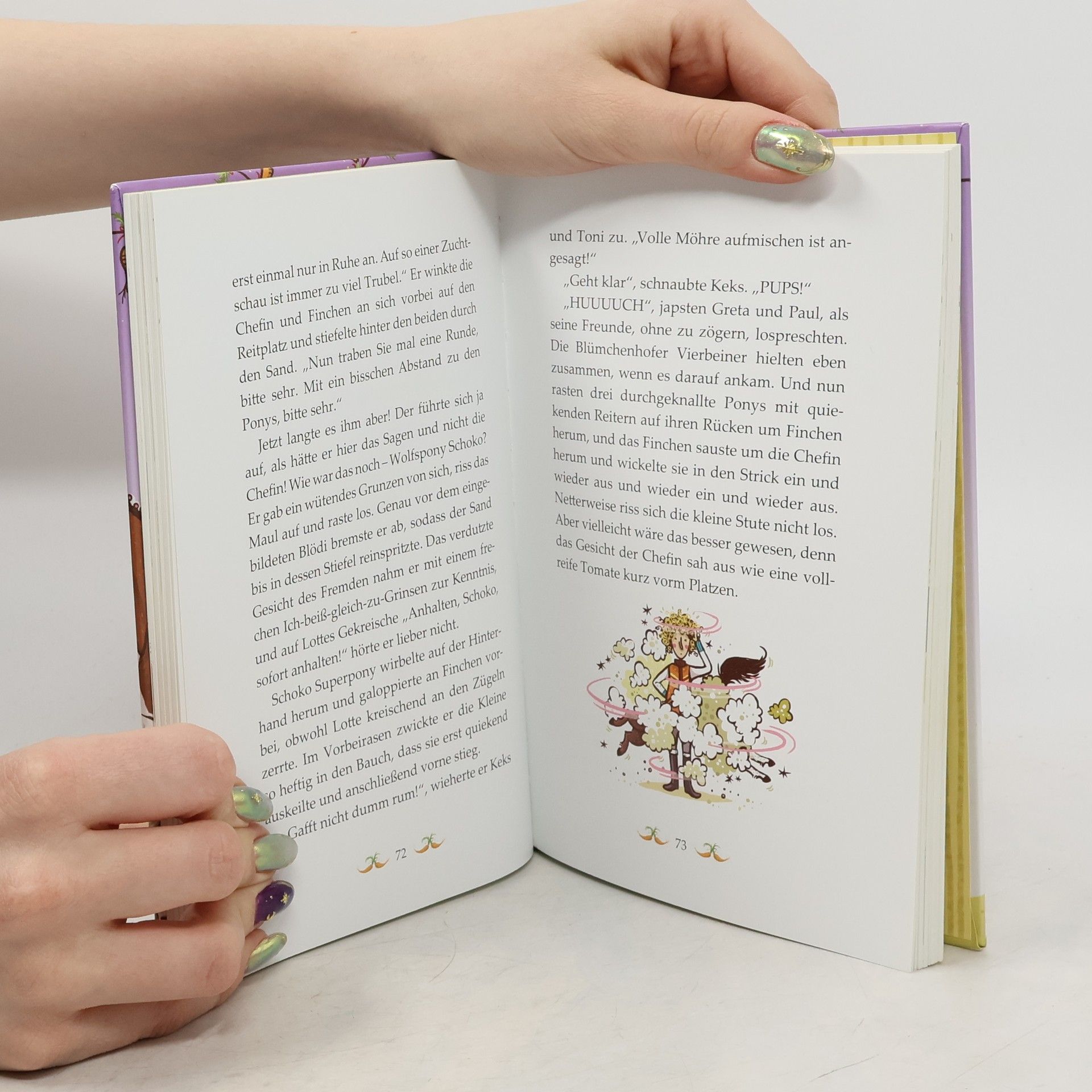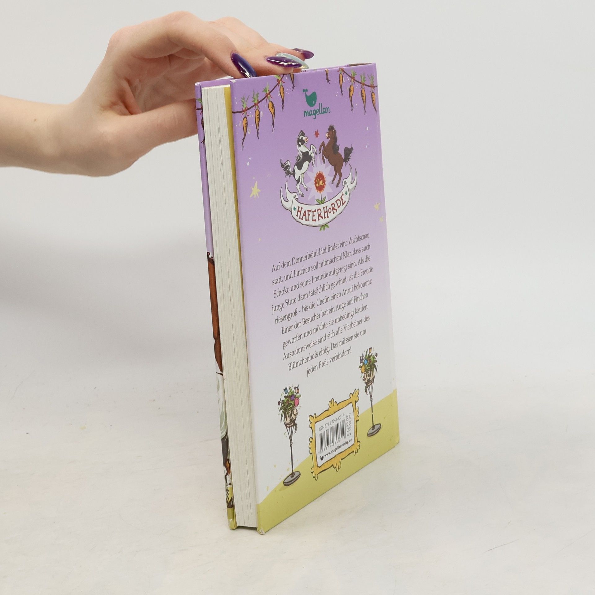 Auf dem Donnerheini-Hof findet eine Zuchtschau statt, und Finchen soll mitmachen! Klar, dass auch Schoko und seine Freunde aufgeregt sind und die junge Stute nach Ponykräften unterstützen. Als Finchen dann tatsächlich gewinnt, ist die Freude riesengroß – bis die Chefin während der Siegesfeier einen Anruf bekommt: Einer der Besucher hat ein Auge auf die junge Stute geworfen und macht der Chefin ein ziemlich attraktives Kaufangebot. Ausnahmsweise sind sich alle Vierbeiner des Blümchenhofs einig: Das müssen sie um jeden Preis verhindern!