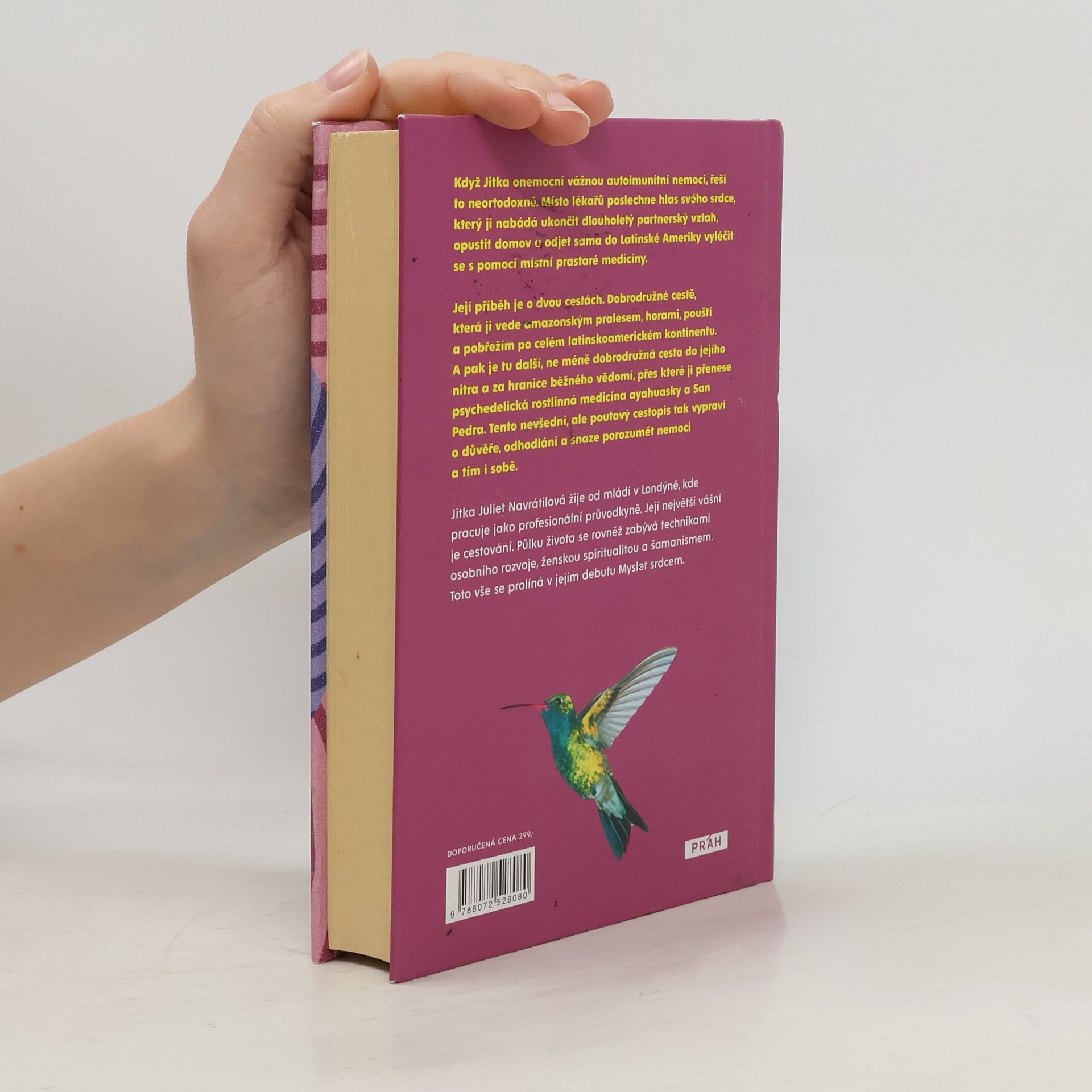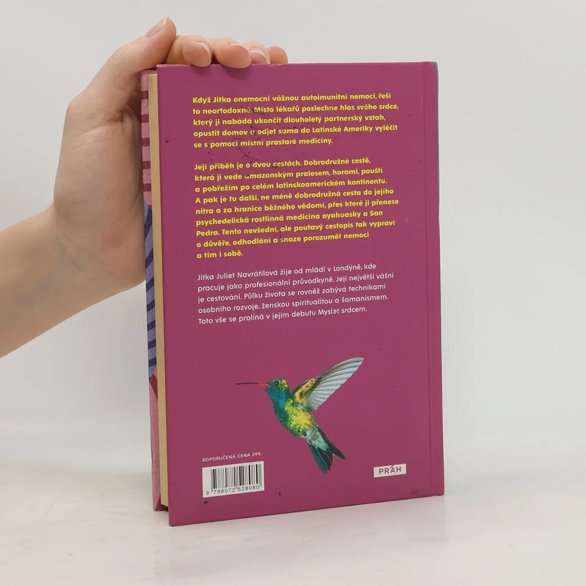 Když Jitka onemocní vážnou autoimunitní nemocí, řeší to neortodoxně. Místo lékařů poslechne hlas svého srdce, který ji nabádá ukončit dlouholetý partnerský vztah, opustit domov a odjet sama do Latinské Ameriky vyléčit se s pomocí místní prastaré medicíny. Její příběh je o dvou cestách. Dobrodružné cestě, která ji vede amazonským pralesem, horami, pouští a pobřežím po celém latinskoamerickém kontinentu. A pak je tu další, ne méně dobrodružná cesta do jejího nitra a za hranice běžného vědomí, přes které ji přenese psychedelická rostlinná medicína ayahuasky a San Pedra. Tento nevšední, ale poutavý cestopis tak vypraví o důvěře, odhodlání a snaze porozumět nemoci a tím i sobě.