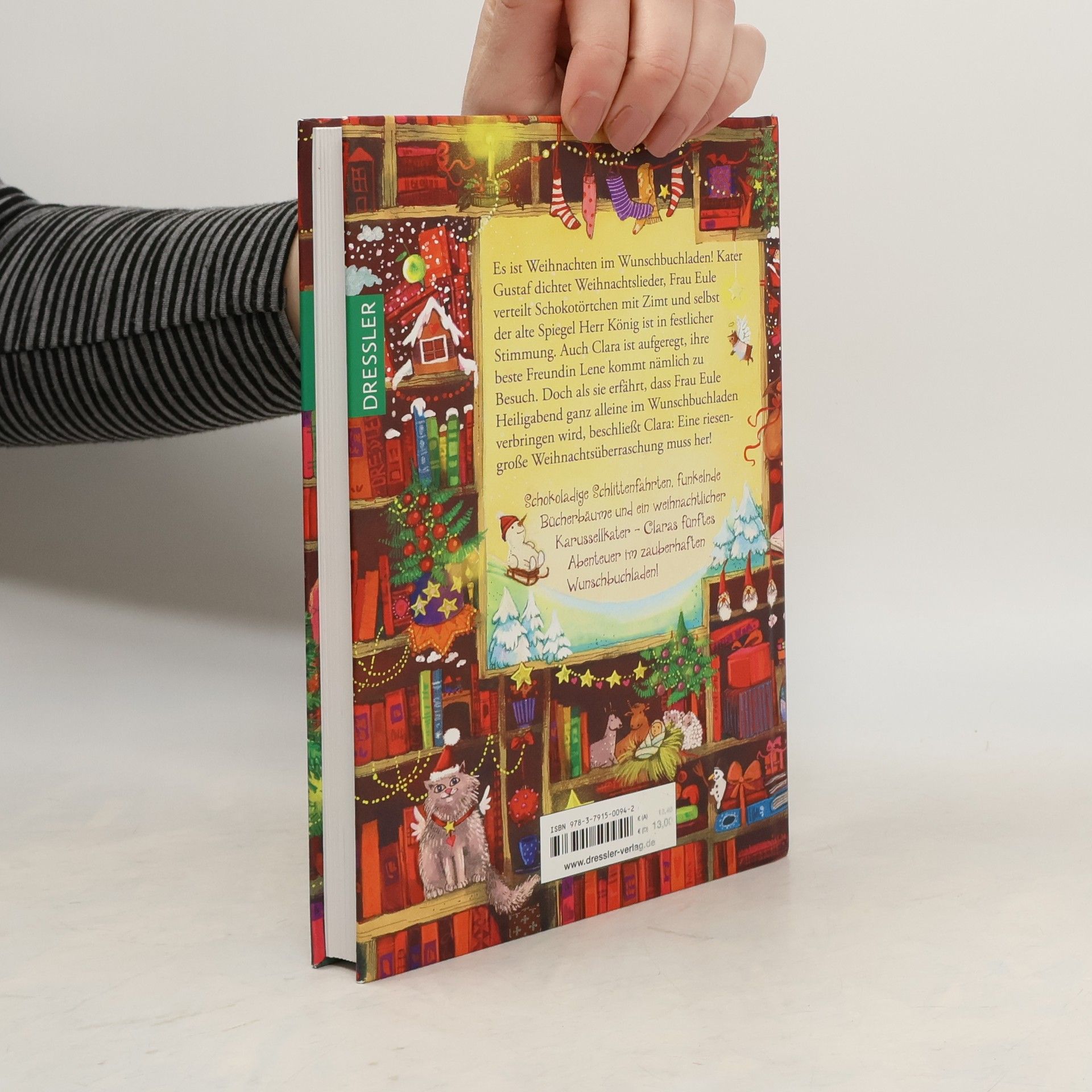 Magische Weihnachten im Wunschbuchladen Es weihnachtet sehr im zauberhaften Wunschbuchladen von Frau Eule. Gustaf, der sprechende Kater, hat viel Vergnügen auf dem Weihnachtsmarkt, Claras beste Freundin Lene kommt zu Besuch, und alle freuen sich auf Heiligabend. Doch dann findet Clara heraus, dass Frau Eule die schönste Zeit des Jahres ganz alleine verbringt. Das kann Clara natürlich nicht zulassen! Zusammen mit allen Bücherfreunden der Stadt macht sie Frau Eule eine riesengroße Weihnachtsfreude! „Der zauberhafte Wunschbuchladen. Weihnachten mit Frau Eule“ von Katja Frixe versüßt die Zeit bis zum Fest. Alle 6 Bände der Reihe sind sowohl als Hardcover als auch als E-Book verfügbar: Band 1: Der zauberhafte Wunschbuchladen Band 2: Der hamsterstarke Harry Band 3: Schokotörtchen für alle! Band 4: Die wilden Vier Band 5: Weihnachten mit Frau Eule Band 6: Eine Schule hält zusammen