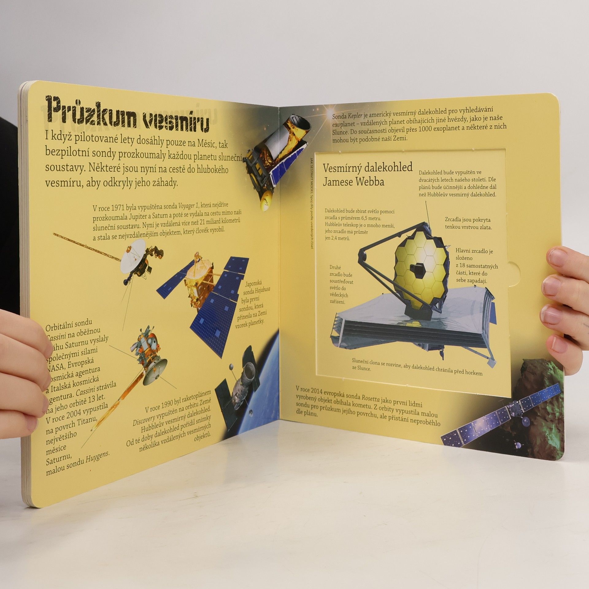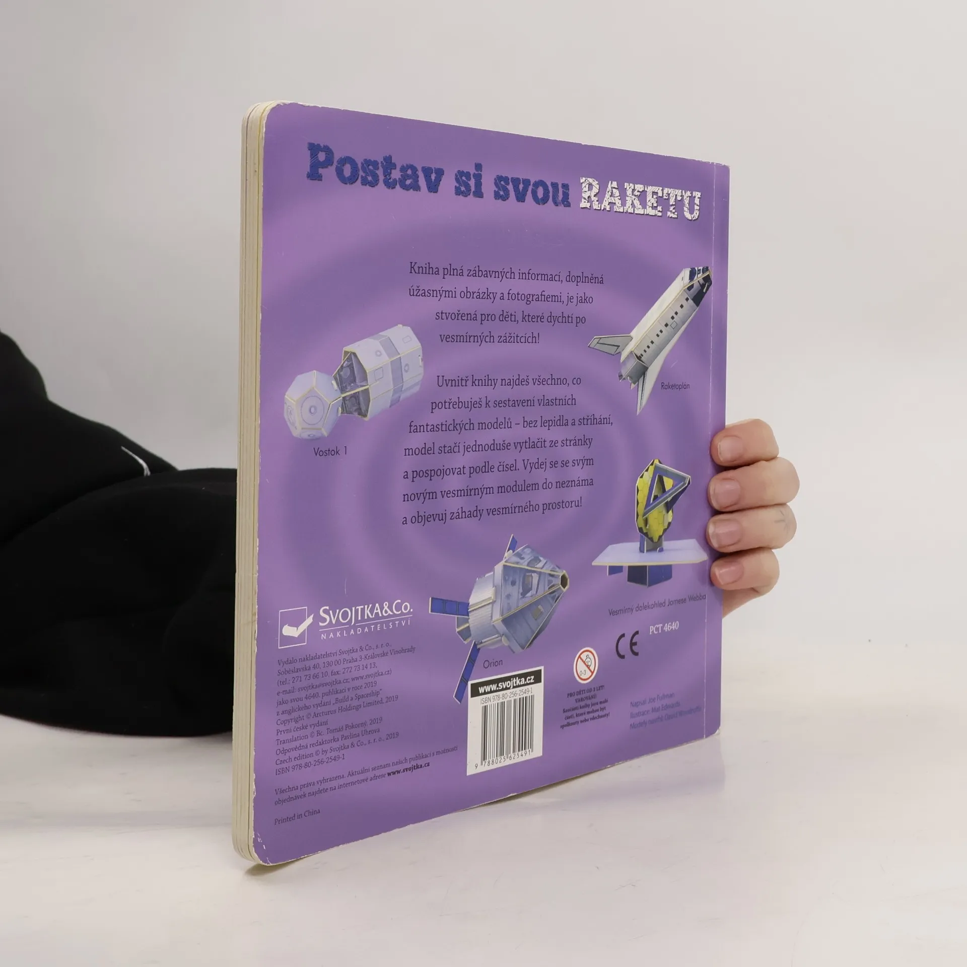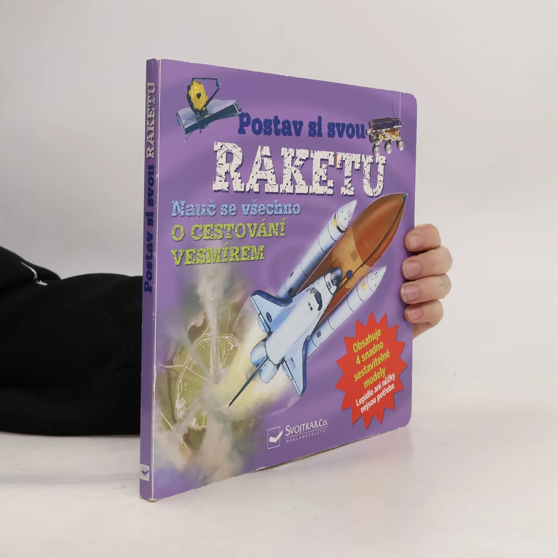 Jak skvěle se lze učit hrou! Tato interaktivní knížka obsahuje vše, co potřebuješ k postavení své vlastní sbírky modelů vesmírných raket! Je plná zajímavých faktů a je ideální pro zvídavé děti, které dychtí po vesmírném dobrodružství. Najdou v ní textovou část nabitou zajímavými informacemi a doplněnou ilustracemi a čtyři snadno sestavitelné modely – Vostok 1, raketoplán, Orion a vesmírný dalekohled Jamese Webba. K jejich sestavování není třeba lepidlo ani nůžky, díly stačí vytlačit z papíru a pospojovat. Ve chvíli budeš mít vlastní papírové modely těchto čtyř úžasných vesmírných raket. Objevuj záhady vesmíru se svými novými modely!