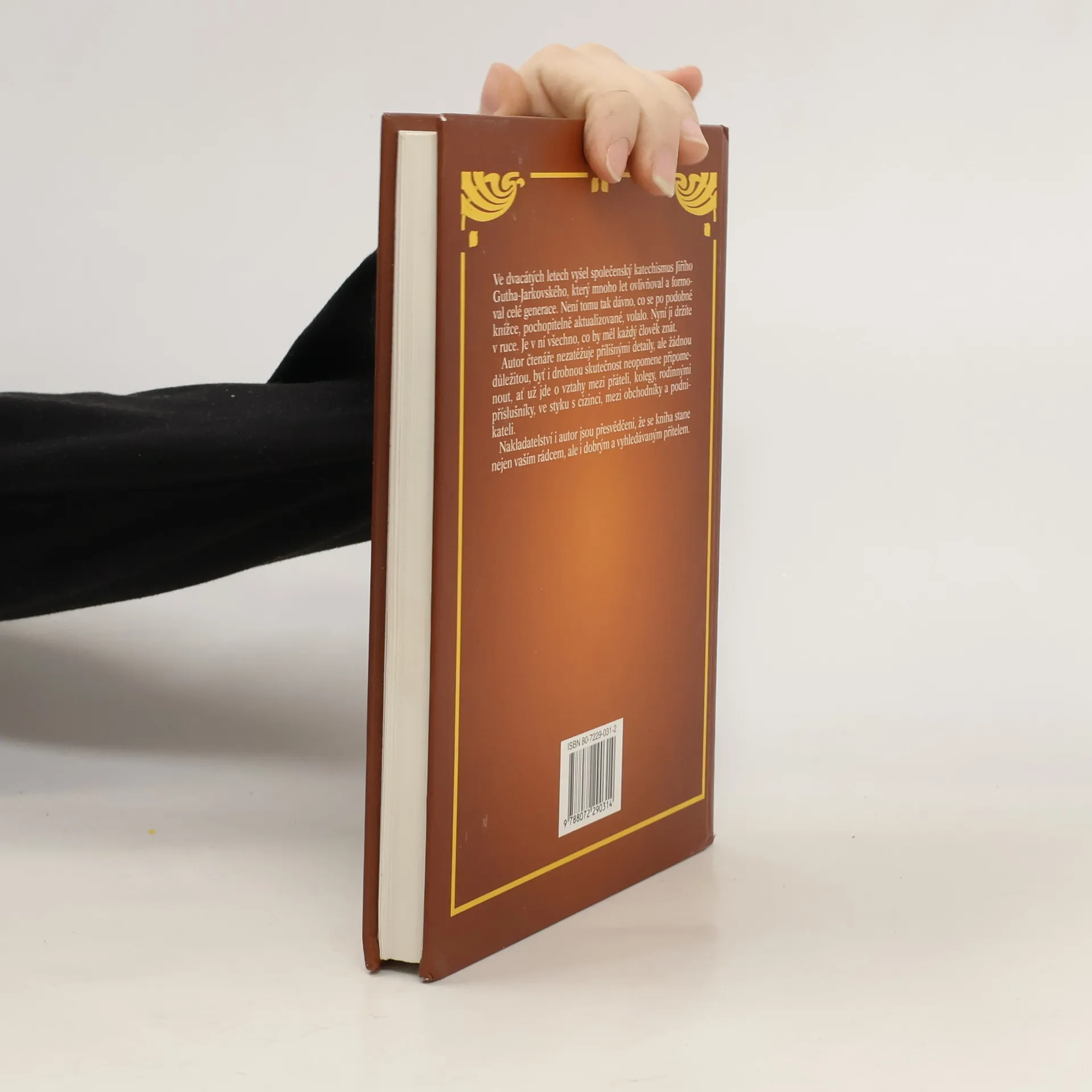 Ve dvacátých letech vyšel společenský katechismus Jiřího Gutha-Jarkovského, který mnoho let ovlivňoval a formoval celé generace. Není tomu tak dávno, co se po podobné knížce, pochopitelně aktualizované, volalo. Nyní ji držíte v ruce. Je v ní všechno, co by měl každý člověk znát. Autor čtenáře nezatěžuje přílišnými detaily, ale žádnou důležitou, byť i drobnou skutečnost neopomene připomenout, ať už jde o vztahy mezi přáteli, kolegy, rodinnými příslušníky, ve styku s cizinci, mezi obchodníky a podnikateli. Nakladatelství i autor jsou přesvědčeni, že se kniha stane nejen vaším rádcem, ale i dobrým a vyhledávaným přítelem.
