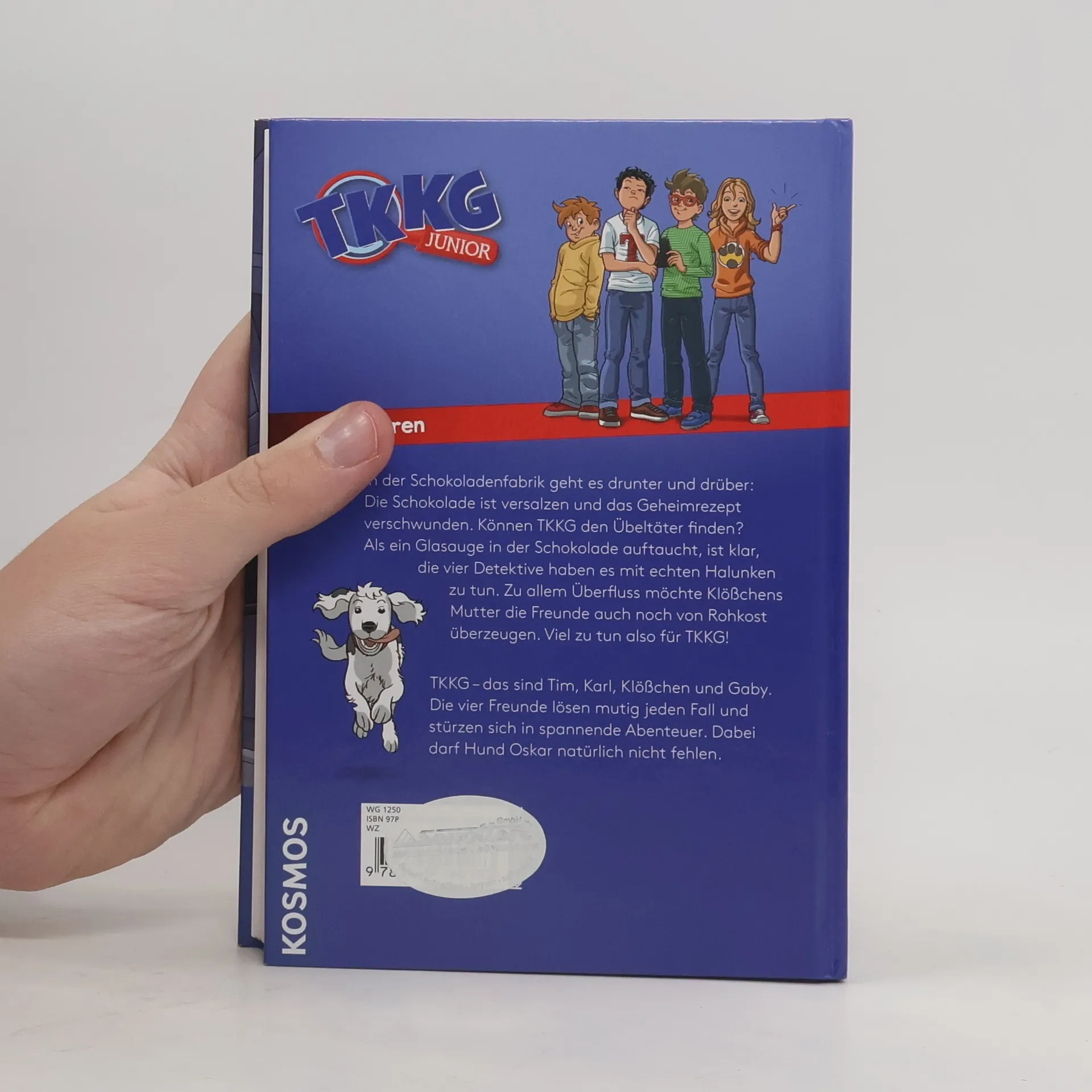 In der Schokoladenfabrik geht es drunter und drüber: Die Schokolade ist versalzen und das Geheimrezept verschwunden. Können TKKG den Übeltäter finden? Als auch noch ein Glasauge in der Schokolade auftaucht, ist klar, die vier Detektive haben es mit echten Halunken zu tun! Zu allem Überfluss möchte Klößchens Mutter sie auch noch von Rohkost überzeugen. Viel zu tun also für TKKG! TKKG – das sind Tim, Karl, Klößchen und Gaby. Die vier Freunde lösen mutig jeden Fall und stürzen sich in spannende Abenteuer. Dabei darf Hund Oskar natürlich nicht fehlen.