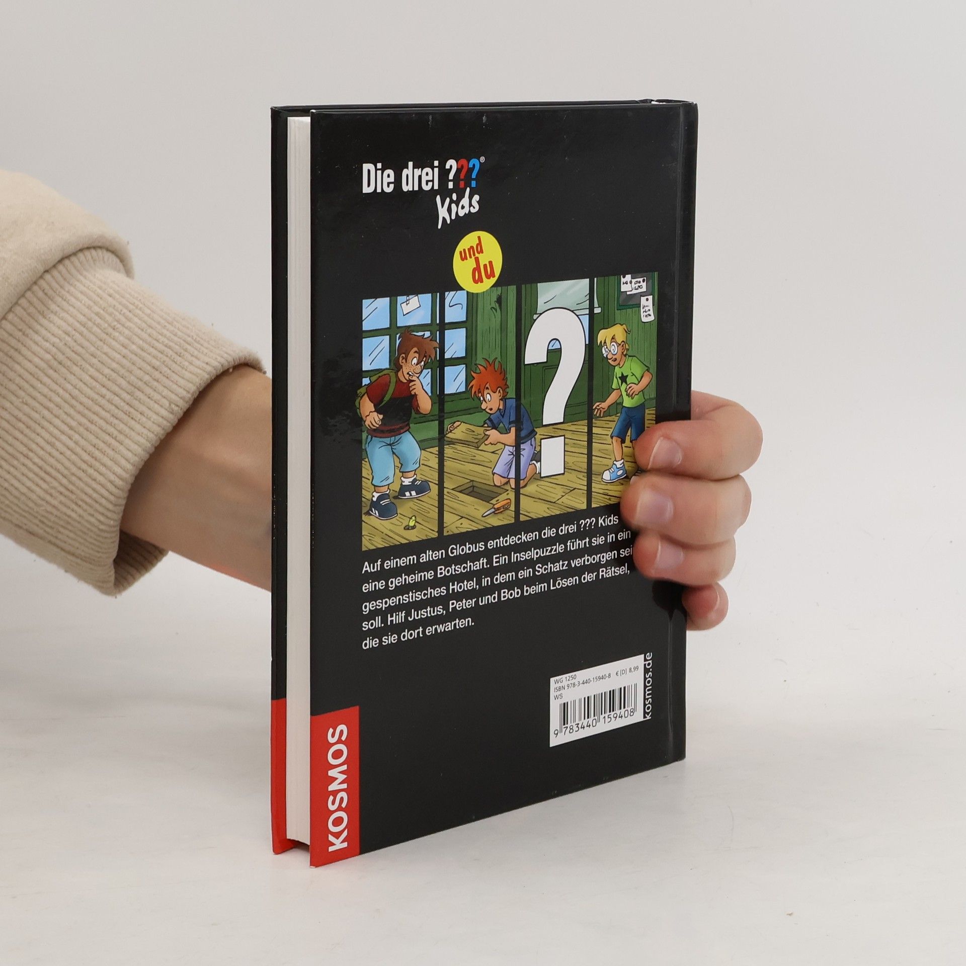 Justus, Peter und Bob brauchen Hilfe: Ein Fall und 1.000 Spuren – welche davon ist wichtig, welche führt in die Irre? Der Leser entscheidet! Auf einem alten Globus entdecken die drei ??? Kids eine geheime Botschaft. Ein Inselpuzzle führt sie in ein gespenstisches Hotel, in dem ein Schatz verborgen sein soll. Ein neuer aufregender Fall für „Die drei ??? Kids“ – natürlich mit Hilfe des Lesers.