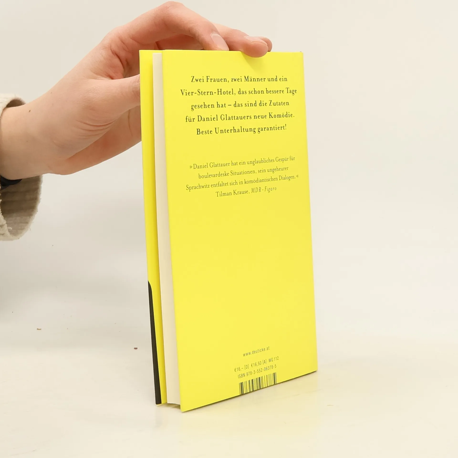 Ein Vier-Sterne-Hotel, das schon bessere Tage gesehen hat, und ein berühmter Schriftsteller, dessen Stern allerdings auch schon einmal heller leuchtete, sind die Zutaten für Daniel Glattauers neue Komödie: beste Unterhaltung garantiert! Wie in seinem Erfolgsstück „Die Wunderübung“, das mittlerweile auch das Kinopublikum begeistert, gelingt es Daniel Glattauer in „Vier Stern Stunden“, mit wenigen Strichen ein Szenario zu entwerfen, das unterhält, verblüfft und berührt.