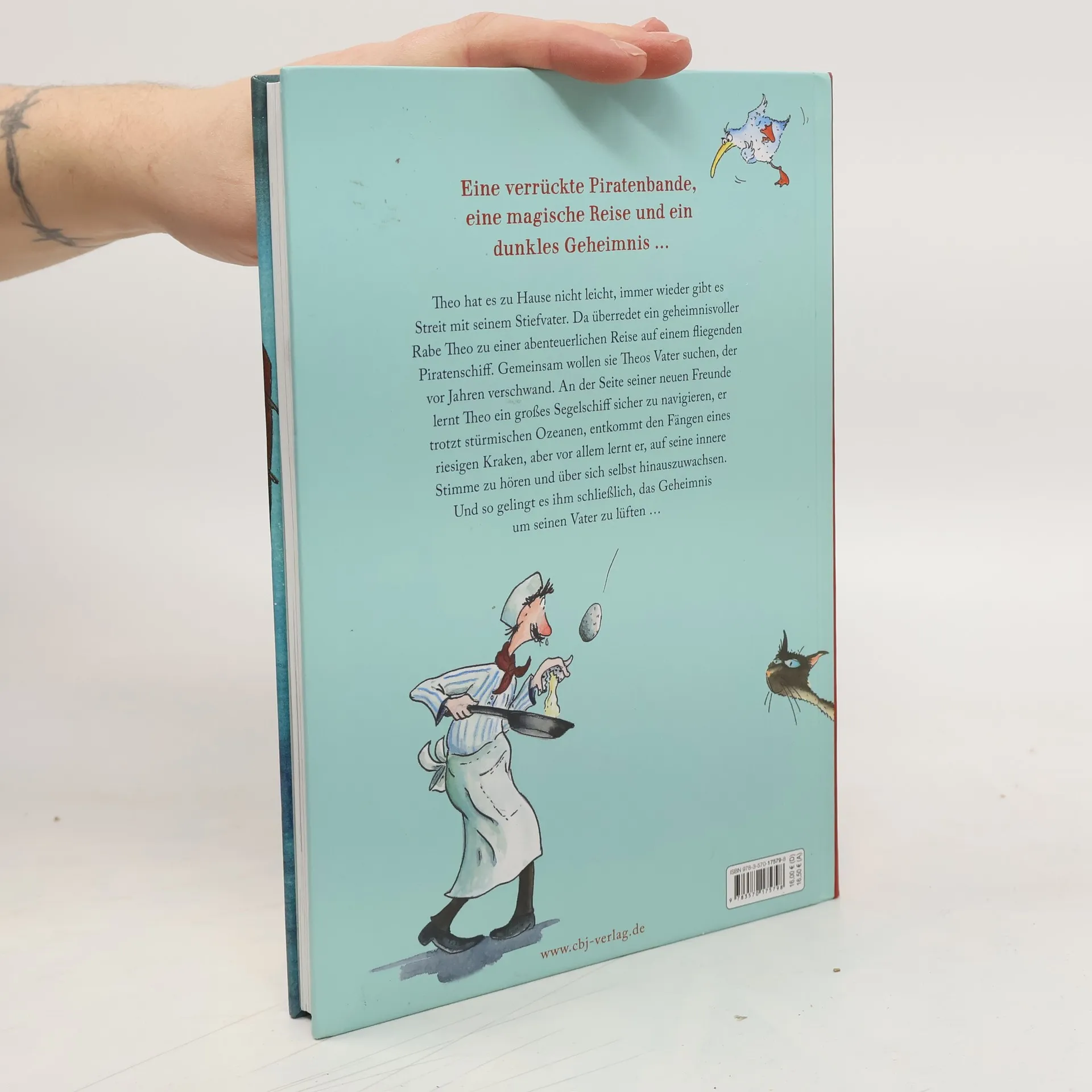 Eine verrückte Piraten-Crew, ein mächtiger Zauberer und ein dunkles Geheimnis Als eines Nachts ein Schiff in der Platane vor Theos Fenster landet und ein waschechter Pirat klammheimlich in sein Zimmer einsteigt, glaubt Theo zuerst an einen schlechten Traum. Doch dann entführt ihn die verrückte Crew des großen Dreimasters auf eine abenteuerliche Reise über die Sieben Weltmeere. Dabei muss Theo immer wieder über sich selbst hinauswachsen — um den Gefahren der Ozeane zu trotzen, aber auch, weil ihn diese Reise seinem verschwundenen Vater ein Stück näher bringt ... Ausstattung: Mit fbg. Illustrationen
