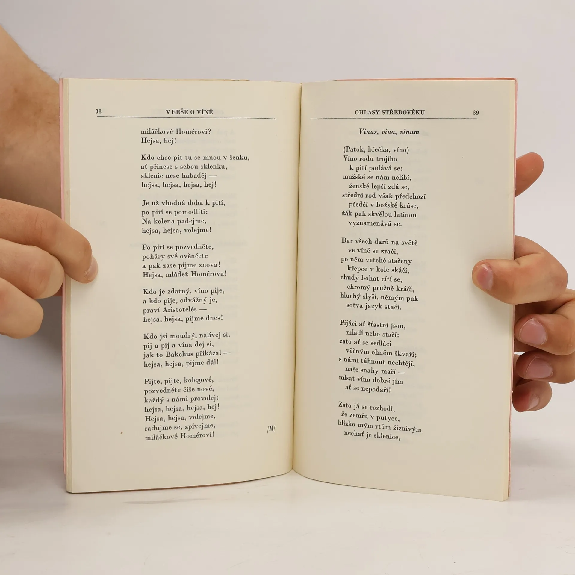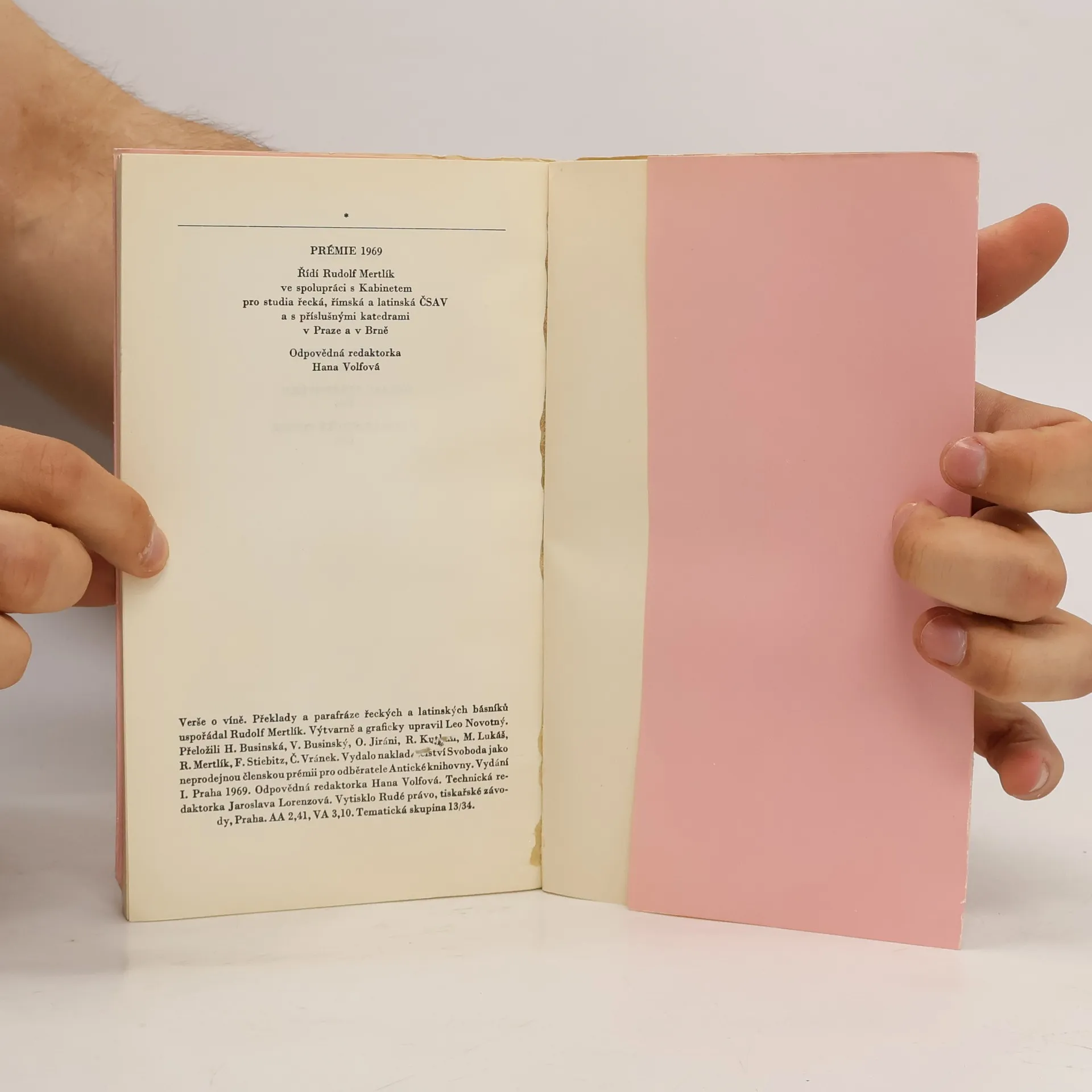 Členská prémie Antické knihovny. Výbor obsahuje verše o víně z antiky, středověku a humanistické poesie. Překlady a parafráze řeckých a latinských básníků uspoř. Rudolf Mertlík, přel. H. Businská. Veršovaný hold vínu a s ním i všemu ostatnímu, co náleží k lidským radovánkám– veselí, jídlu, hudbě, přátelství, lásce a ženám – je vzdáván poezií, vybranou z pramenů antických, středověkých i humanistických. O věčnosti této inspirace hovoří i závěrečná ukázka z veršů řeckého básníka přelomu 18. a 19. věku A. Christopula, jež se názorově plně shoduje i s úvodním zpěvem Homérovým. Zdroje, z nichž byly verše vybrány, jsou: Homér, Archilochos, Xenofanés, Ión, Theognis, Horatius, římské nápisy, Antologie palatinská, anakreontské zpěvy, anonymní autoři středověcí a z humanistického období Traianus, Pontanus, Chorinnus, Jizbický, Mnichovský rukopis z 15. století, Jan Orpheus a B. Hasištejnský z Lobkovic.