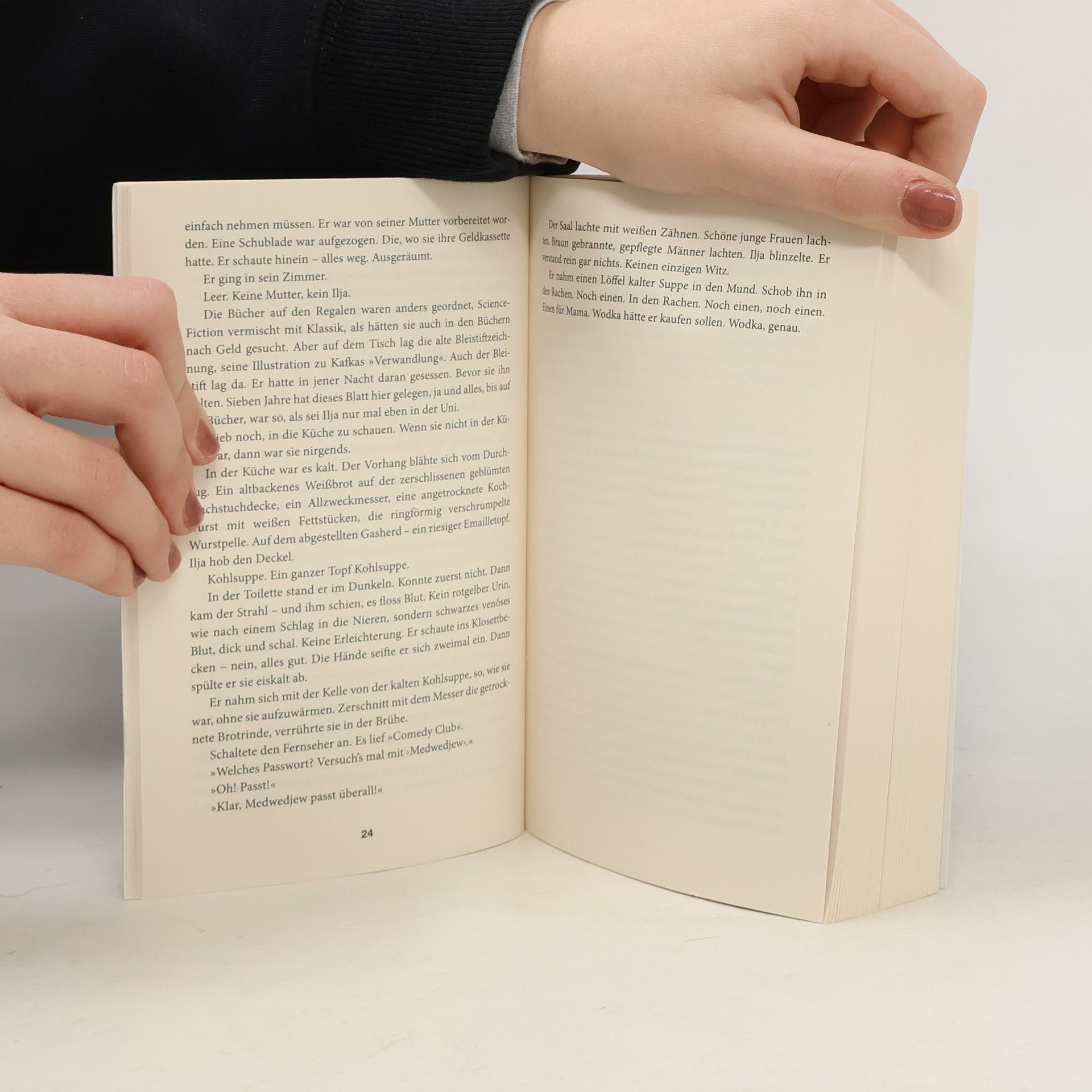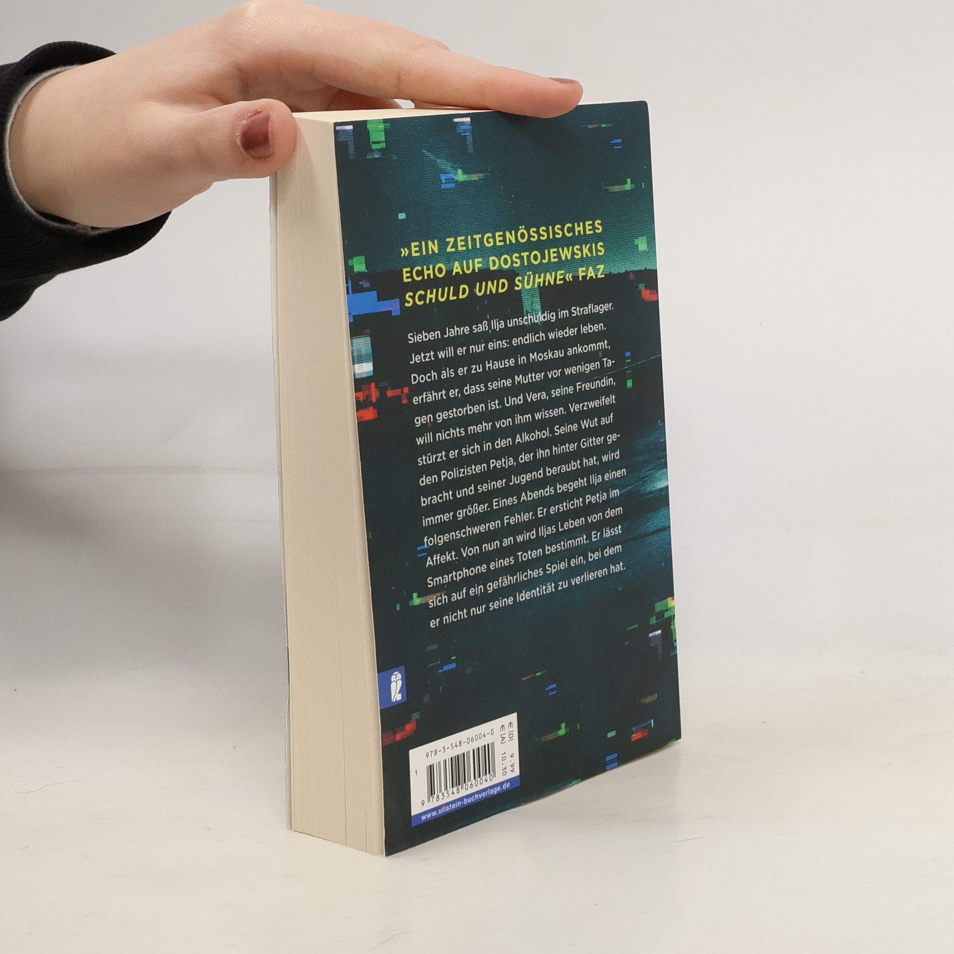 Die Geschichte einer sinnlosen Rache - aktueller denn je Moskau, im Herbst 2016: Ilja kommt nach sieben Jahren Straflager endlich nach Hause. Dort ist nichts mehr, wie es war. Seine Mutter stirbt wenige Tage vor seiner Rückkehr an einem Herzinfarkt und seine Freundin ist längst mit einem anderen zusammen. Ilja ertränkt seine Enttäuschung im Alkohol. Im Rausch der Verzweiflung sucht er jenen Fahnder auf, der ihn vor sieben Jahren zu Unrecht hinter Gitter brachte. Ilja ersticht ihn im Affekt. Als Ilja nach seiner Tat im Handy des verstorbenen Petja stöbert, stößt er auf verstörende Spuren aus dessen Vergangenheit. Und immer wieder erreichen ihn besorgte Nachrichten von Petjas Mutter und dessen schwangerer Freundin Nina. Ilja beginnt, ihnen an Petjas Stelle zu antworten, und seine Identität verschmilzt immer mehr mit der jenes Mannes, den er getötet hat. „Ein rasanter Krimi über politische Willkür, Rechtlosigkeit, Identitätsklau via Smartphone aus nur einer Perspektive erzählt.“ ZDF Morgenmagazin