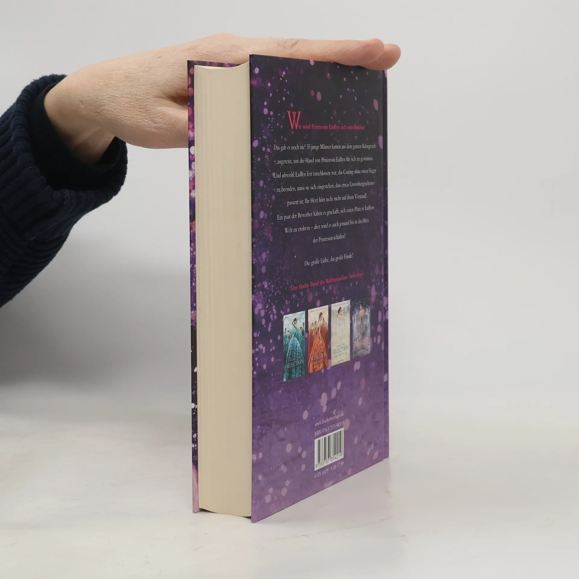 Die große Liebe, das große Finale - darauf haben alle ›Selection‹-Fans gewartet! Als das Casting begann, war Eadlyn wild entschlossen, sich nicht zu verlieben und keinen der Bewerber an sich heranzulassen. Doch nun muss sie sich eingestehen, dass einige von ihnen doch Eindruck bei ihr hinterlassen haben: Henri, der charmante Lockenkopf, und sein bester Freund Erik. Der aufmerksame und rücksichtsvolle Hale. Der selbstsichere und attraktive Ean. Und natürlich Kile, Eadlyns Lieblingsfeind aus Sandkastenzeiten, der sie zu ihrem Ärger immer wieder aus der Reserve lockt. Sie alle haben es geschafft, einen Platz in Eadlyns Welt zu erobern. Aber wird es auch jemand in das Herz der Prinzessin schaffen? Der 5. Band des internationalen Weltbestsellers - wunderbar romantisch und ein krönender Abschluss!