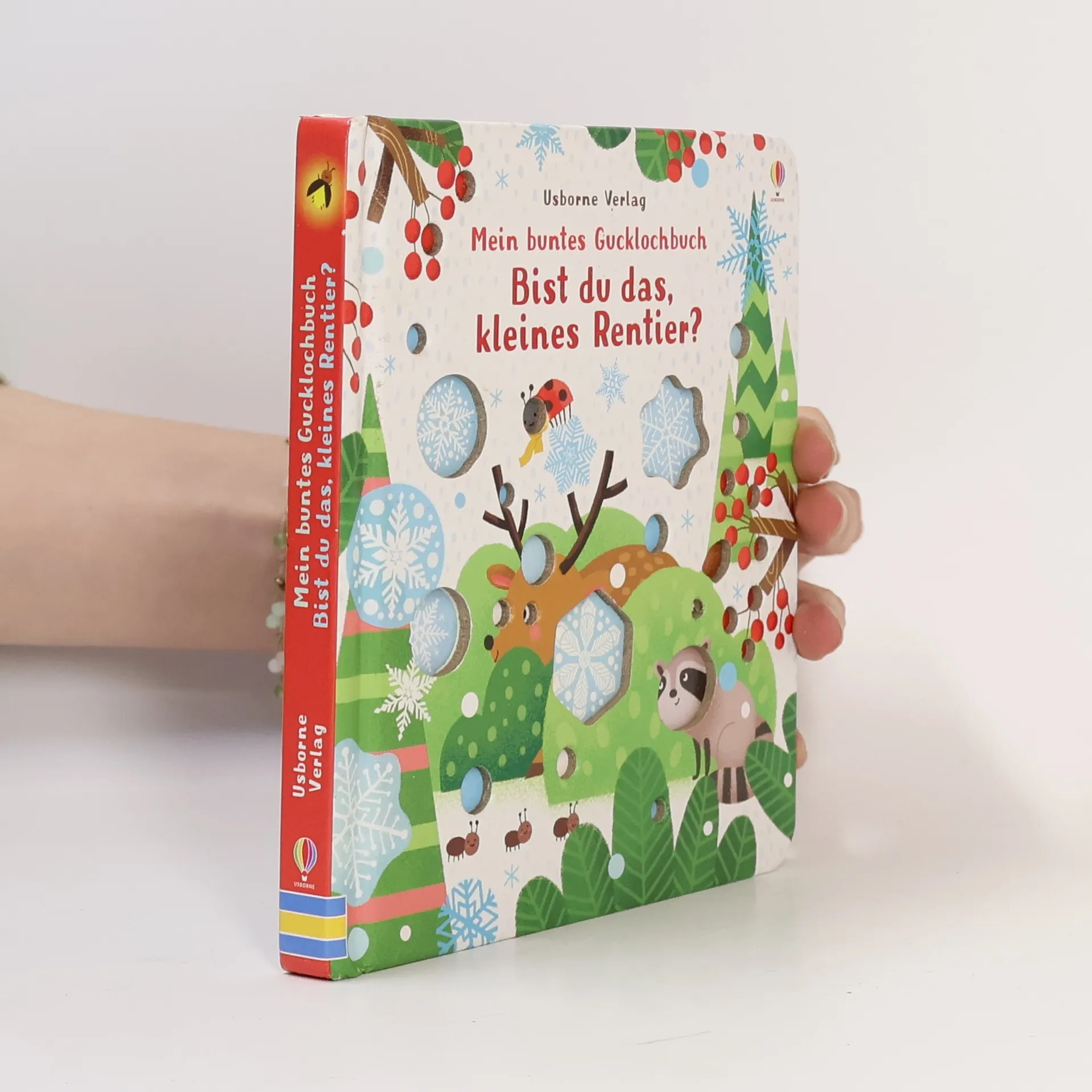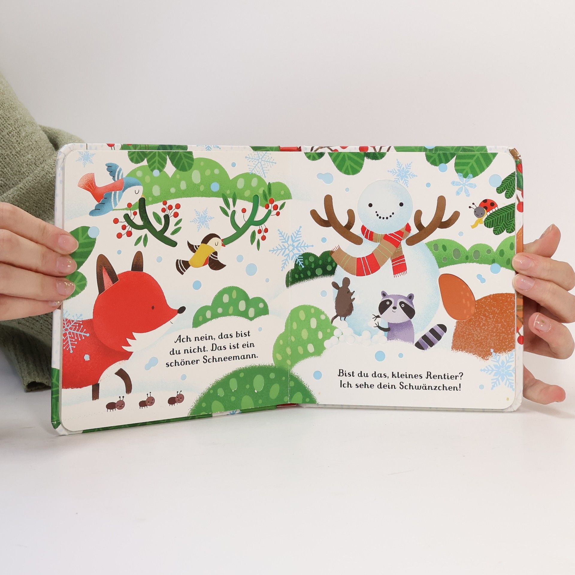 Hier ist nicht immer alles, wie es scheint! Zahlreiche Gucklöcher und Fingerspuren sowie bezaubernde Illustrationen machen die Suche nach dem kleinen Rentier zu einem besonders spannenden Erlebnis.