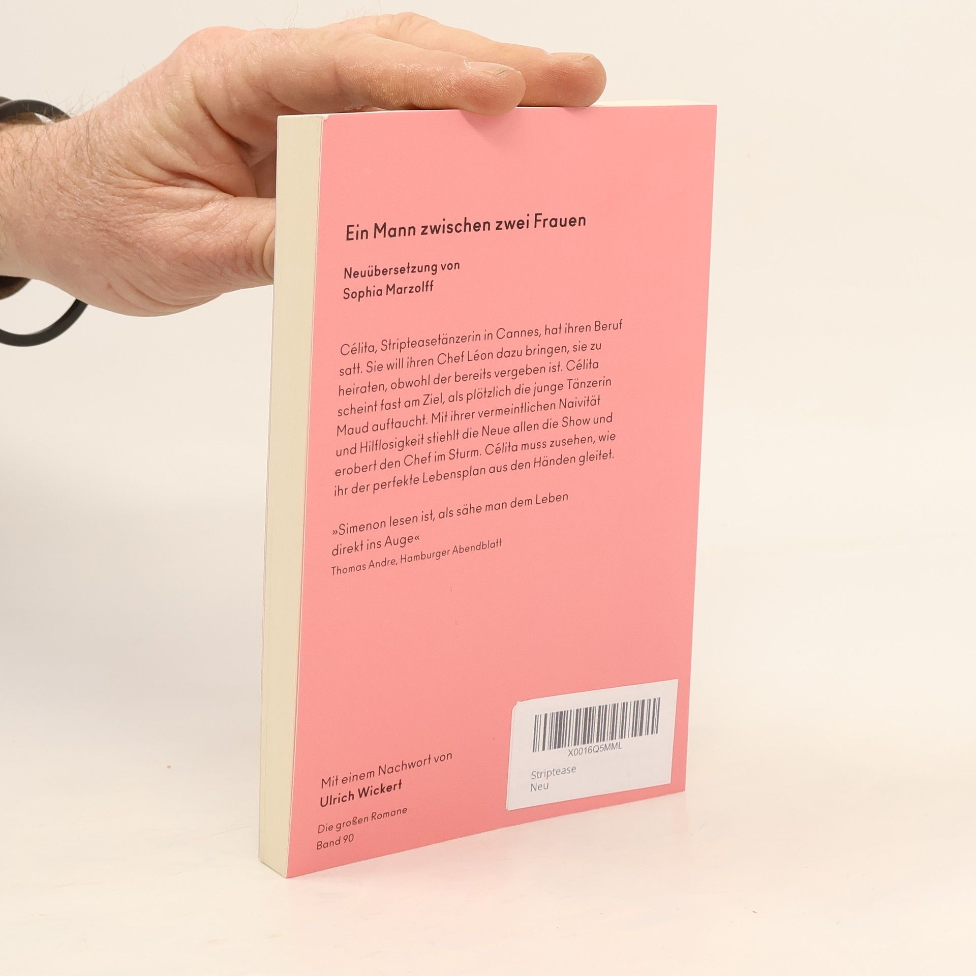 ZEIT FÜR MICH – ZEIT FÜR SIMENON»Georges Simenon ist der wichtigste Schriftsteller des 20. Jahrhunderts.« Gabriel García Márquez   Célita, Stripteasetänzerin in Cannes, hat ihren Beruf satt. Um dieses Leben hinter sich zu lassen, will sie ihren Chef Léon dazu bringen, sie zu heiraten, obwohl der bereits vergeben ist. Léon liegt ihr zu Füßen, und sie scheint fast am Ziel, als plötzlich die junge Tänzerin Maud auftaucht. Mit ihrer vermeintlichen Naivität und Hilflosigkeit stiehlt die Neue allen die Show und erobert den Chef im Sturm. Er hat nur noch Augen für Maud, und Célita muss zusehen, wie ihr der perfekte Lebensplan aus den Händen gleitet.   Bandnummer: 90