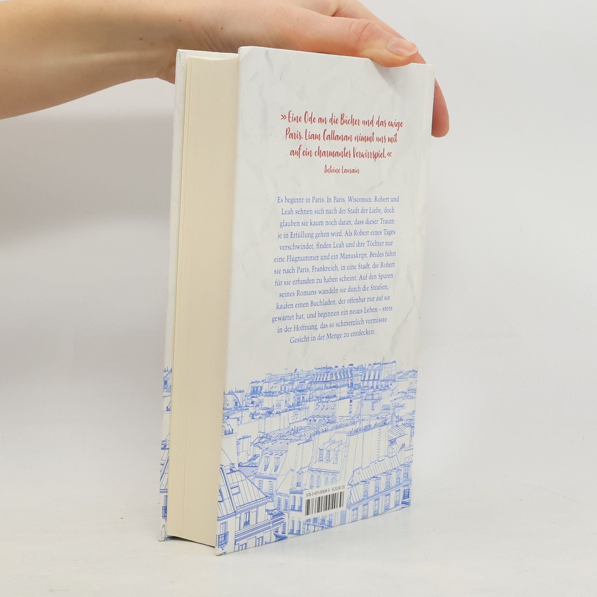 »Eine Ode an die Bücher und das ewige Paris. Liam Callanan nimmt uns mit auf ein charmantes Verwirrspiel.« Antoine Laurain Es beginnt in Paris. In Paris, Wisconsin. Robert und Leah sehnen sich nach der Stadt der Liebe, doch glauben sie kaum noch daran, dass dieser Traum je in Erfüllung gehen wird. Als Robert eines Tages verschwindet, finden Leah und ihre Töchter nur eine Flugnummer und ein Manuskript. Es führt sie nach Paris, Frankreich; in eine Stadt, die Robert für sie erfunden zu haben scheint. Auf den Spuren seines Romans, der ihnen wie ihr eigenes Leben vorkommt, wandeln sie durch die Straßen, kaufen einen Buchladen, der offenbar nur auf sie gewartet hat und beginnen ein neues Leben – stets in der Hoffnung, das so schmerzlich vermisste Gesicht in der Menge zu entdecken.