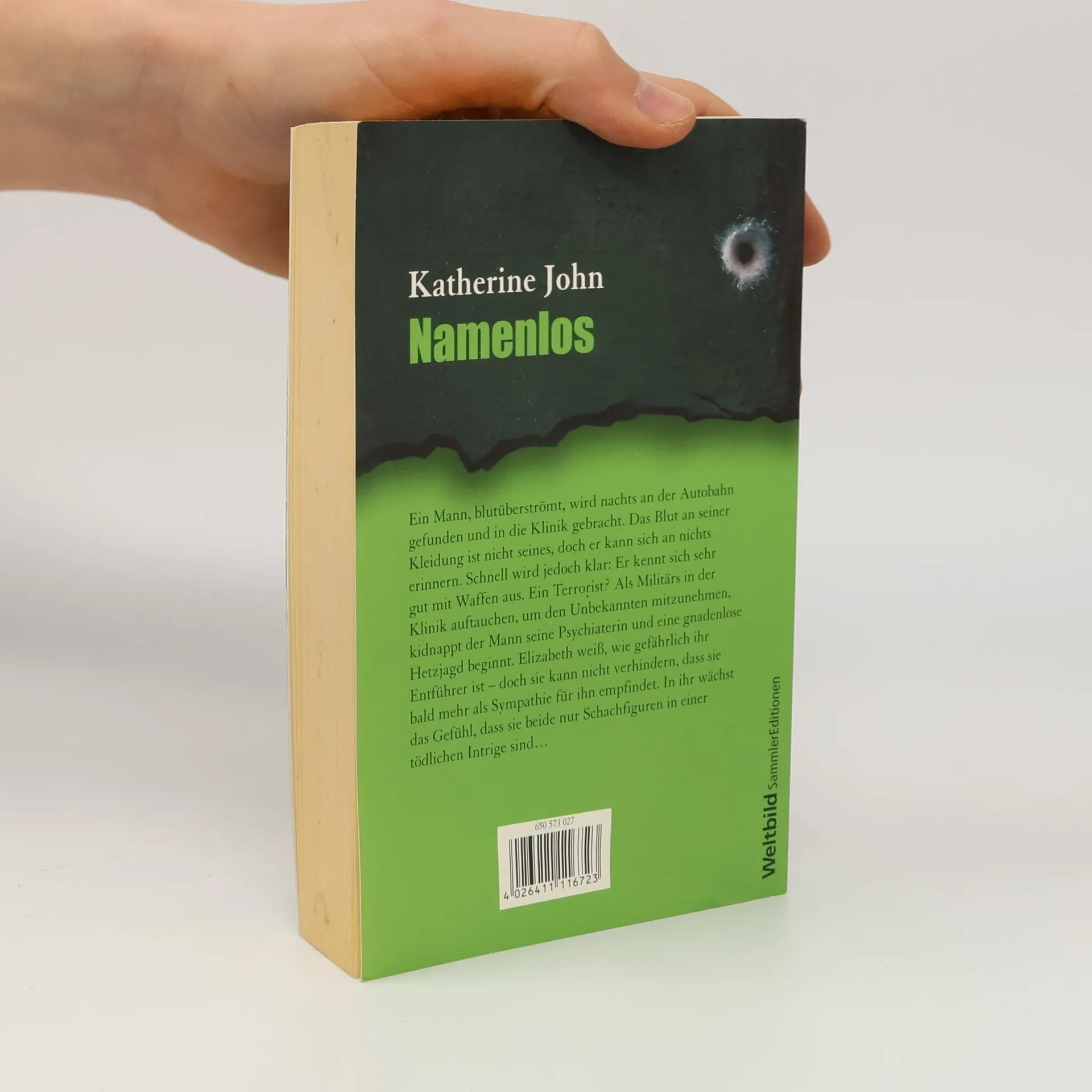 Er weiß nicht, wer er ist. Doch er weiß, wie man tötetEin Mann, blutüberströmt, wird nachts an der Autobahn gefunden und in die Klinik gebracht. Das Blut an seiner Kleidung ist nicht seines, doch er kann sich an nichts erinnern. Schnell wird jedoch klar: Er kennt sich sehr gut mit Waffen aus. Ein Terrorist? Als Militärs in der Klinik auftauchen, um den Unbekannten mitzunehmen, kidnappt der Mann seine Psychiaterin und eine gnadenlose Hetzjagd beginnt. Elizabeth weiß, wie gefährlich ihr Entführer ist – doch sie kann nicht verhindern, dass sie bald mehr als Sympathie für ihn empfindet. In ihr wächst das Gefühl, dass sie beide nur Schachfiguren in einer tödlichen Intrige sind …