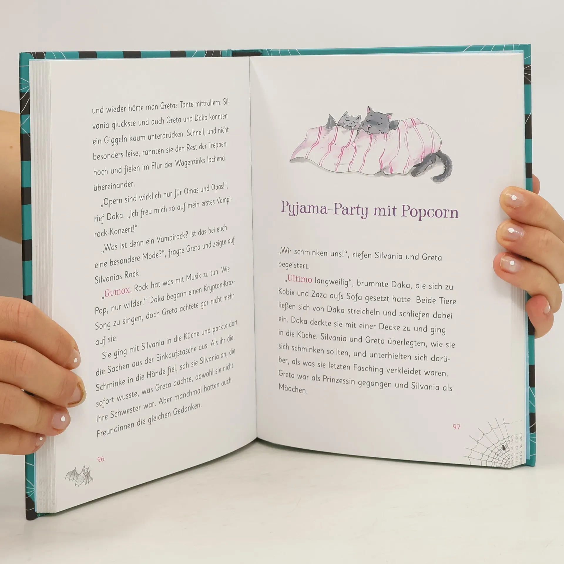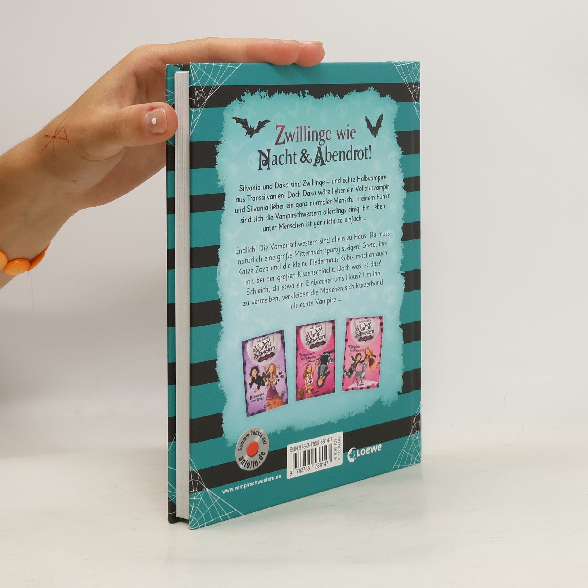 Endlich! Die Vampirschwestern sind allein zu Haus. Da muss natürlich eine große Mitternachtsparty steigen! Greta, ihre Katze Zaza und die kleine Fledermaus Kobix machen auch mit bei der großen Kissenschlacht. Doch was ist das? Schleicht da etwa ein Einbrecher ums Haus? Um ihn zu vertreiben, verkleiden sich die Mädchen kurzerhand als echte Vampire … Die Vampirschwestern sind zurück! Neue und vampirisch spannende Abenteuer für alle Fans und Neueinsteiger! Die Vorgeschichte zur erfolgreichen Kinderbuchreihe mit lustigen Illustrationen in schwarz und pink für Mädchen ab 8 Jahren . Die Vampirschwestern black & pink sind bei Antolin gelistet.