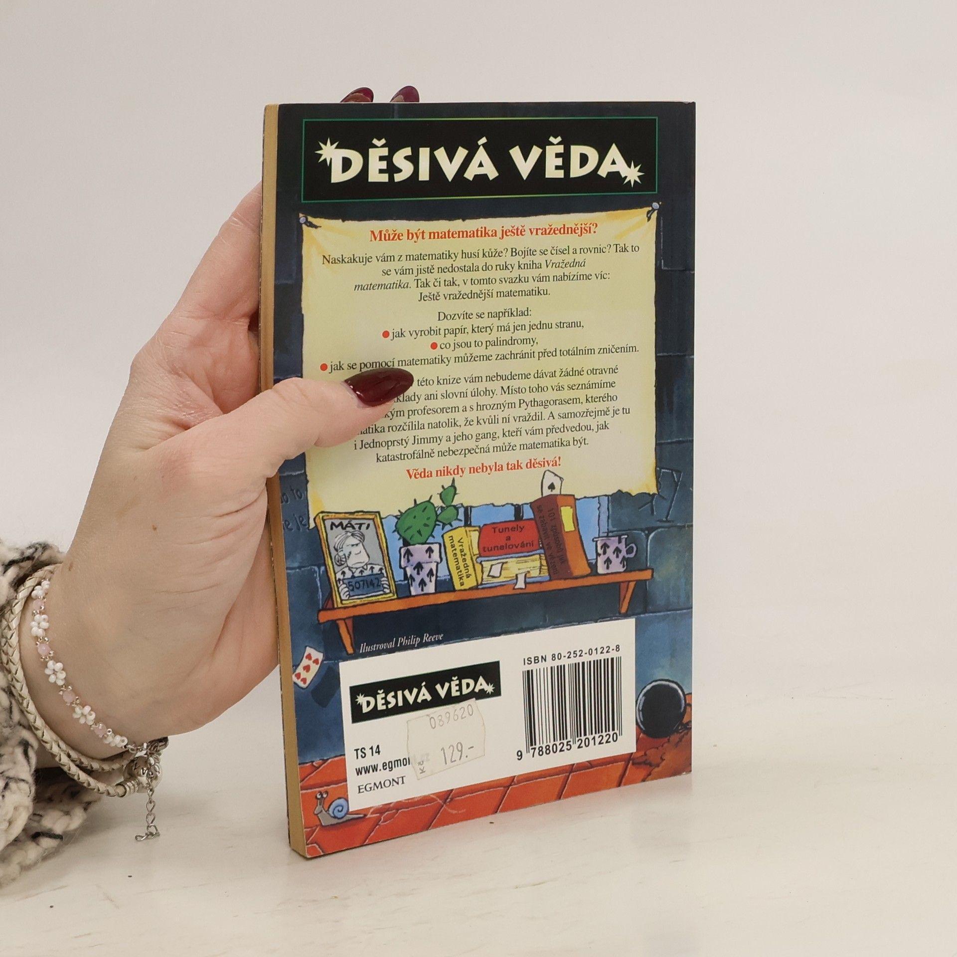 Příručka, která zábavnou formou seznamuje čtenáře se světem matematiky. Pro starší děti. Knížka hravou a neotřelou formou vrhne čtenáře do světa matematiky. Poskytne inspiraci jak využít k zábavě i k přemýšlení hrací kostky domina (nejen klasické, ale i vytvořená tetromina a pentomina), poradí návod pro výpočet obsahu, rychlosti, objemu. Čtenář se také seznámí s Ďábelským profesorem a panem Pythagorasem, naučí se trik s zrcadlovými čísly nebo dostane lekci z geometrie. Myslíte si, že jednostranný papír je nemožná věc? Kniha vás vyvede z omylu. A konečně příběh o Jimmovi a jeho gangu vám ukáže, jak katastrofálně nebezpečná může matematika být.