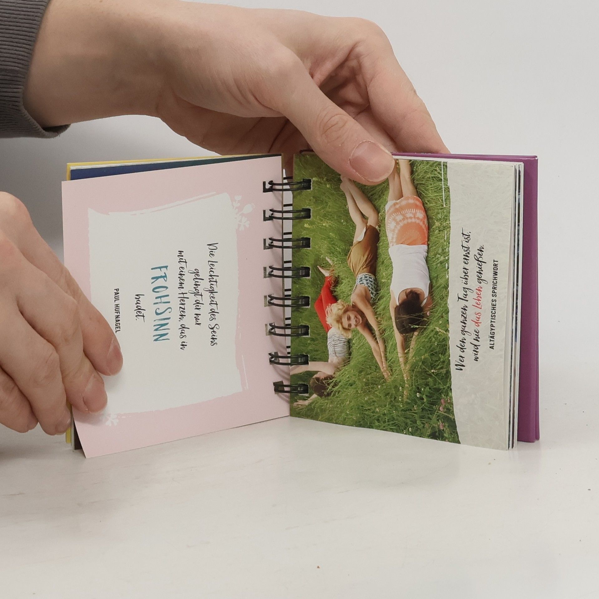 Verschenken Sie gute Laune zum Aufstellen Du möchtest jemandem ein Lächeln schenken? Dann ist das mit dieser wunderschönen Dekoration ein Leichtes. Denn die Botschaft, die es versprüht heißt: „Genieße das Leben, sei fröhlich und geh mit einem Lächeln durch den Tag! Denn schon das kleinste Lächeln macht jeden Moment zu etwas Besonderem.“ Fröhliche Tischdeko und kleines Mitbringsel Zitate und Sprüche rund um die Themen Lachen, Lebensfreude und Glück zieren diesen Mini-Spiralaufsteller. Lustige, stimmungsvolle Fotos sowie trendige Illustrationen runden die Gestaltung ab und unterstreichen den fröhlichen Charakter der Tischdeko. Ein Blickfang in jedem Raum und das perfekte Geschenk zum Geburtstag, Muttertag oder einfach so – auch an sich selbst. 144-seitiger, dekorativer Mini-Spiralaufsteller Toller Blickfang zum Aufstellen auf dem Sideboard, Regal oder Schreibtisch Lustige Sprüche und motivierende Zitate rund um die Themen Lebensfreude und Glück Lackiertes Cover mit hochwertiger Oberflächenveredelung / Prägung Hochwertiger Aufsteller aus festem Pappmaterial Die stabile Spiralbindung ermöglicht ein einfaches Umblättern