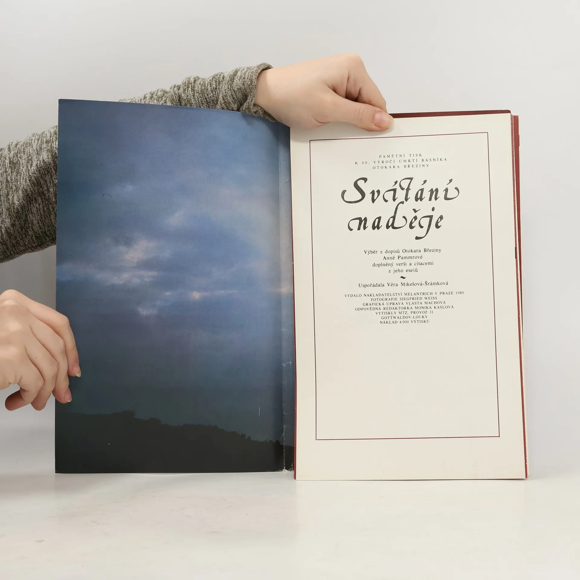 Skladem máme celkem knihy Svítání naděje : výběr z dopisů Otokara Březiny Anně Pammrové doplněný verši a citacemi z jeho esejů (1989).