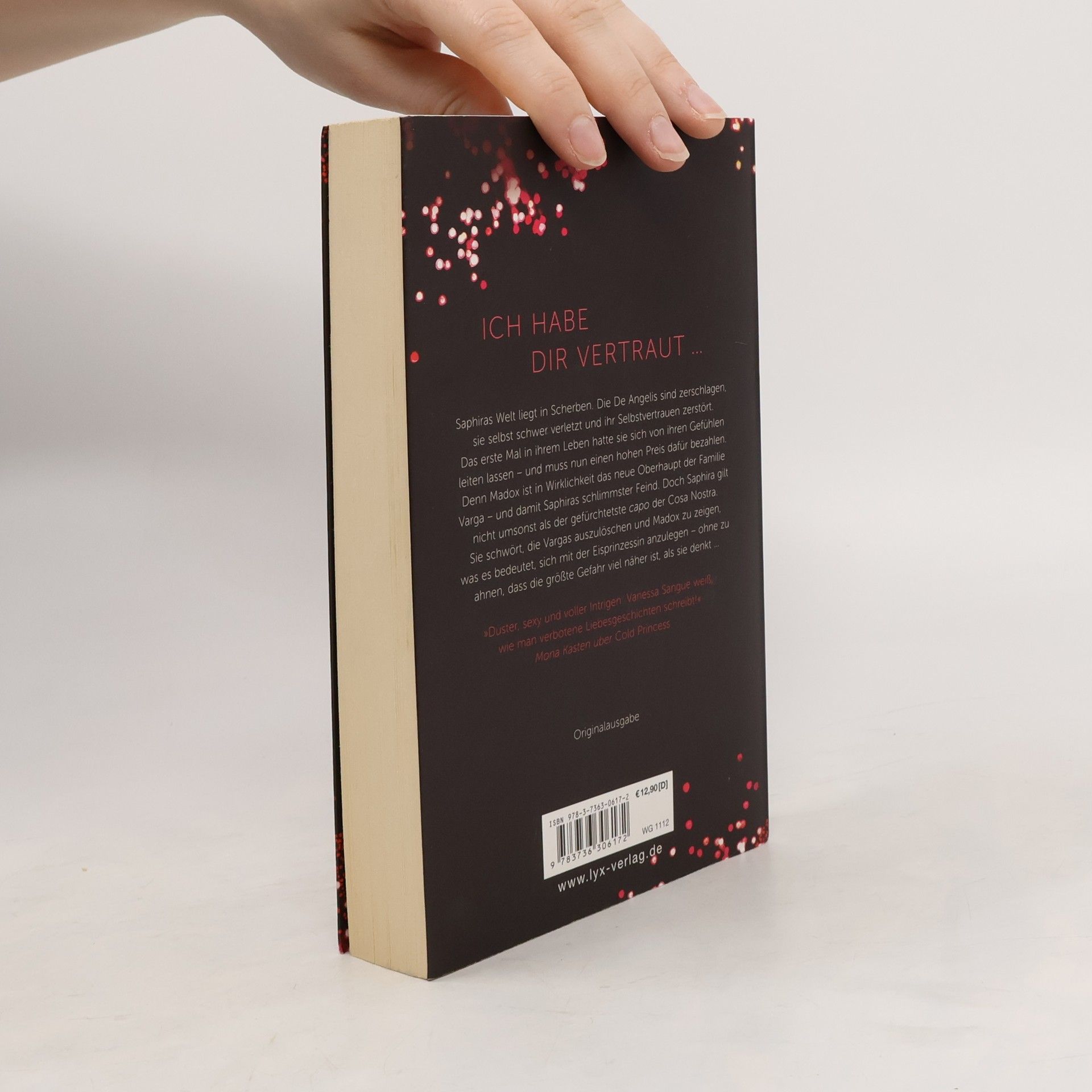 Ich habe dir vertraut ... Saphiras Welt liegt in Scherben. Die De Angelis sind zerschlagen, sie selbst schwer verletzt und ihr Selbstvertrauen zerstört. Das erste Mal in ihrem Leben hatte sie sich von ihren Gefühlen leiten lassen - und muss nun einen hohen Preis dafür bezahlen. Denn Madox ist in Wirklichkeit das neue Oberhaupt der Familie Varga - und damit Saphiras schlimmster Feind. Doch Saphira gilt nicht umsonst als der gefürchtetste capo der Cosa Nostra. Sie schwört, die Vargas auszulöschen und Madox zu zeigen, was es bedeutet, sich mit der Eisprinzessin anzulegen - ohne zu ahnen, dass die größte Gefahr viel näher ist, als sie denkt ... „Düster, sexy und voller Intrigen: Vanessa Sangue weiß, wie man verbotene Liebesgeschichten schreibt!“ Mona Kasten Abschlussband der düsteren Liebesromanreihe von Bestseller-Autorin Vanessa Sangue