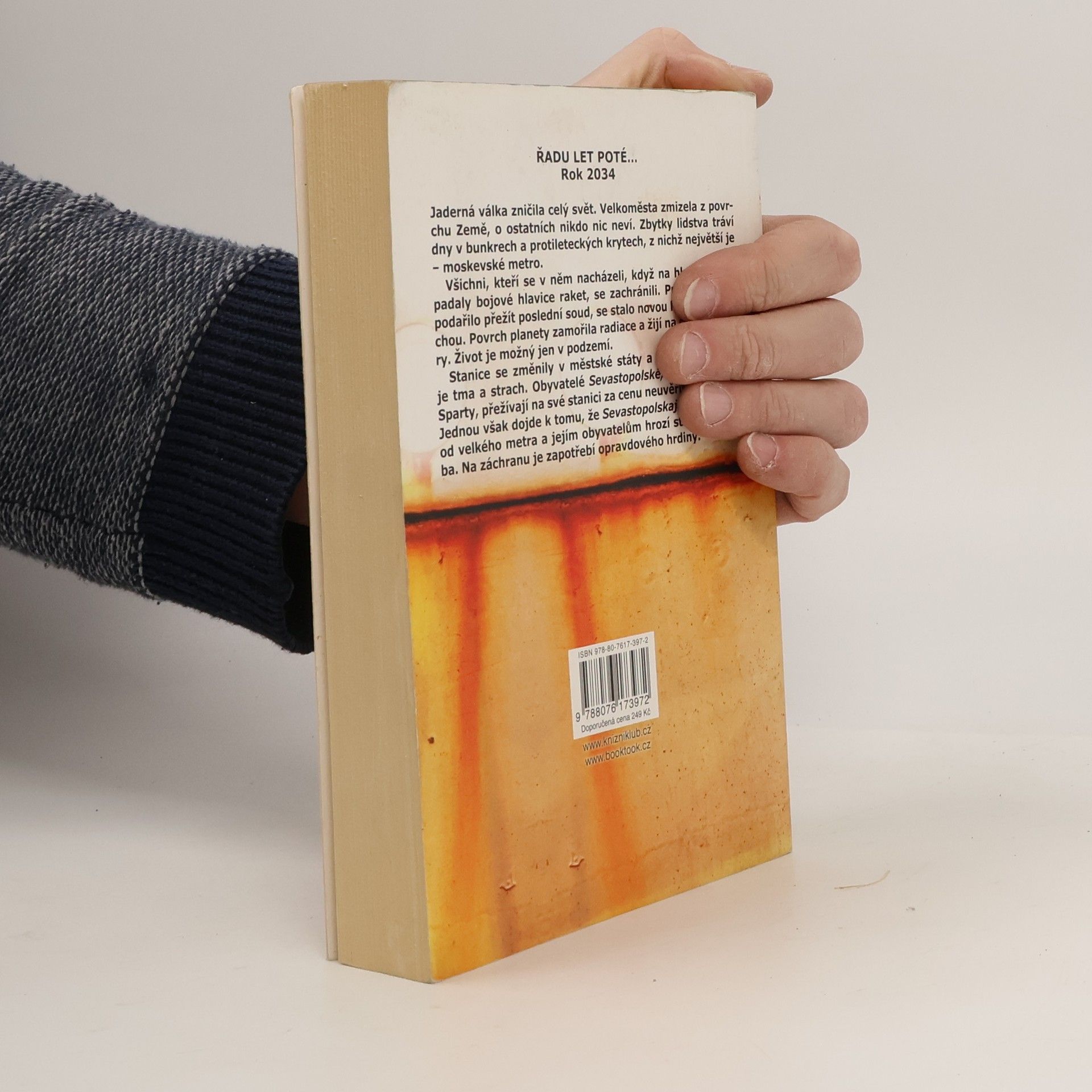 3. vydání. ŘADU LET POTÉ… Rok 2034 Jaderná válka zničila celý svět. Velkoměsta zmizela z povrchu Země, o ostatních nikdo nic neví. Zbytky lidstva tráví dny v bunkrech a protileteckých krytech, z nichž největší je – moskevské metro. Všichni, kteří se v něm nacházeli, když na hlavní město padaly bojové hlavice raket, se zachránili. Pro ty, jimž se podařilo přežít poslední soud, se stalo novou Noemovou archou. Povrch planety zamořila radiace a žijí na něm nestvůry. Život je možný jen v podzemí. Stanice se změnily v městské státy a v tunelech panuje tma a strach. Obyvatelé Sevastopolské, malé podzemní Sparty, přežívají na své stanici za cenu neuvěřitelného úsilí. Jednou však dojde k tomu, že Sevastopolskaja je odříznuta od velkého metra a jejím obyvatelům hrozí strašlivá záhuba. Na záchranu je zapotřebí opravdového hrdiny.