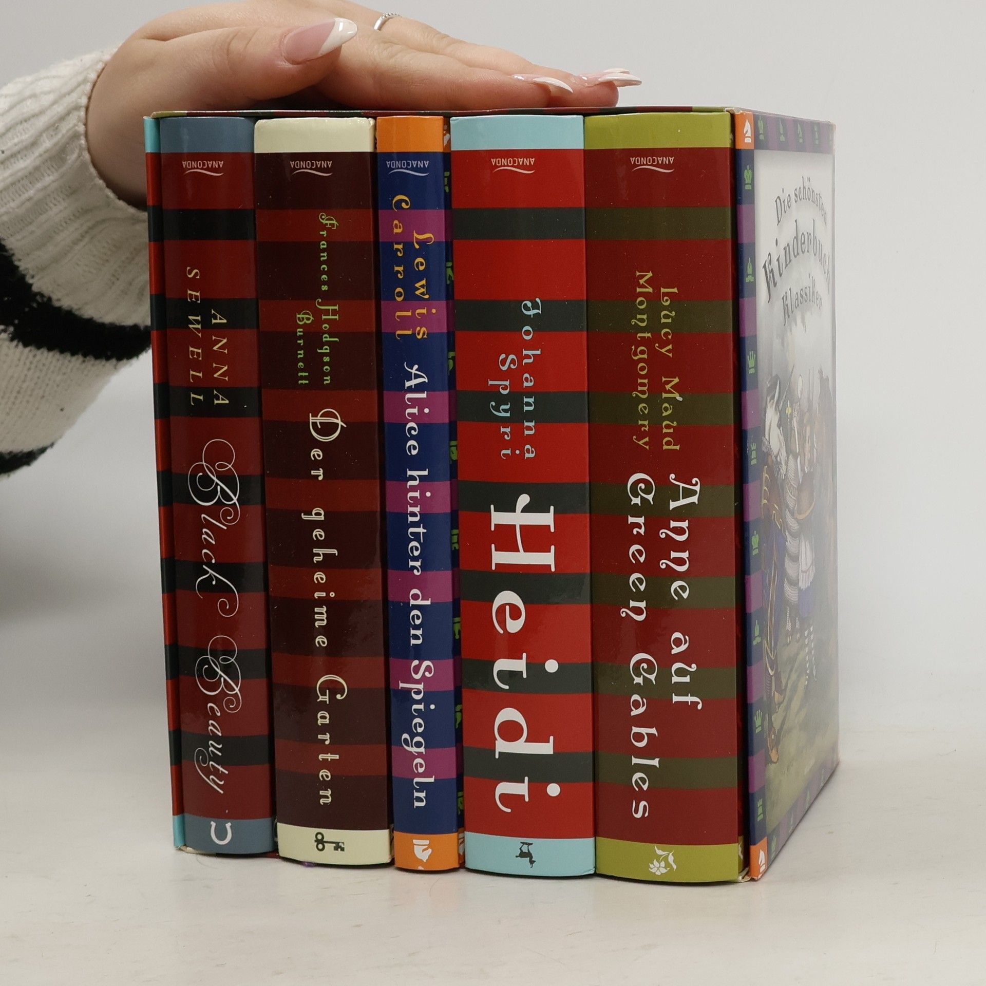 Die beruhmtesten Kinderbuch-Klassiker sind fesselnde Geschichten und groSSe Literatur in einem. UNsere Eltern lesen sie uns vor, wir lesen sie als Kinder wieder und als Erwachsene noch einmal. MAnche entdecken wir erst spat und erfreuen uns an ihnen umso mehr. ANdere kannten wir zuerst als Film und lesen dann das Buch. UNd immer staunen wir ob ihrer Einsicht, Kraft und Fantasie. DIese Box versammelt drei wunderbare englische Klassiker ('Der geheime Garten', 'Alice hinter den Spiegeln', 'Black Beauty'), mit 'Anne auf Green Gables' das bekannteste Kinderbuch aus Kanada sowie den Weltbestseller 'Heidi' der Schweizerin Johanna Spyri.