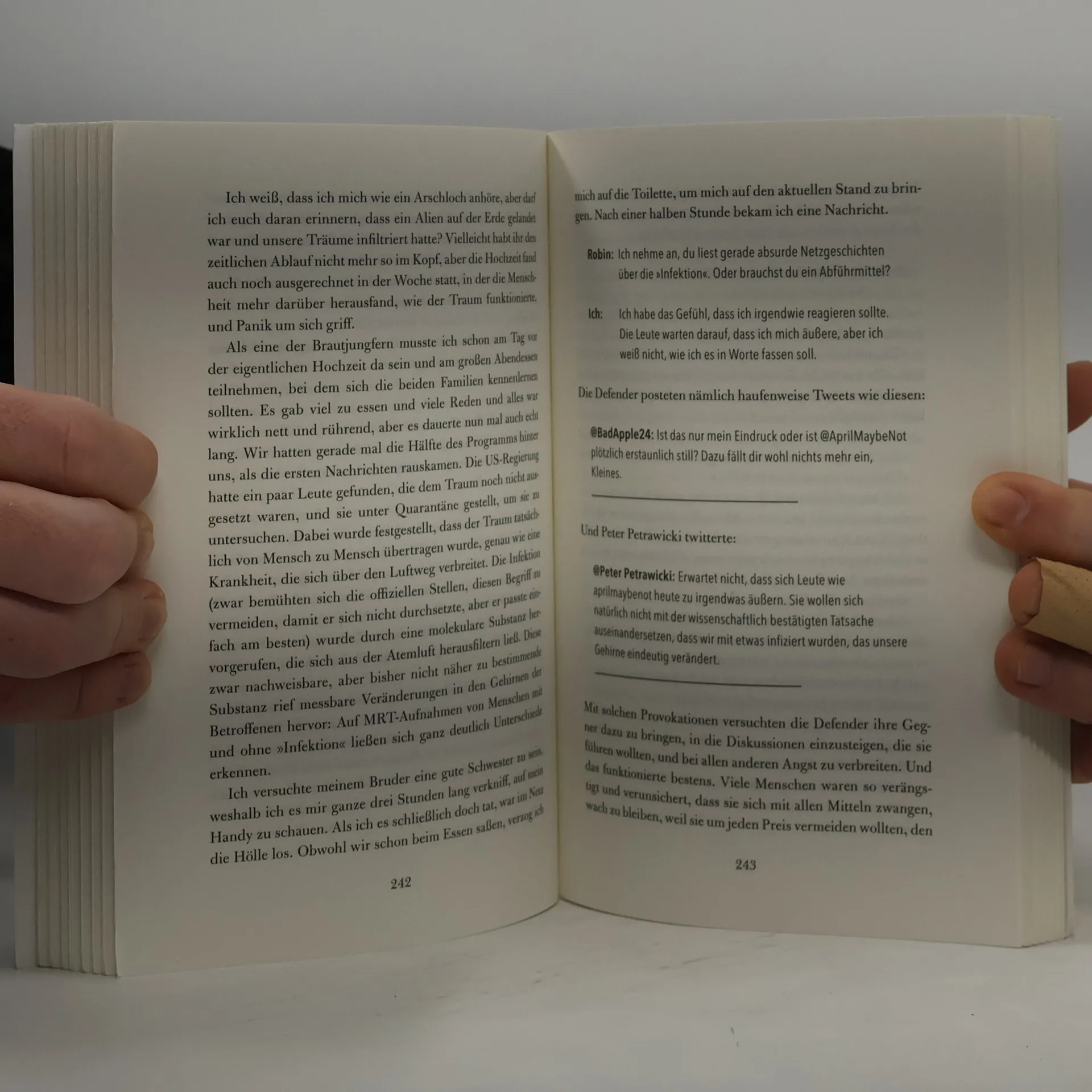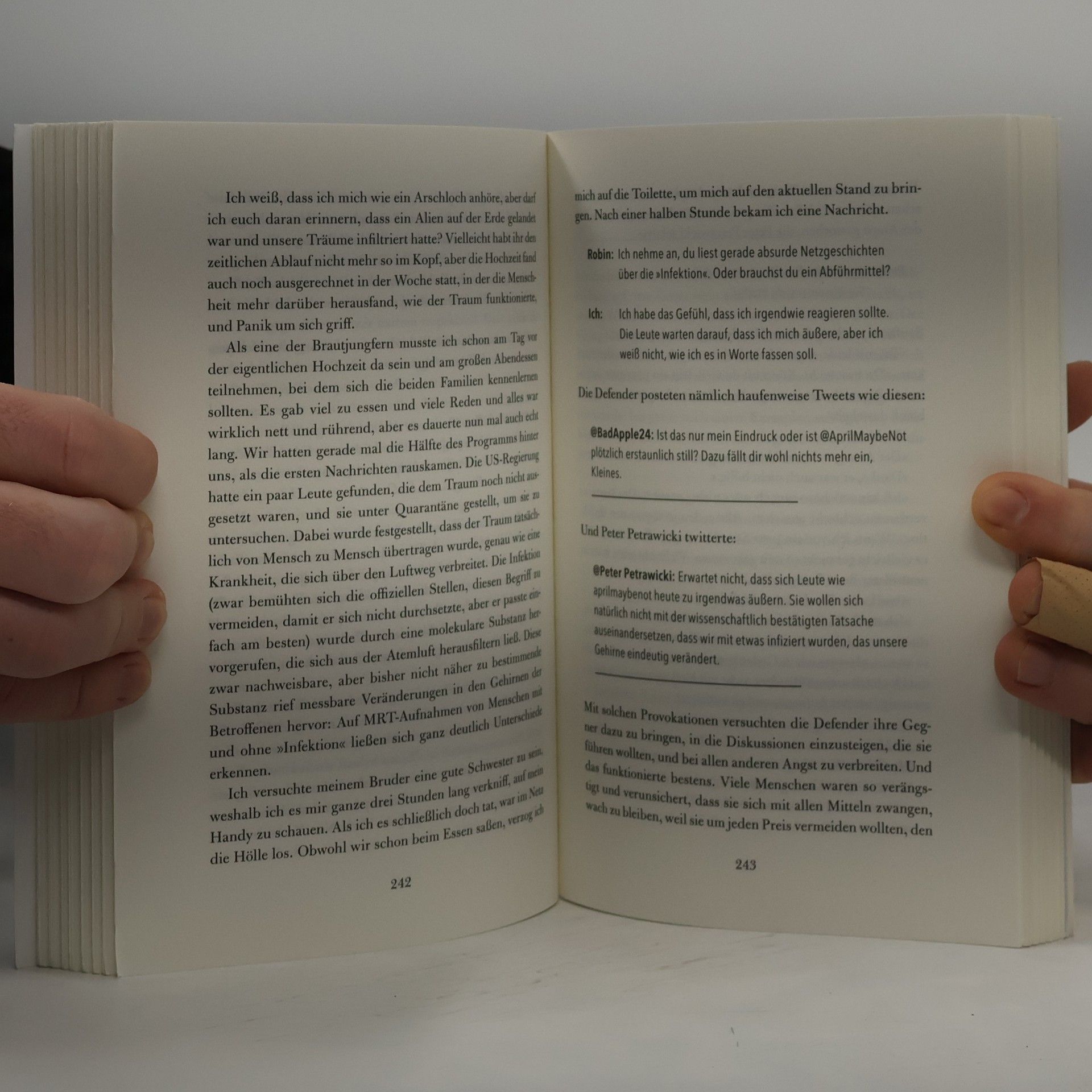 #shitstorm Stell dir vor, Außerirdische kommen auf die Erde – und du postest das allererste Video davon. Genau so verläuft »Tag X« für die 23-jährige April. Ihr Clip von »Carl«, einer mysteriösen, aber beeindruckenden Roboter-Skulptur, geht über Nacht viral und katapultiert sie ins Zentrum der öffentlichen Aufmerksamkeit. Überall auf der Welt sind Carls aufgetaucht – und niemand weiß, woher oder warum. Die Ungewissheit lässt eine mediale Hysterie ausbrechen – Schock, Neugier und Angst treffen auf Sensationslust und apokalyptische Fantasien. Immer mehr Verschwörungstheoretiker, die sogenannten Defender, sehen in der außerirdischen Intelligenz eine Bedrohung, gegen die es zu kämpfen gilt – und dazu gehört auch deren Entdeckerin April ... ›Ein wirklich erstaunliches Ding‹ ist im September 2018 in den USA erschienen und stand auf Platz 1 der New York Times Bestsellerliste. Hank Green betreibt gemeinsam mit seinem Bruder John den Video-Kanal ›Vlogbrothers‹.