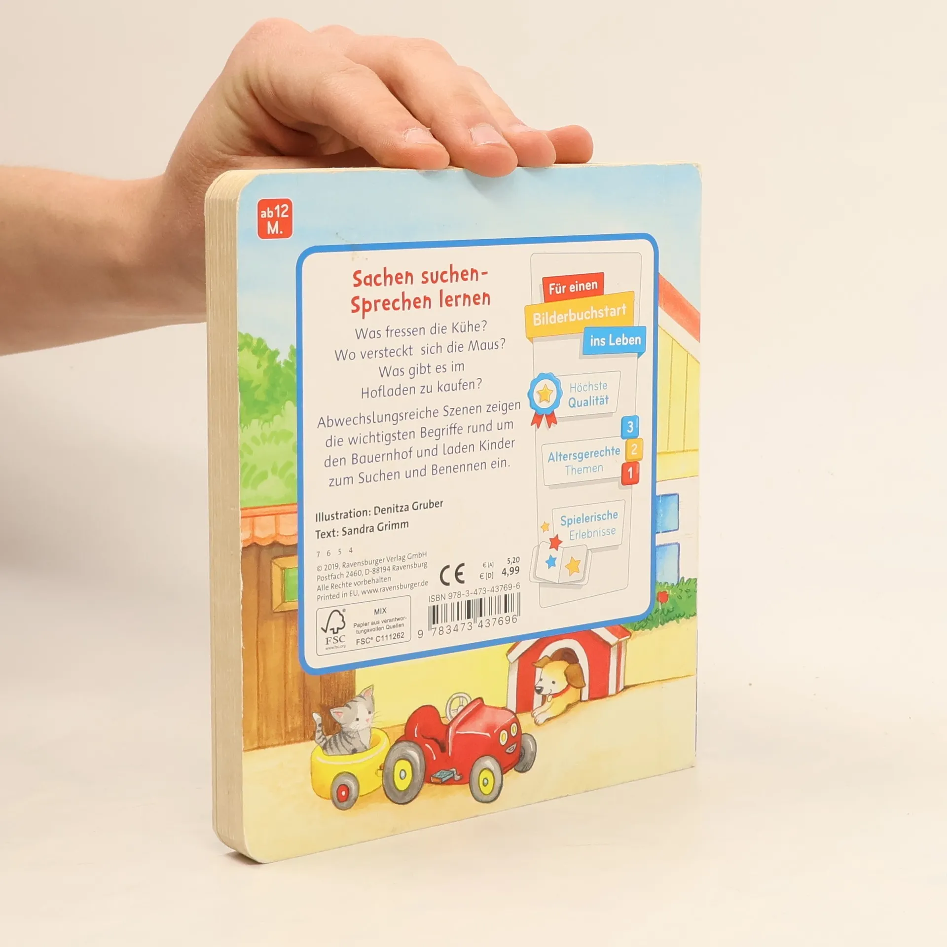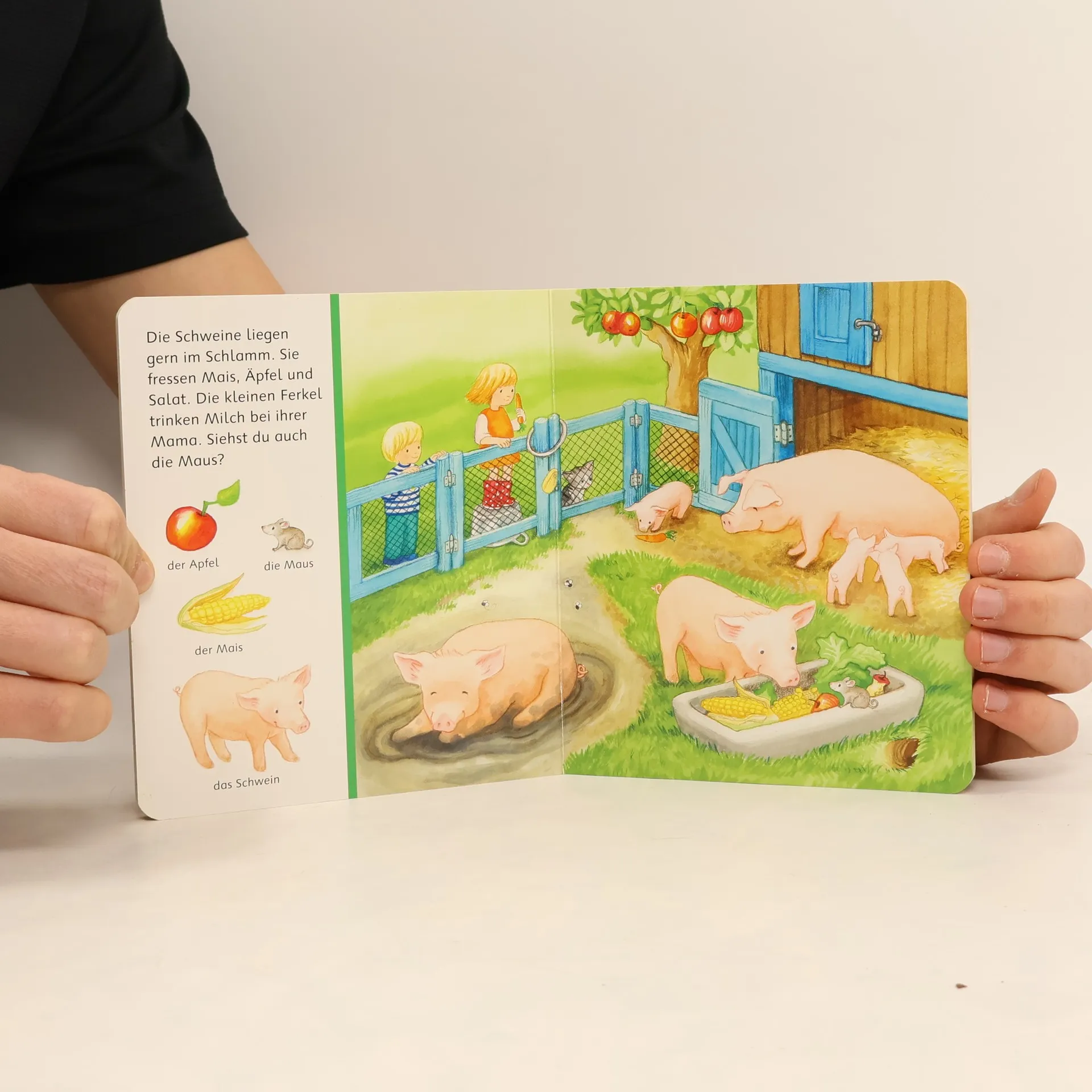 Was fressen die Kühe? Wo versteckt sich die Maus? Was gibt es im Hofladen zu kaufen? Abwechslungsreiche Szenen zeigen die wichtigsten Begriffe rund um den Bauernhof und laden zum Suchen und Benennen ein. Die ersten gesprochenen Wörter sind etwas ganz Besonderes: der Hund, der Apfel, die Maus. Vielfältige Szenen zum Lieblingsthema Bauernhof und passende Suchvignetten laden zum Suchen und Benennen ein. So wird der Spracherwerb spielerisch unterstützt.