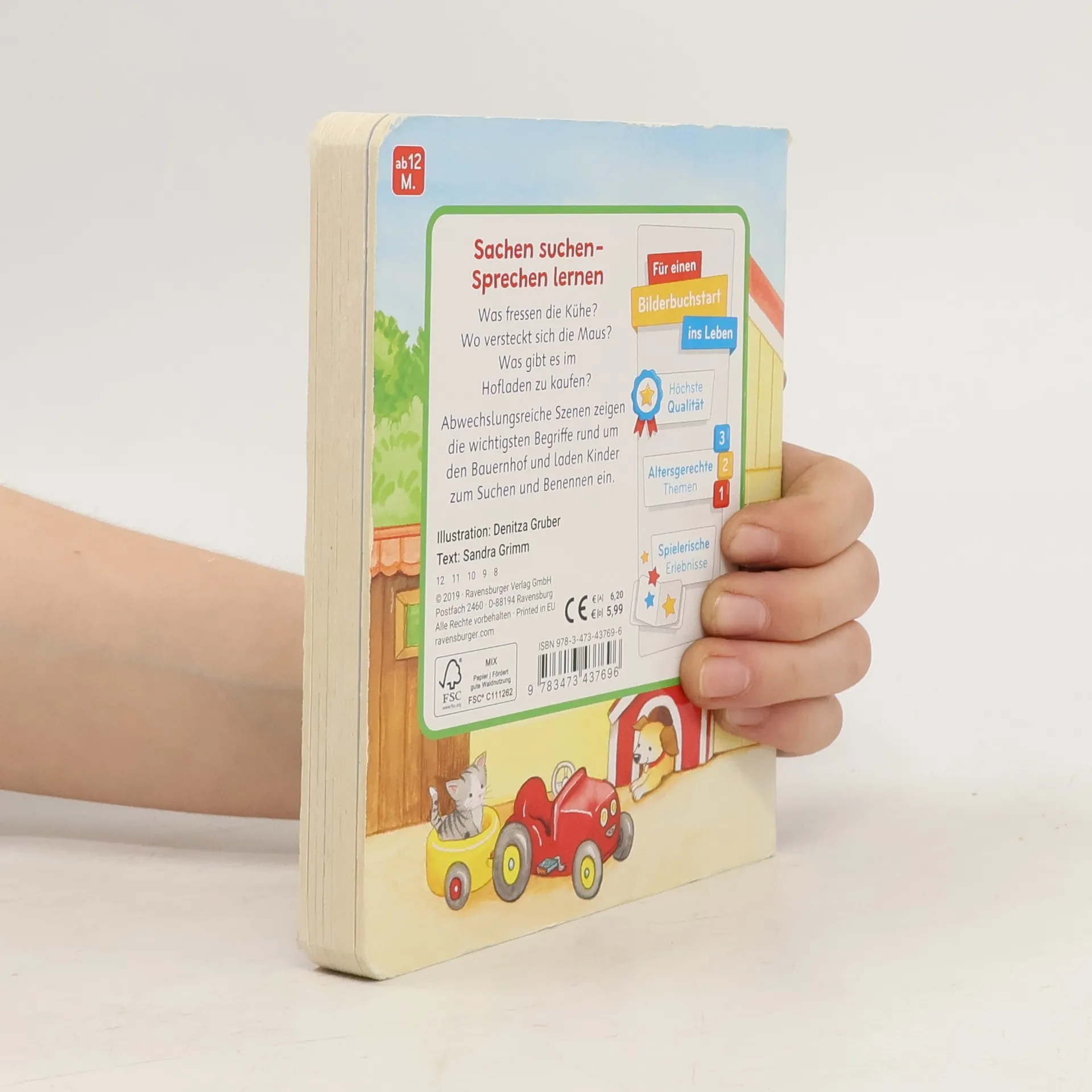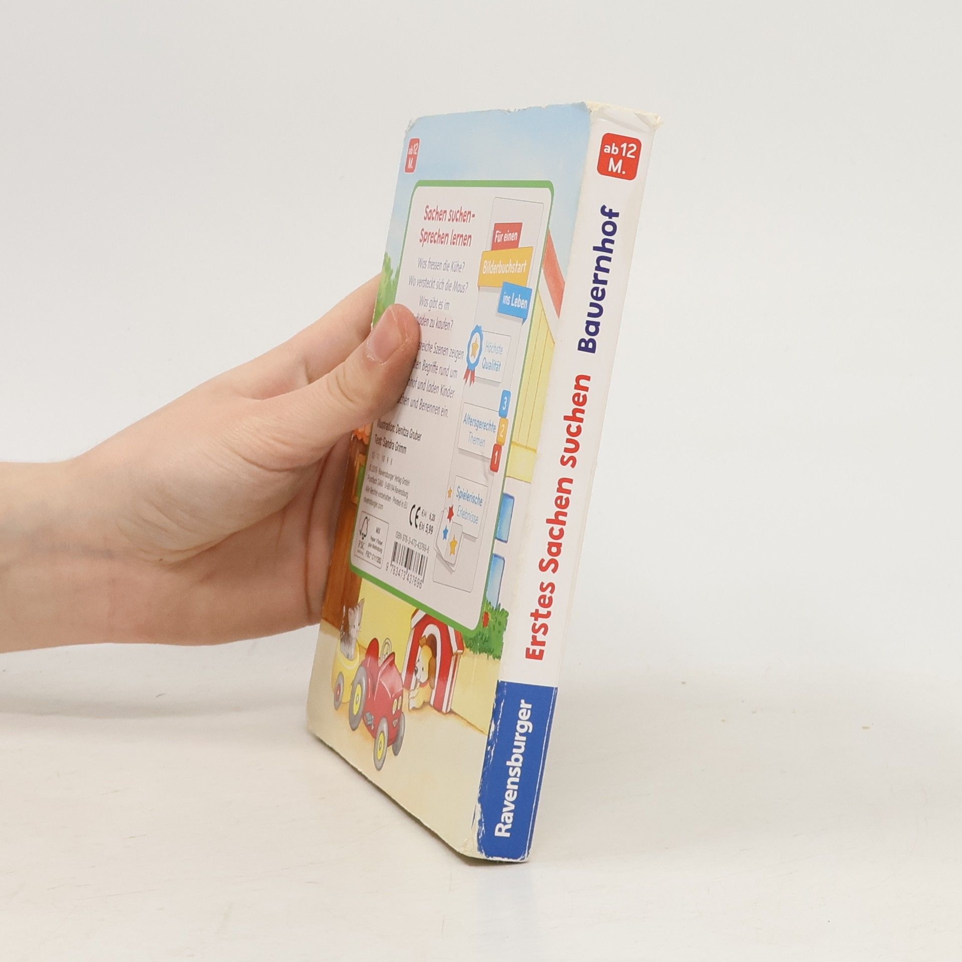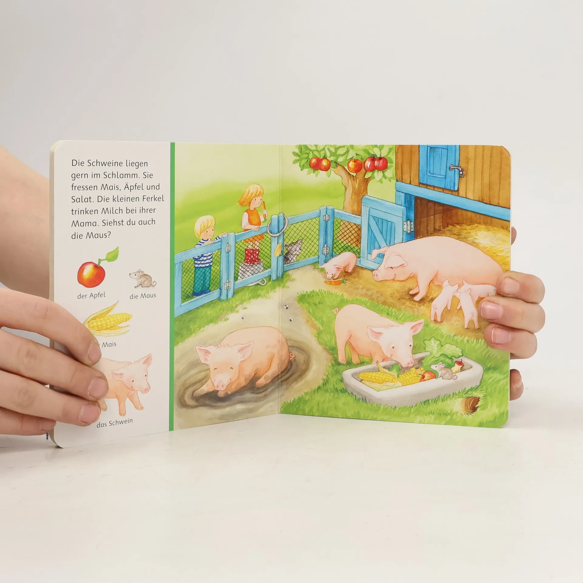 Was fressen die Kühe? Wo versteckt sich die Maus? Was gibt es im Hofladen zu kaufen? Abwechslungsreiche Szenen zeigen die wichtigsten Begriffe rund um den Bauernhof und laden zum Suchen und Benennen ein. Die ersten gesprochenen Wörter sind etwas ganz Besonderes: der Hund, der Apfel, die Maus. Vielfältige Szenen zum Lieblingsthema Bauernhof und passende Suchvignetten laden zum Suchen und Benennen ein. So wird der Spracherwerb spielerisch unterstützt.