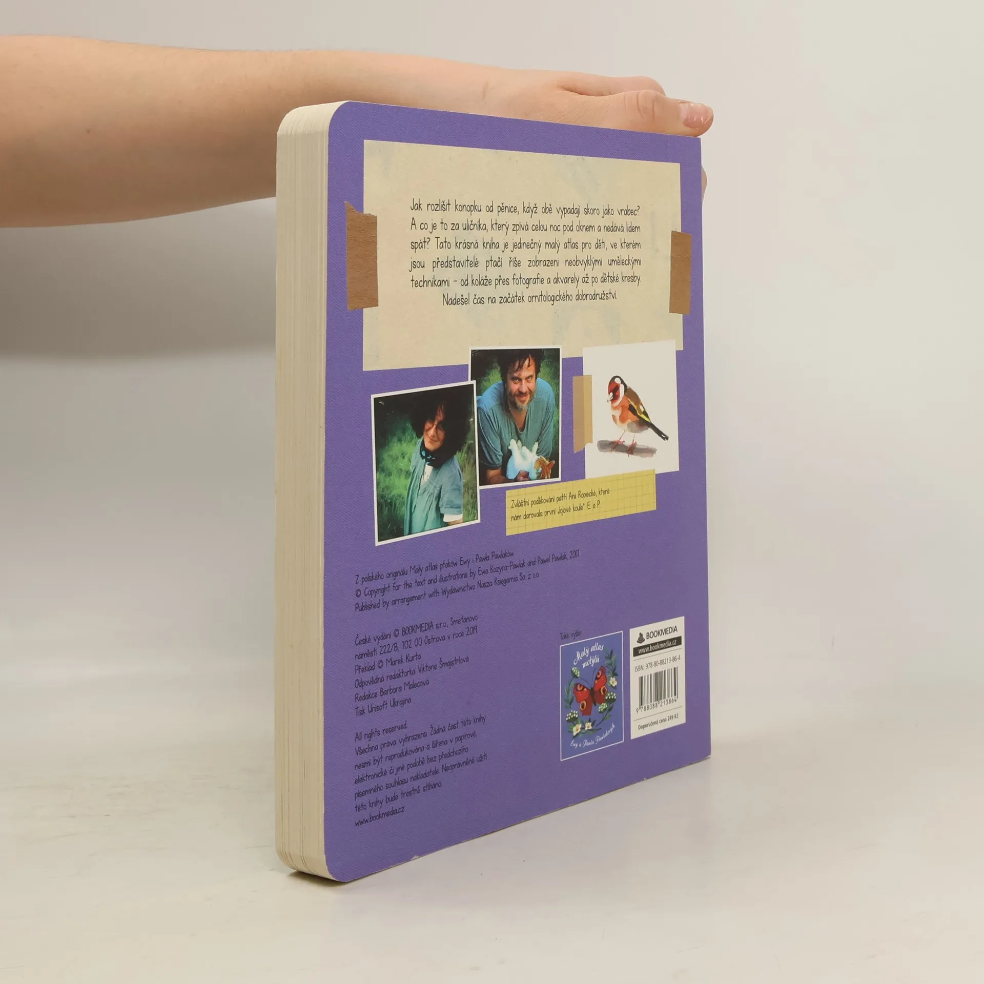 Jak rozlišit konopku od pěnice, když obě vypadají skoro jako vrabec? A co je to za uličníka, který zpívá celou noc pod oknem a nedává lidem spát? Tato krásná kniha je jedinečný malý atlas pro děti, ve kterém jsou představitelé ptačí říše zobrazeni neobvyklými uměleckými technikami - od koláže přes fotografie a akvarely až po dětské kresby. Nadešel čas na začátek ornitologického dobrodružství.