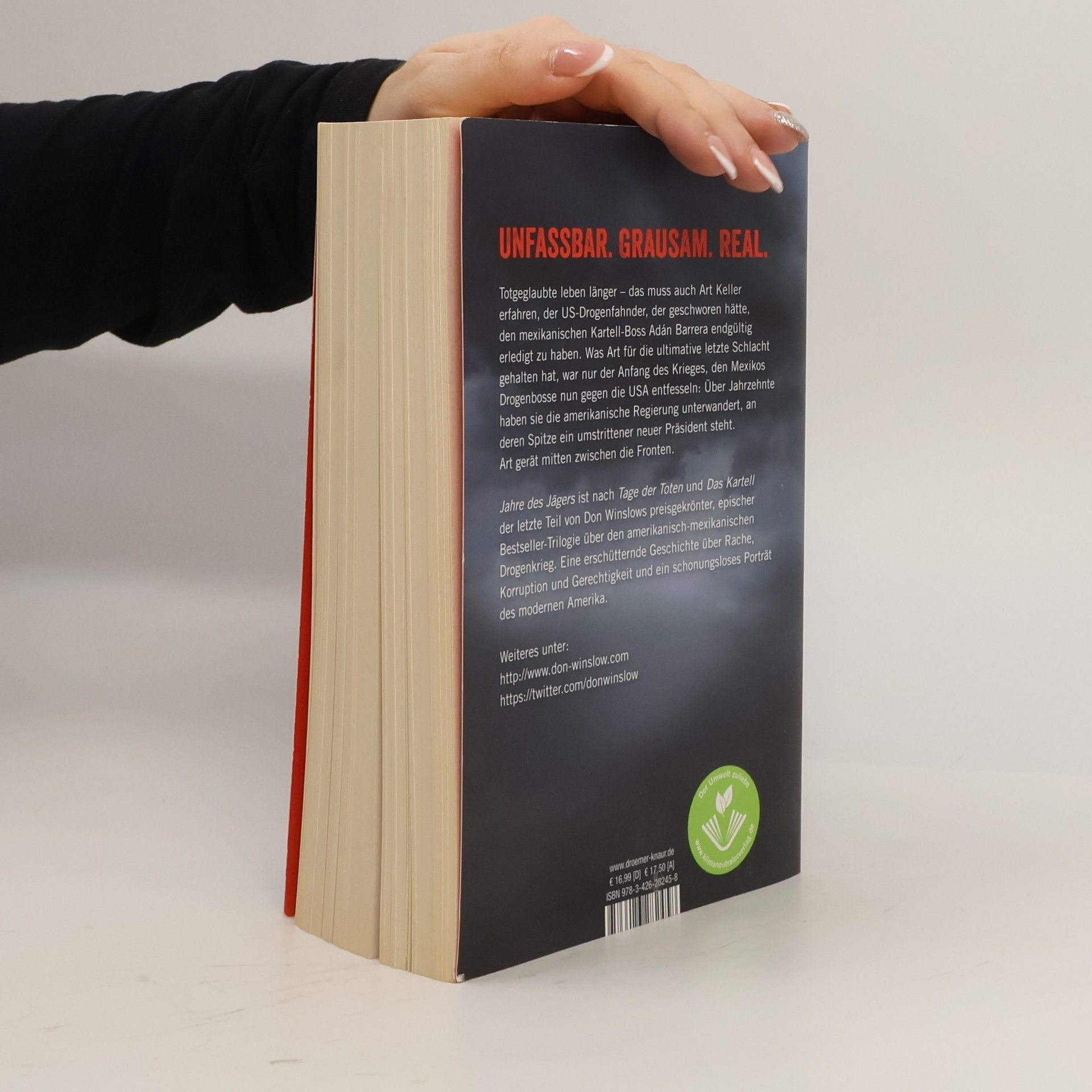 "Jahre des Jägers" ist nach den internationalen Bestsellern "Tage der Toten" und "Das Kartell" das furiose Finale des preisgekrönten Epos über den mexikanisch-amerikanischen Drogenkrieg des Thriller-Autors Don Winslow. Art Keller, der berühmte US-Drogenfahnder, steht vor der Aufgabe seines Lebens: die amerikanische Anti-Drogen-Politik ist gescheitert, die Menge des jährlich importierten Heroins hat sich vervielfacht. So viele Amerikaner wie noch nie sind opiatabhängig. Die mächtigen mexikanischen Drogenkartelle versuchen, die amerikanische Regierung zu unterwandern - an deren Spitze ein umstrittener neuer Präsident steht. Art Keller folgt den Spuren des verschwundenen legendären Drogenbosses Adan Barrera und findet sich in einen brutalen und gnadenlosen Kampf gegen beide Seiten verstrickt. Er muss feststellen, dass Drogen- und Waffengeschäfte unfassbare Dimensionen angenommen haben. Dabei kommt der Feind aus einer ganz unerwarteten Richtung. Es beginnt ein entfesselter Krieg mit epischem Ausmaß, in dem die Grenzen zwischen Gut und Böse schon längst verschwunden sind. Nach „Tage der Toten" und „Das Kartell" der krönende Abschluss der hochgelobten, preisgekrönten und international erfolgreichen Trilogie des Starautors Don Winslows um den mexikanisch-amerikanischen Drogenkrieg. Ein ebenso mitreißender wie erschütternder Epos über Gier und Korruption, Rache und Gerechtigkeit, Heldenmut und Hinterhältigkeit.
