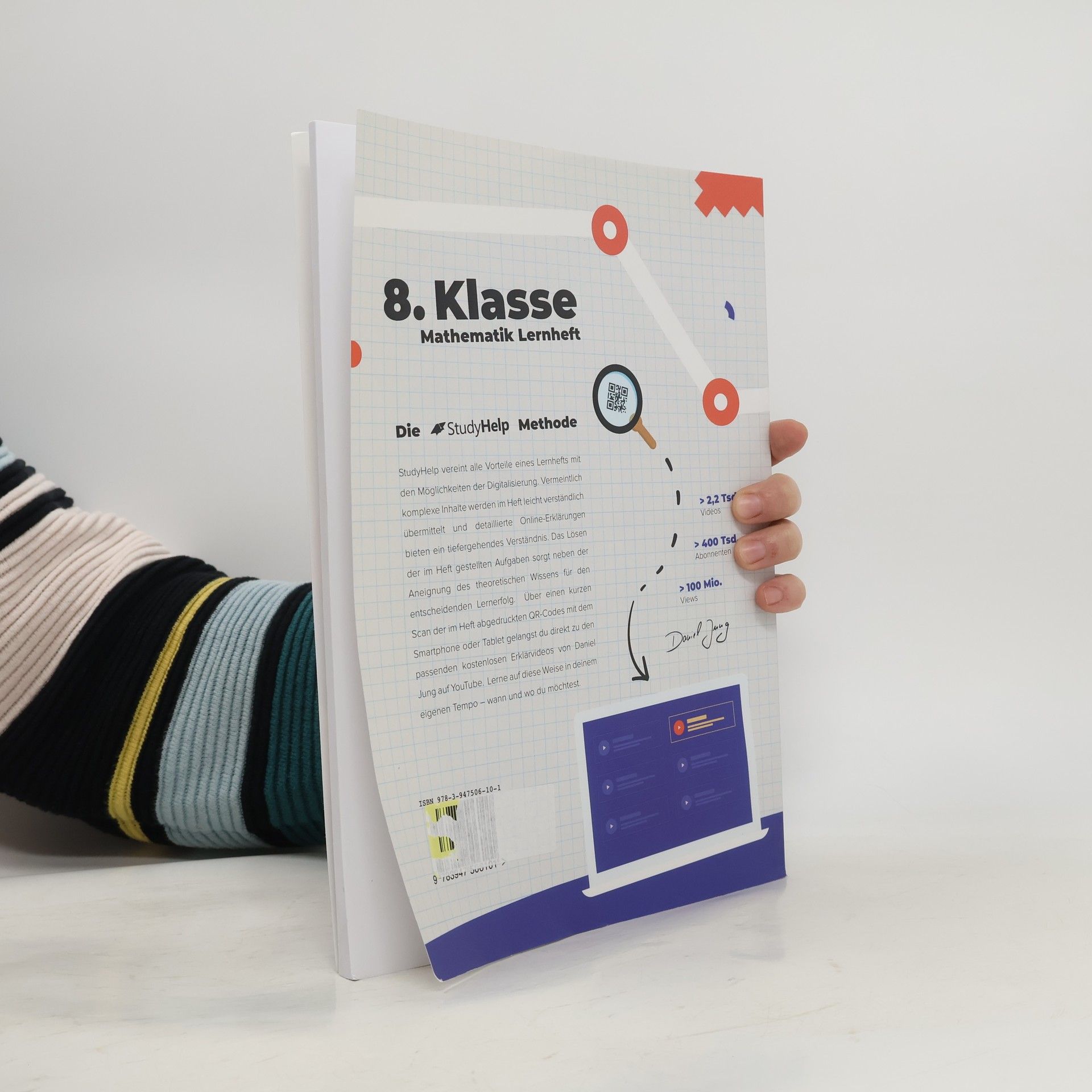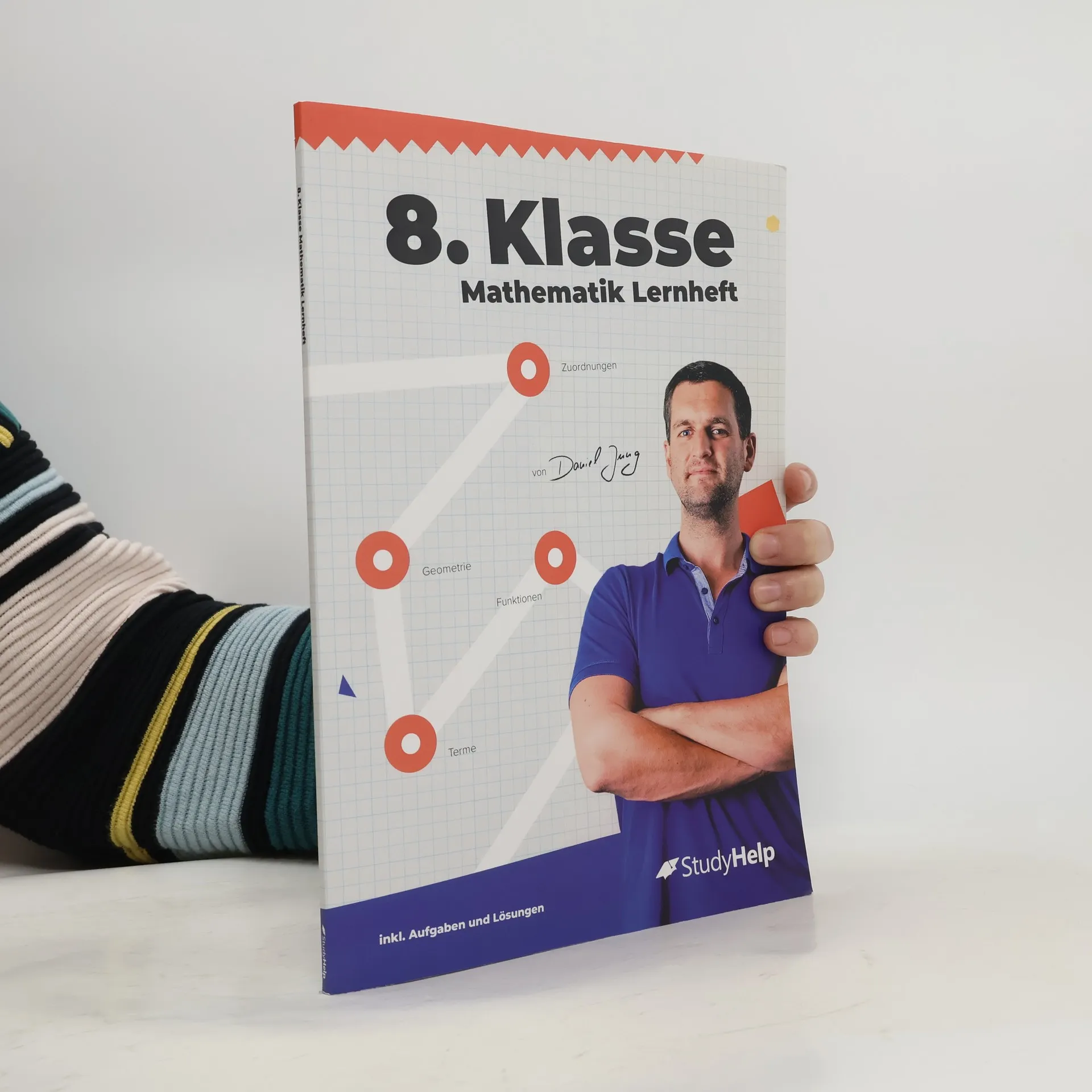 Dein treuer Wegbegleiter im Fach Mathematik für die Klasse 8 . 84 Seiten anschauliche Erklärungen 67 Lernvideos von Daniel Jung 43 Aufgaben inkl. Lösungen Unser 84-seitiges Lernheft steckt voller Erklärungen, Beispielaufgaben, Aufgaben und Lösungen zu allen relevanten Themen der 8. Klasse für Gymnasien, Gesamt-, Haupt- und Realschulen . Ganz egal, ob du einfach nur den aktuellen Stoff vertiefen oder bereits in der Schule gelerntes wiederholen willst, hier wirst du fündig. Vermeintlich komplizierte Zusammenhänge sind in einer für Schüler vollkommen verständlichen Sprache dargestellt. Außerdem findest du zu den Themen alle Formeln, Skizzen und was sonst noch notwendig ist, um den Sachverhalt zu verstehen. Somit steht deinem Erfolg in der Sekundarstufe 1 nichts mehr im Wege. Dieses Heft wird dir dabei helfen, dich optimal auf die mathematischen Inhalte vorzubereiten oder wichtige Themen zu wiederholen . Alle Themen sind in übersichtliche Kapitel unterteilt, die dich sinnvoll durch die Jahrgangsstufe 8 leiten werden.