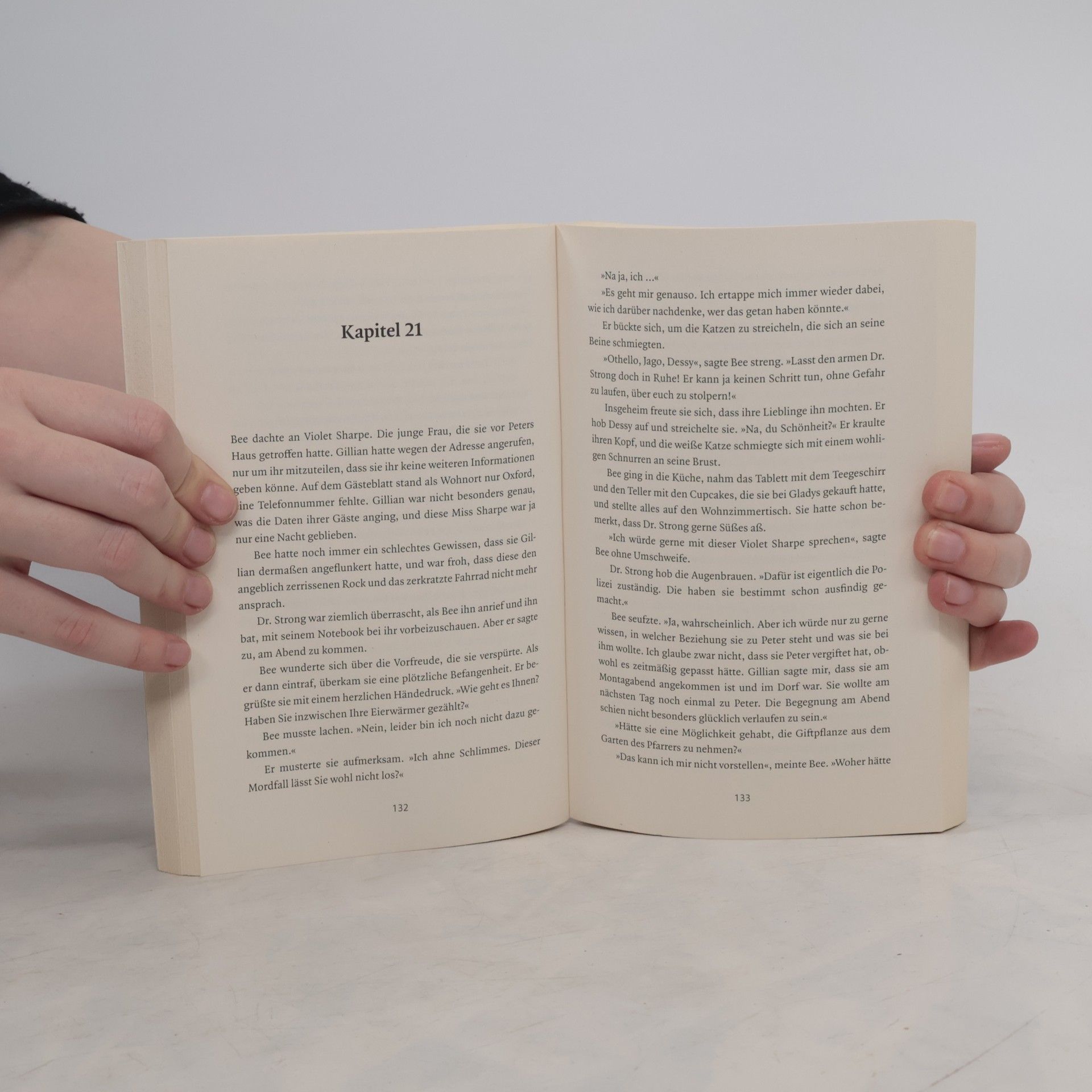 Der erste Fall für Bee Merryweather   Seit die pensionierte Bee Merryweather in das kleine South Pendrick gezogen ist, genießt sie das ruhige Leben in Cornwall. Endlich kann sie ihrer Leidenschaft fürs Eierwärmerhäkeln nachgehen. Die neuen Nachbarn scheinen nett zu sein, nur der Chorleiter Peter Bartholomew geizt nicht mit barschen Worten. Doch dann wird Peter ermordet, und ausgerechnet Bee stolpert über seine Leiche. Der Fall lässt der Pensionärin keine Ruhe. Wer hatte einen Grund, Peter zu töten? Der Startenor, der keiner ist? Der Pfarrer, der ein ziemlich merkwürdiges Hobby pflegt? Oder die junge Frau im roten Kleid, die aus Peters Haus kam und die niemand je zuvor im Dorf gesehen hat?