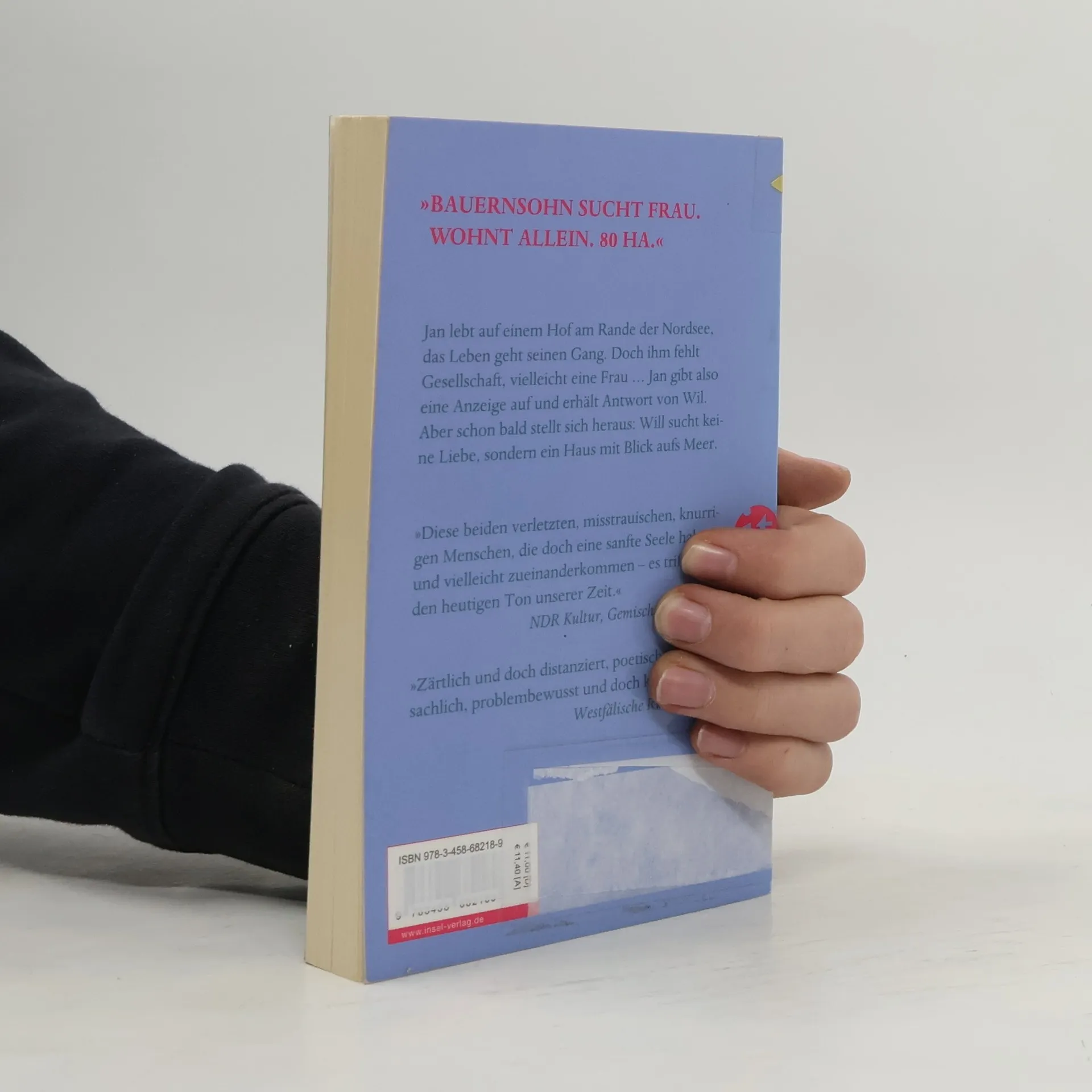 Jan lebt allein auf einem Hof am Rande der Nordsee, das Leben geht seinen Gang, aber die Einsamkeit nagt an ihm. Ein bisschen Gesellschaft wäre schön, eine Frau, Gespräche, Sex, vielleicht sogar eine eigene Familie? Jan gibt eine Anzeige auf und erhält Antwort von Wil. Wil jedoch, so stellt sich heraus, verfolgt einen ganz eigenen Plan – sie sucht keine Liebe, sondern ein Haus mit Blick aufs Meer. Zwei Menschen, die unterschiedlicher nicht sein könnten, versuchen zusammenzufinden. Kann das gutgehen? Atmosphärisch, lakonisch und mit einem feinen Gespür für das Skurrile beschreibt Mathijs Deen den Weg zweier einsamer Menschen in eine ungewöhnliche Partnerschaft – charmant, unterhaltsam und tragikomisch.