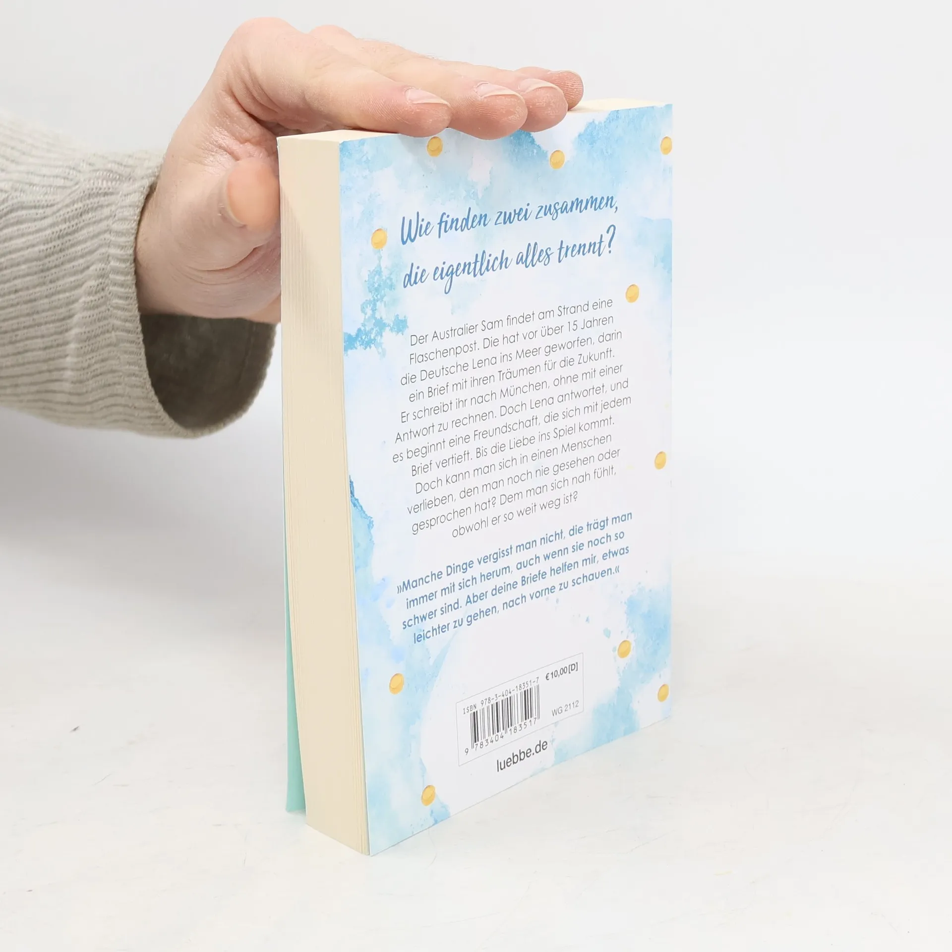 Der Australier Sam findet auf seiner Joggingrunde eine Flaschenpost. Die hat vor über fünfzehn Jahren die junge Deutsche Lena am Ende ihres Work & Travel-Jahres ins Meer geworfen, darin ein Brief mit ihren Wünschen und Träumen für die Zukunft. Er schreibt ihr, ohne mit einer Antwort zu rechnen. Doch Lena bedankt sich beim Finder, und es beginnt eine Freundschaft, die sich mit jedem Brief vertieft. Bis die Liebe ins Spiel kommt. Doch kann man sich in einen Menschen verlieben, den man noch nie gesehen oder gesprochen hat? Dem man sich nah fühlt, obwohl er so weit weg ist?