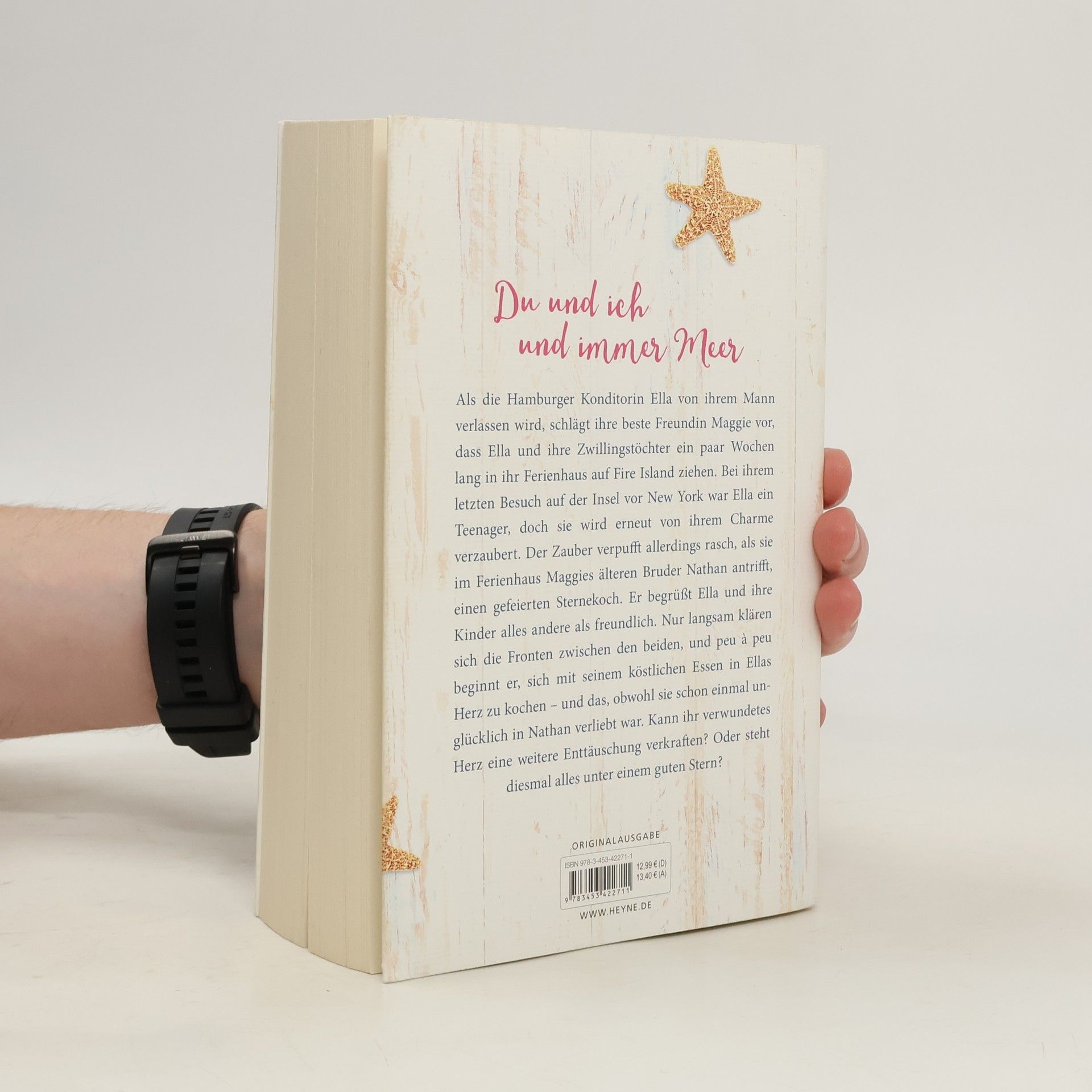Du und ich und immer Meer Als die Hamburger Konditorin Ella Altenburger von ihrem Ehemann verlassen wird, schlägt ihre beste Freundin Maggie vor, dass Ella und ihre Zwillingstöchter ein paar Wochen lang in das Ferienhaus von Maggies Eltern auf Fire Island ziehen. Bei ihrem letzten Besuch auf der Insel vor New York war Ella ein Teenager, doch auch mit sechsunddreißig wird sie erneut von Fire Islands Charme verzaubert. Der Zauber verpufft allerdings rasch, als sie im Ferienhaus Nathan Goodman antrifft: Maggies rebellischer älterer Bruder, ein gefeierter Sternekoch, hat sich dort einquartiert und begrüßt Ella und ihre Kinder alles andere als freundlich. Nur langsam klären sich die Fronten zwischen Ella und Nathan, der auch einen Grund zu haben scheint, warum er auf die Insel geflüchtet ist. Peu à peu beginnt er, sich mit seinem köstlichen Essen in Ellas Herz zu kochen – und das, obwohl sie schon einmal unglücklich in Nathan verliebt war. Könnte ihr verwundetes Herz eine weitere Enttäuschung verkraften? Oder steht diesmal alles unter einem guten Stern?