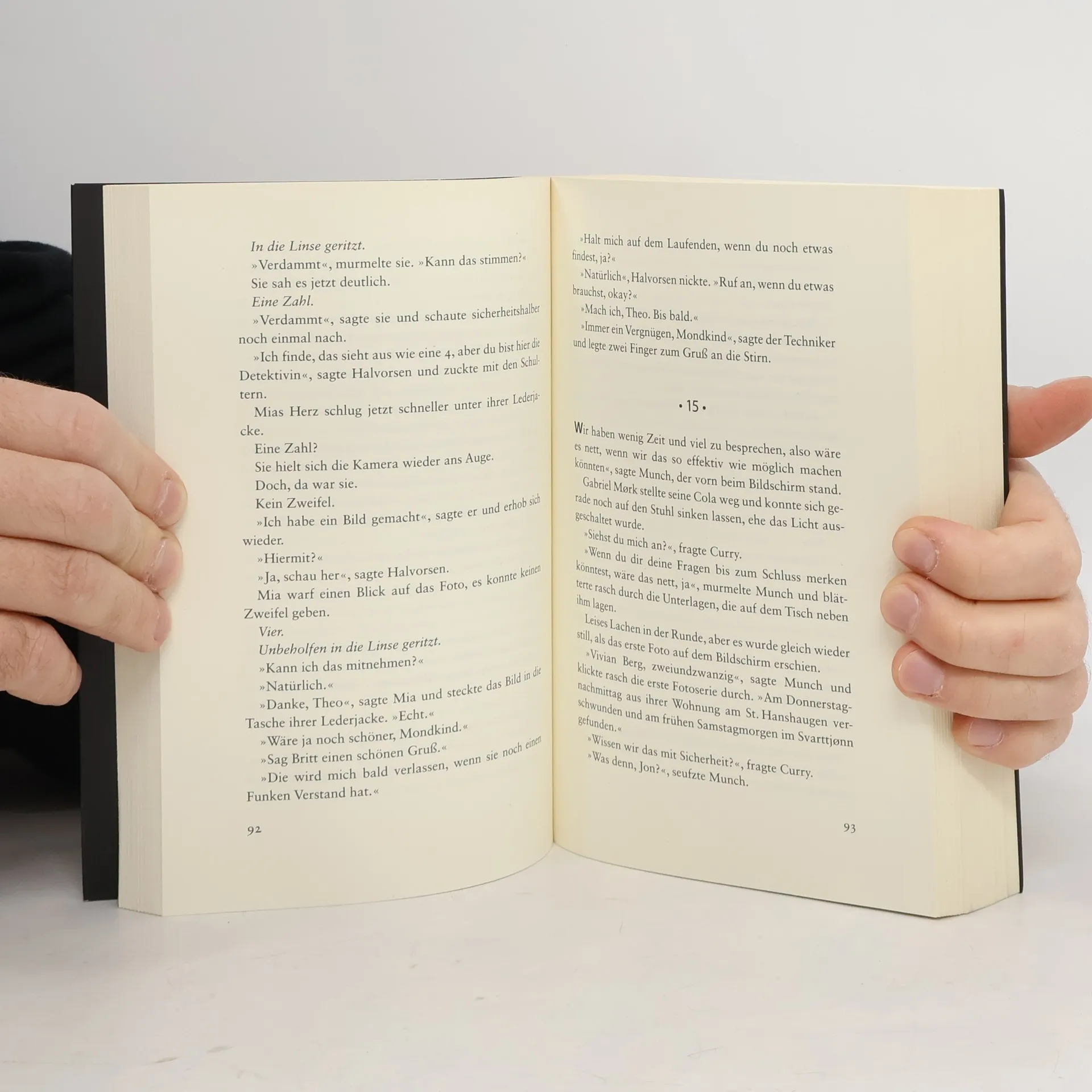 Ein alter Mann fährt auf einer einsamen Straße in den norwegischen Bergen. Plötzlich taucht aus dem Dunkeln eine Gestalt auf, und er schafft es gerade noch zu bremsen. Noch unter Schock kann er nicht glauben, was er sieht: Vor ihm steht ein kleiner Junge mit einem Geweih auf dem Kopf. Vierzehn Jahre später wird in einem nahegelegenen Bergsee eine Leiche gefunden. Die junge Frau trägt das Kostüm einer Balletttänzerin, und am Ufer steht eine Kamera, in deren Linse eine 4 eingeritzt ist. Kommissar Holger Munch und seine Kollegin Mia Krüger stehen vor einem Rätsel. Dann taucht eine weitere Kamera auf – und ein weiteres Opfer ...