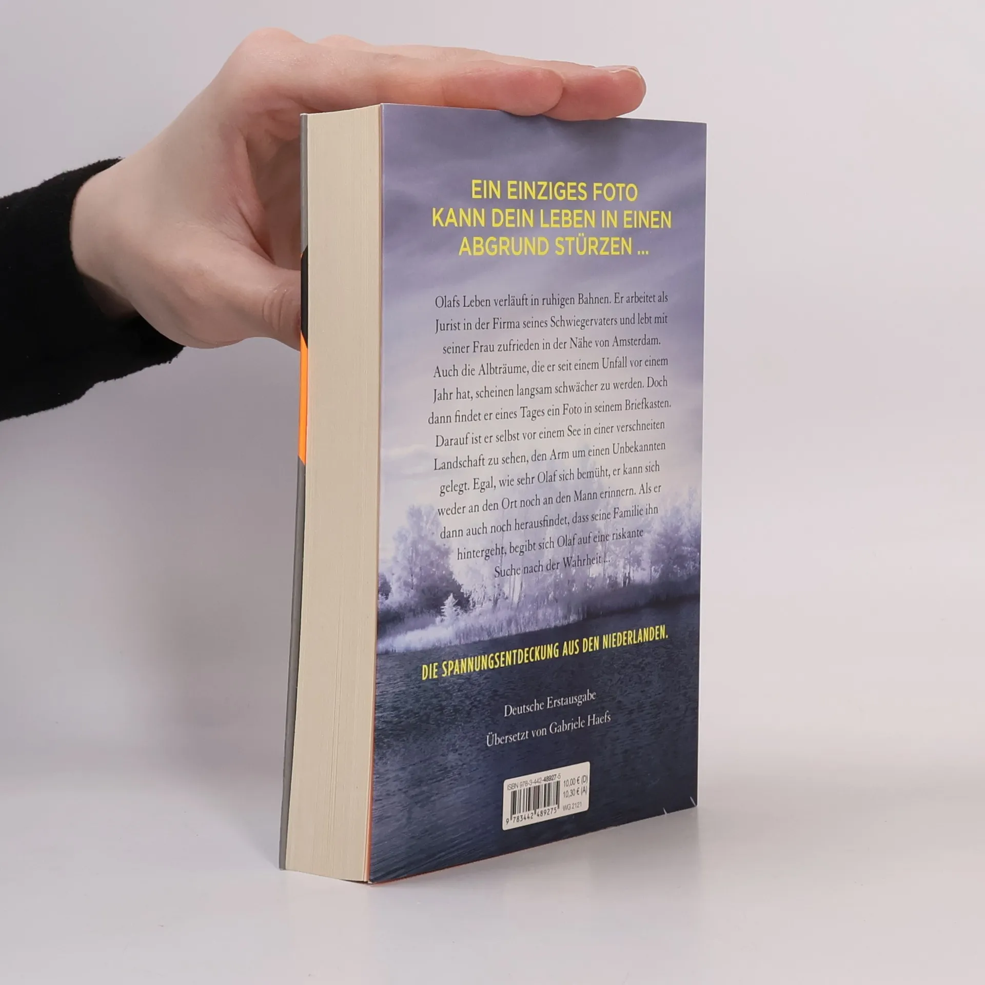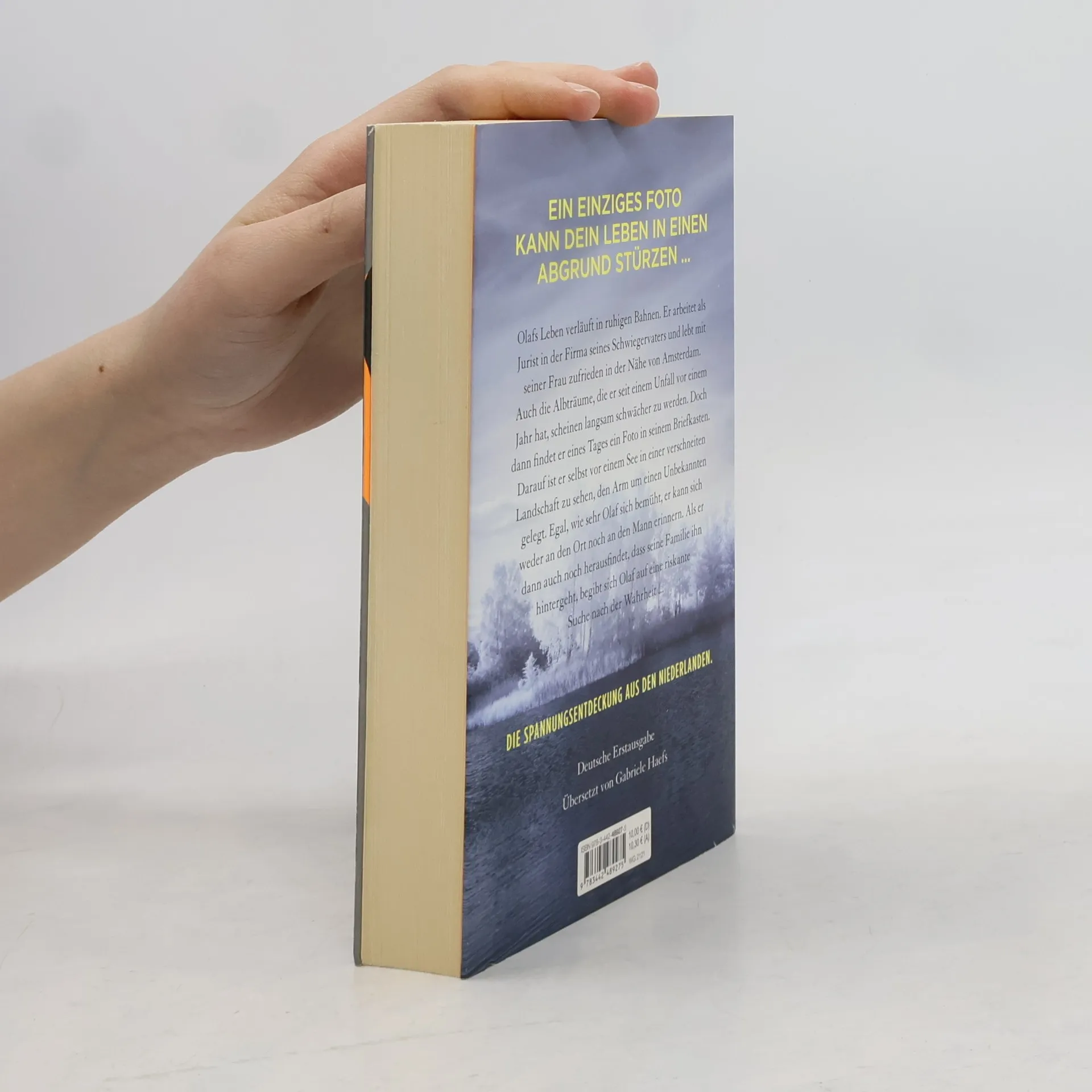 Olafs Leben verläuft in ruhigen Bahnen. Er arbeitet als Jurist in der Firma seines Schwiegervaters und lebt mit seiner Frau zufrieden in der Nähe von Amsterdam. Auch die Albträume, die er seit einem Unfall vor einem Jahr hat, scheinen langsam schwächer zu werden. Doch dann findet er eines Tages ein Foto in seinem Briefkasten. Darauf ist er selbst vor einem See in einer verschneiten Landschaft zu sehen, den Arm um einen Unbekannten gelegt. Egal, wie sehr Olaf sich bemüht, er kann sich weder an den Ort noch an den Mann erinnern. Als er dann auch noch herausfindet, dass seine Familie ihn hintergeht, begibt sich Olaf auf eine riskante Suche nach der Wahrheit ...