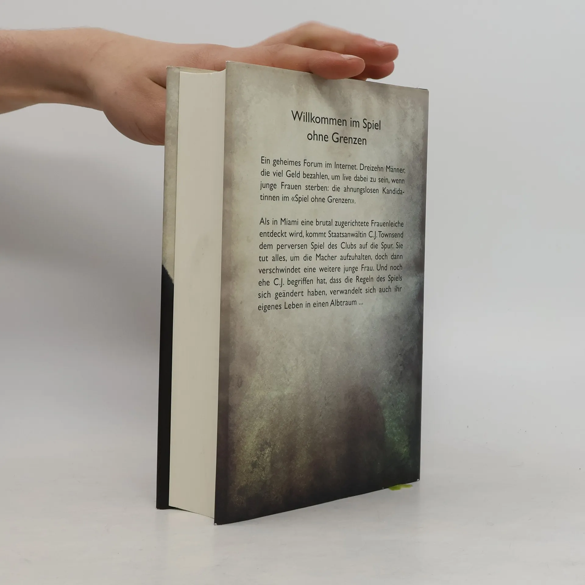 Willkommen im Spiel ohne Grenzen Ein geheimes Forum im Internet. Dreizehn Männer, die viel Geld bezahlen, um live dabei zu sein, wenn junge Frauen sterben: die ahnungslosen Kandidatinnen im «Spiel ohne Grenzen». Als in Miami eine brutal zugerichtete Frauenleiche entdeckt wird, kommt Staatsanwältin C. J. Townsend dem perversen Spiel des Clubs auf die Spur. Sie tut alles, um die Macher aufzuhalten, doch dann verschwindet eine weitere junge Frau. Und noch ehe C. J. begriffen hat, dass die Regeln des Spiels sich geändert haben, verwandelt sich auch ihr eigenes Leben in einen Albtraum ...