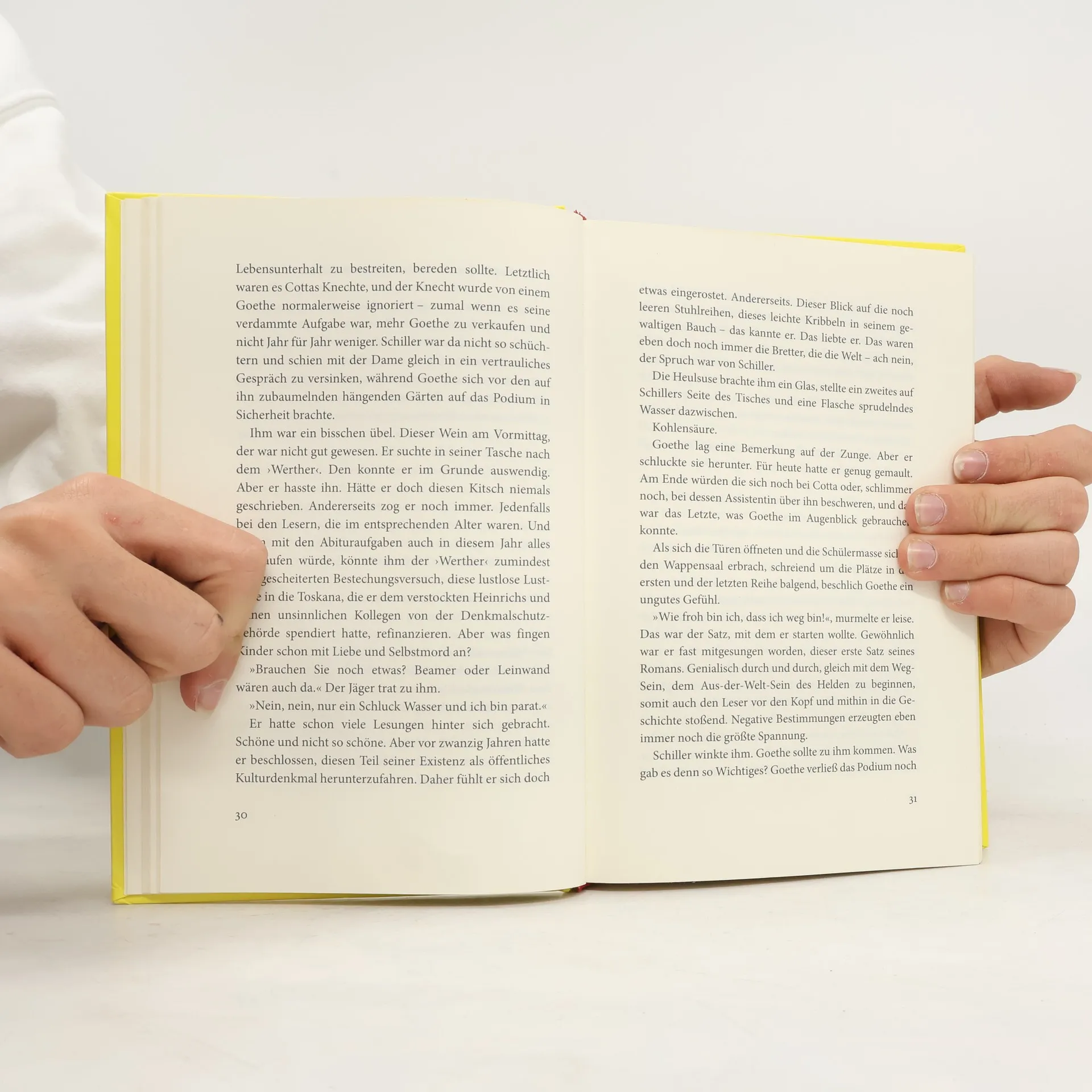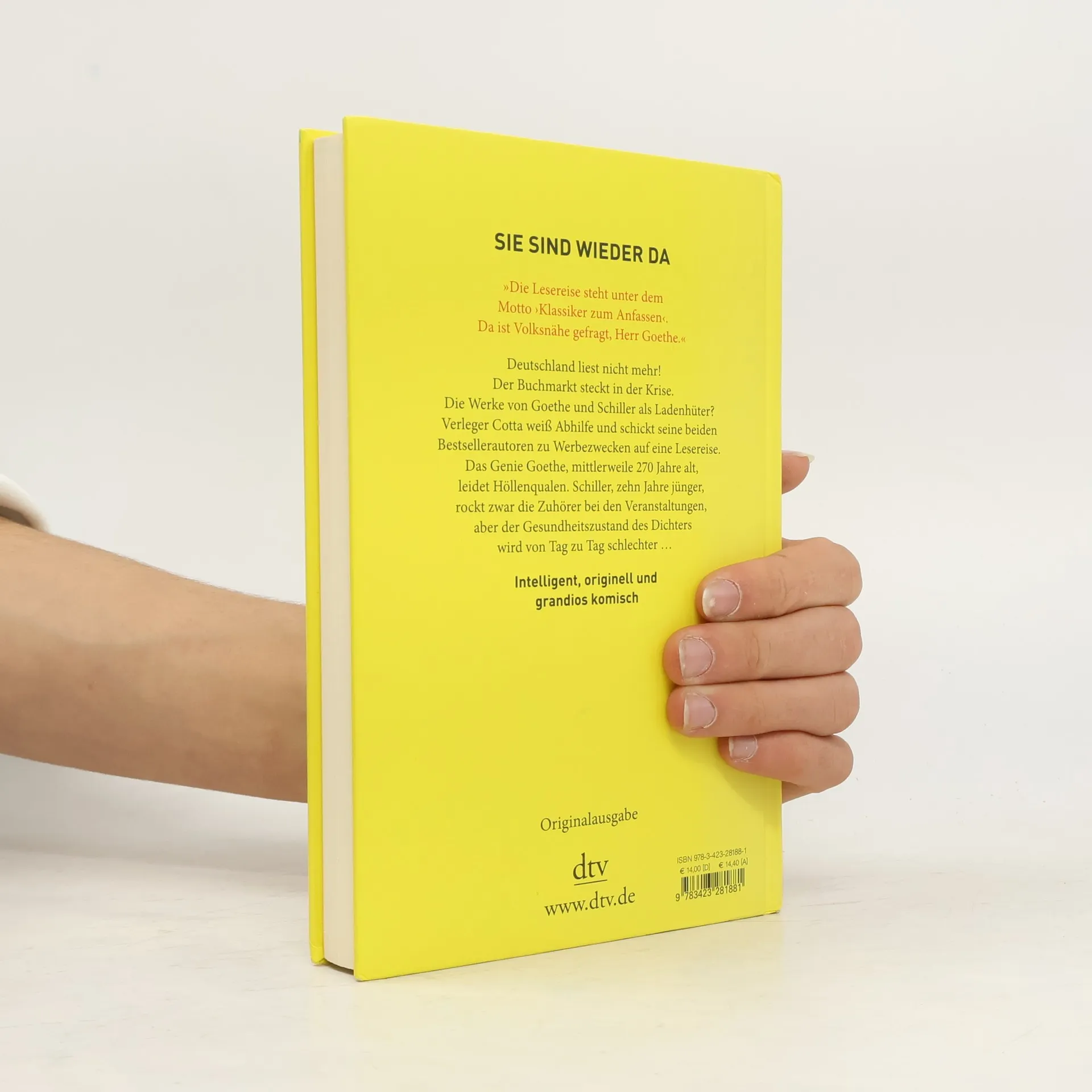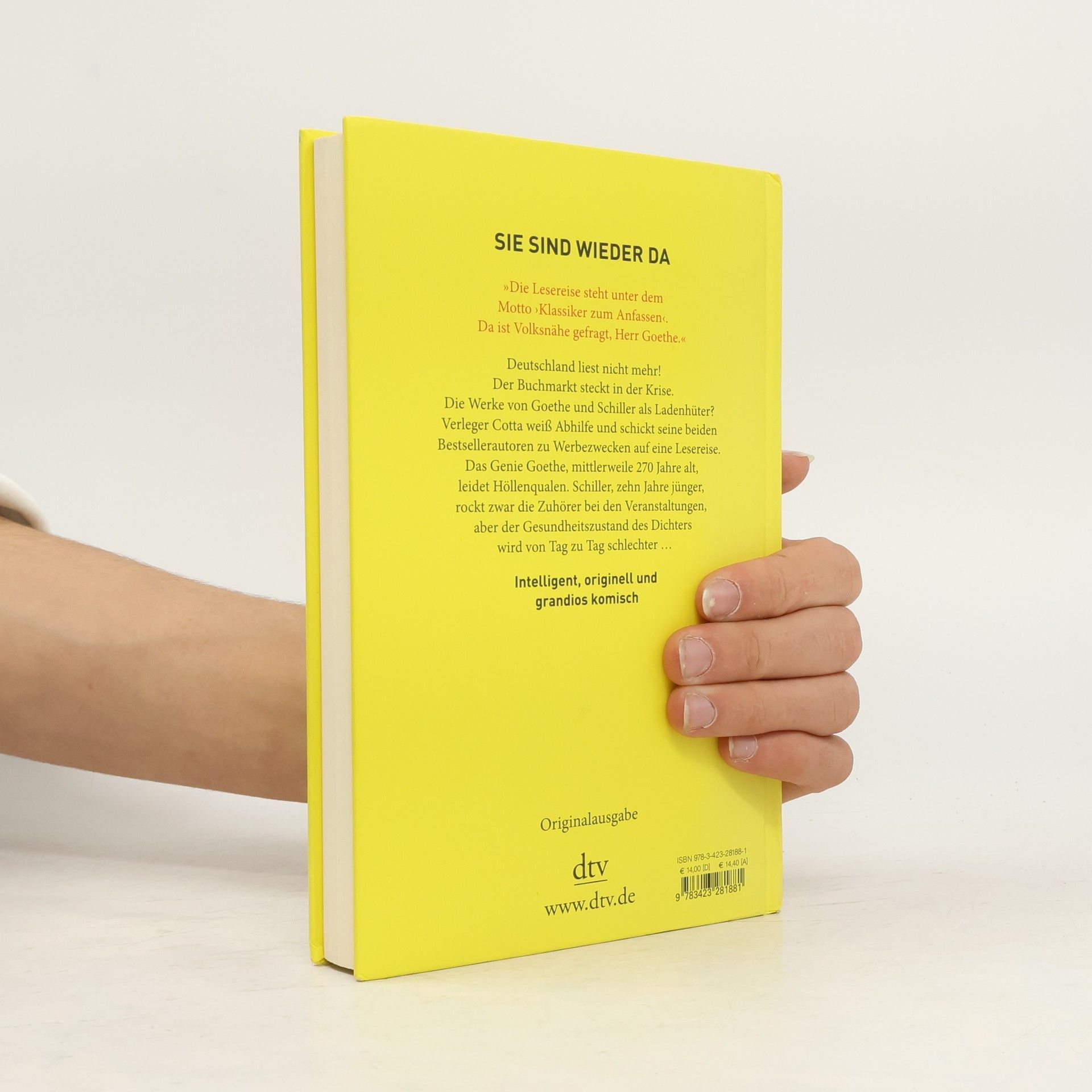 Im Jahr 2014 bringt der krisengeschüttelte Buchmarkt auch die Absätze der deutschen Klassiker Goethe und Schiller zum Sinken, deshalb werden die beiden Herren (265 und 255 Jahre alt) von Verleger Cotta auf eine Lesereise durch den Harz geschickt. Krönender Abschluss soll die Lesung des ›Faust‹ auf dem Brocken sein. Nur widerwillig lässt sich Goethe darauf ein. Ärgerlich, dass Kollege Schiller ihm im Umgang mit verspäteten ICEs, desinteressierten Schülern und der attraktiven mitreisenden Buchhändlerin immer eine Nasenlänge voraus zu sein scheint. Und schließlich mit neuen Ideen zum Höhenflug ansetzt.