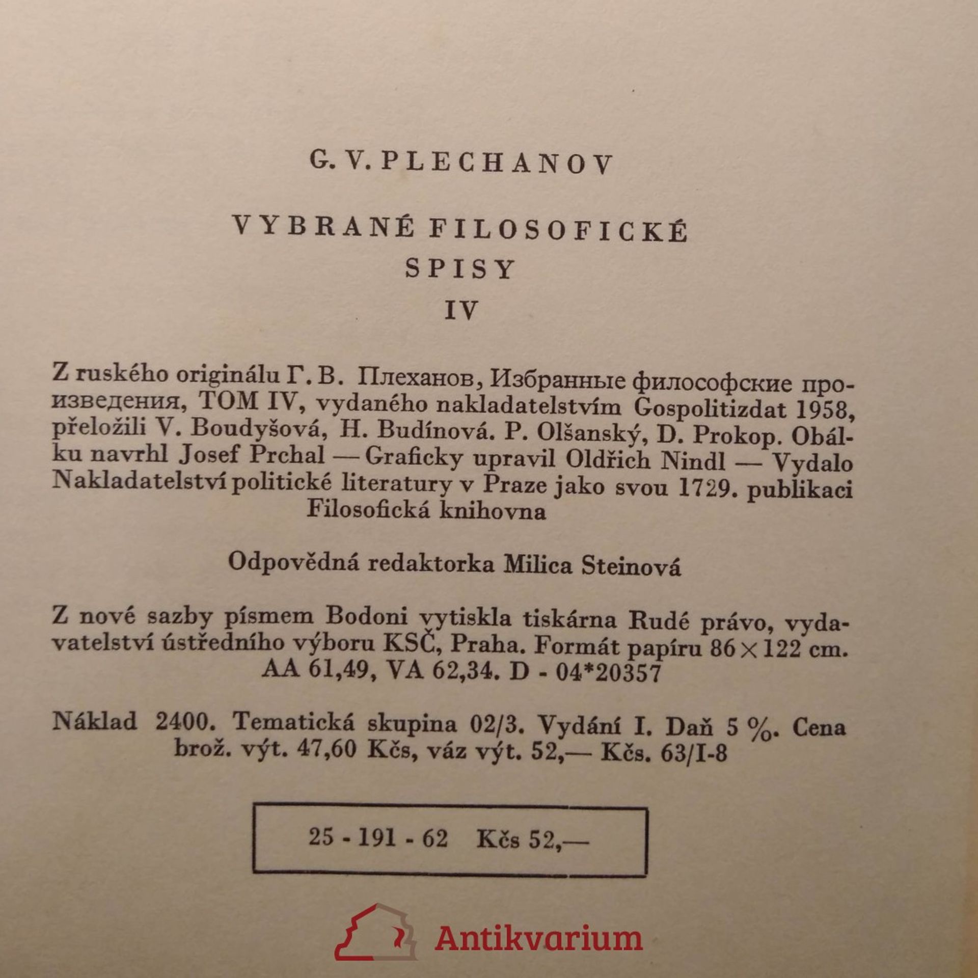 Vybrané filosofické spisy. IV, Georgij Valentinovič Plechanov, M. Jovčuk