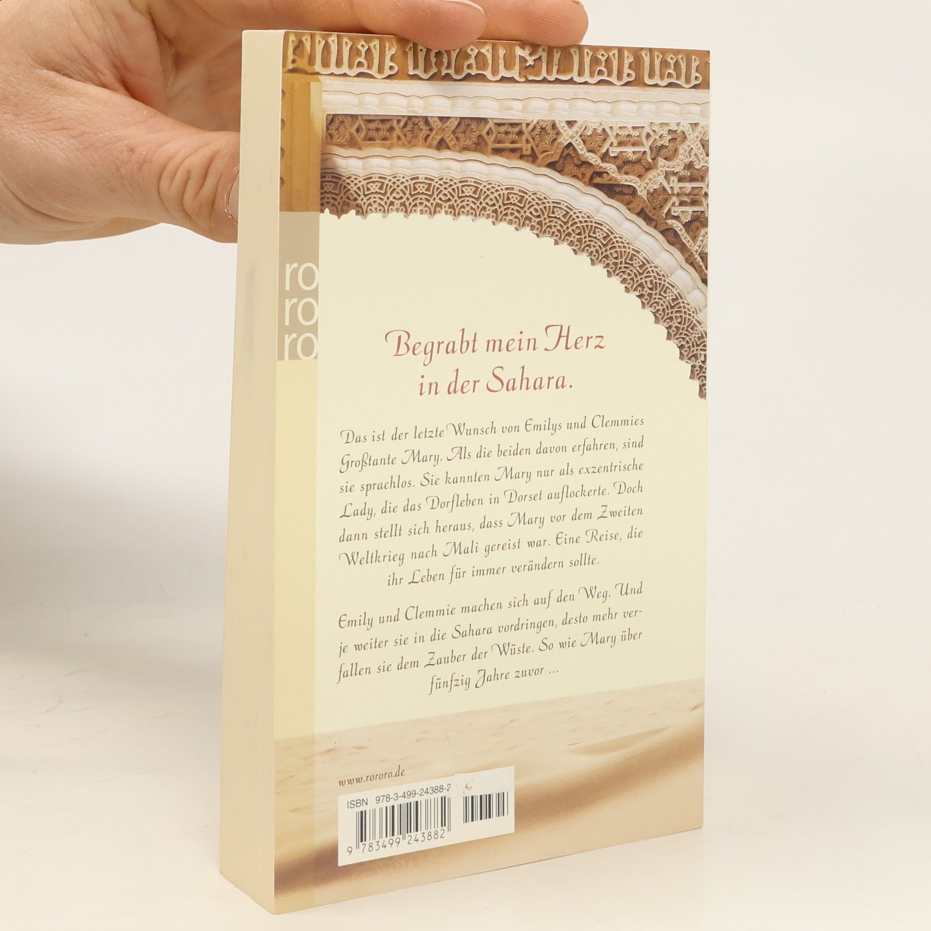 Begrabt mein Herz in der Sahara Das ist der letzte Wunsch von Emily und Clemmies Großtante Mary. Als die beiden davon erfahren, sind sie sprachlos. Sie kannten Mary nur als exzentrische Lady, die das Dorfleben in Dorset auflockerte. Doch dann stellt sich heraus, dass Mary vor dem zweiten Weltkrieg nach Mali gereist war. Eine Reise, die ihr Leben für immer verändern sollte. Emily und Clemmie machen sich auf den Weg. Und je weiter sie in die Sahara vordringen, desto mehr verfallen sie dem Zauber der Wüste. So wie Mary über fünfzig Jahren zuvor …