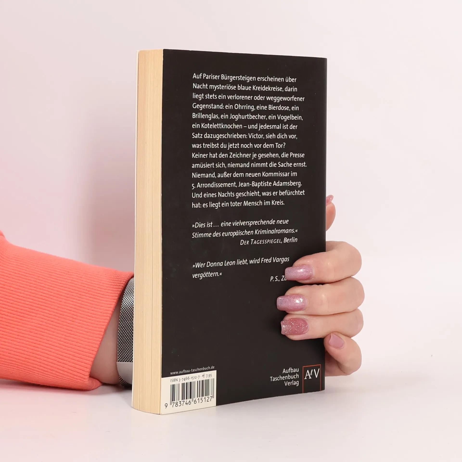 Auf Pariser Bürgersteigen erscheinen über Nacht mysteriöse blaue Kreidekreise, und darin stets ein verlorener oder weggeworfener Gegenstand: ein Ohrring, eine Bierdose, ein Brillenglas, ein Joghurtbecher ... Keiner hat den Zeichner je gesehen, die Presse amüsiert sich, niemand nimmt die Sache ernst. Niemand, außer dem neuen Kommissar im 5. Arrondissement, Jean-Baptiste Adamsberg. Und eines Nachts geschieht, was er befürchtet hat: es liegt ein toter Mensch im Kreidekreis.