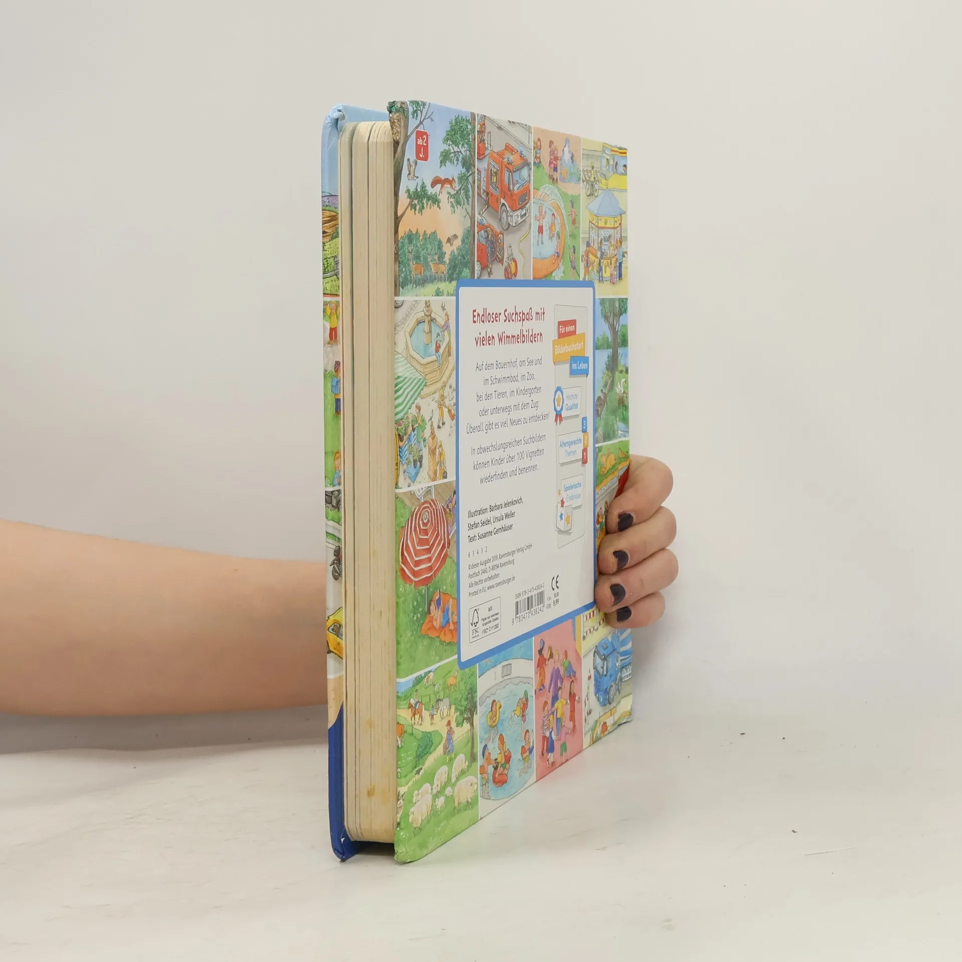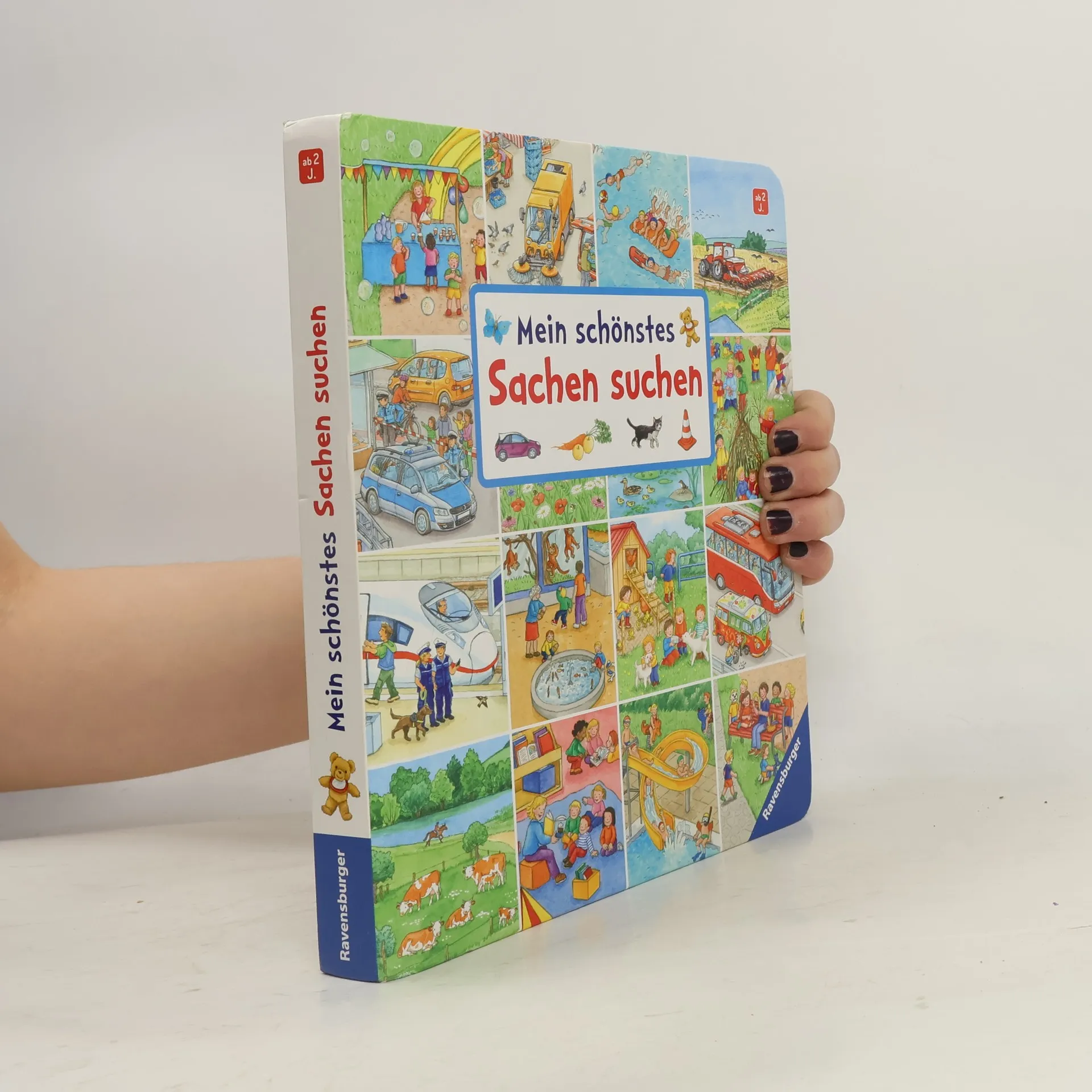 Jede Menge Suchspaß auf 15 Wimmelseiten können Kinder ab 2 Jahren in diesem dicken Buch Sachen suchen. Sie entdecken zum Beispiel den Bauernhof, den Wald, den Spielplatz, das Schwimmbad, den Zoo und viele weitere Orte mehr. Mit über 100 Suchvignetten laden die schönsten Bilder aus der erfolgreichen „Sachen suchen“- Reihe zum ersten Benennen und Erzählen ein. Endloser Suchspaß mit vielen Wimmelbildern! Mit über 100 kleinen Suchbildern wird dieser dicke Sonderband für jeden Fan der „Sachen suchen“- Reihe zum Lieblingsbuch. 15 der beliebtesten Wimmelszenen nehmen die Kinder mit an folgende Orte: BauernhofWaldWieseSchwimmbadSeeKindergarten StreichelzooBaustelleBahnhofÜberall können Kinder ab 2 Jahren auf der Suchleiste zahlreiche Gegenstände benennen und im Bild wiederfinden. Das regt nebenbei auch zum ersten freien Geschichtenerzählen an und fördert so optimal die Sprachentwicklung. Der Jubiläumsband zeigt die schönsten Szenen der Reihe „Sachen suchen“ und ist hochwertig ausgestattet mit einer Buchdecke. Dadurch ist er besonders stabil und langlebig.
