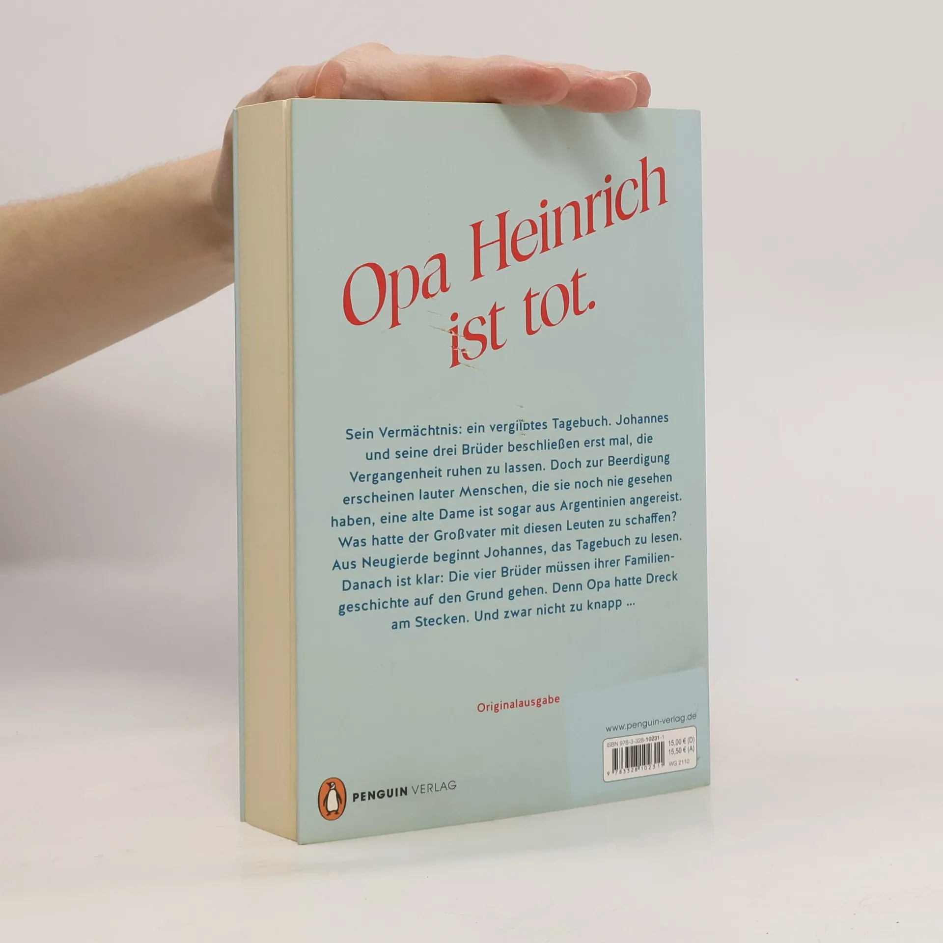 Eine Familie, die sich fremd geworden ist. Ein unerwartetes Erbe, das sie wieder zusammenführt. Und jede Menge Dreck am Stecken ... Opa Heinrich ist tot. Sein Vermächtnis: ein vergilbtes Tagebuch. Johannes und seine Brüder beschließen erst mal, seine Vergangenheit ruhen zu lassen. Doch zur Beerdigung erscheinen lauter Menschen, die sie noch nie gesehen haben, eine alte Dame ist sogar aus Argentinien angereist. Was hatte der Großvater mit diesen Leuten zu schaffen? Aus Neugierde beginnt Johannes, das Tagebuch zu lesen. Danach ist klar: Die vier Brüder müssen ihrer Familiengeschichte auf den Grund gehen. Denn Opa hatte Dreck am Stecken. Und zwar nicht zu knapp ...