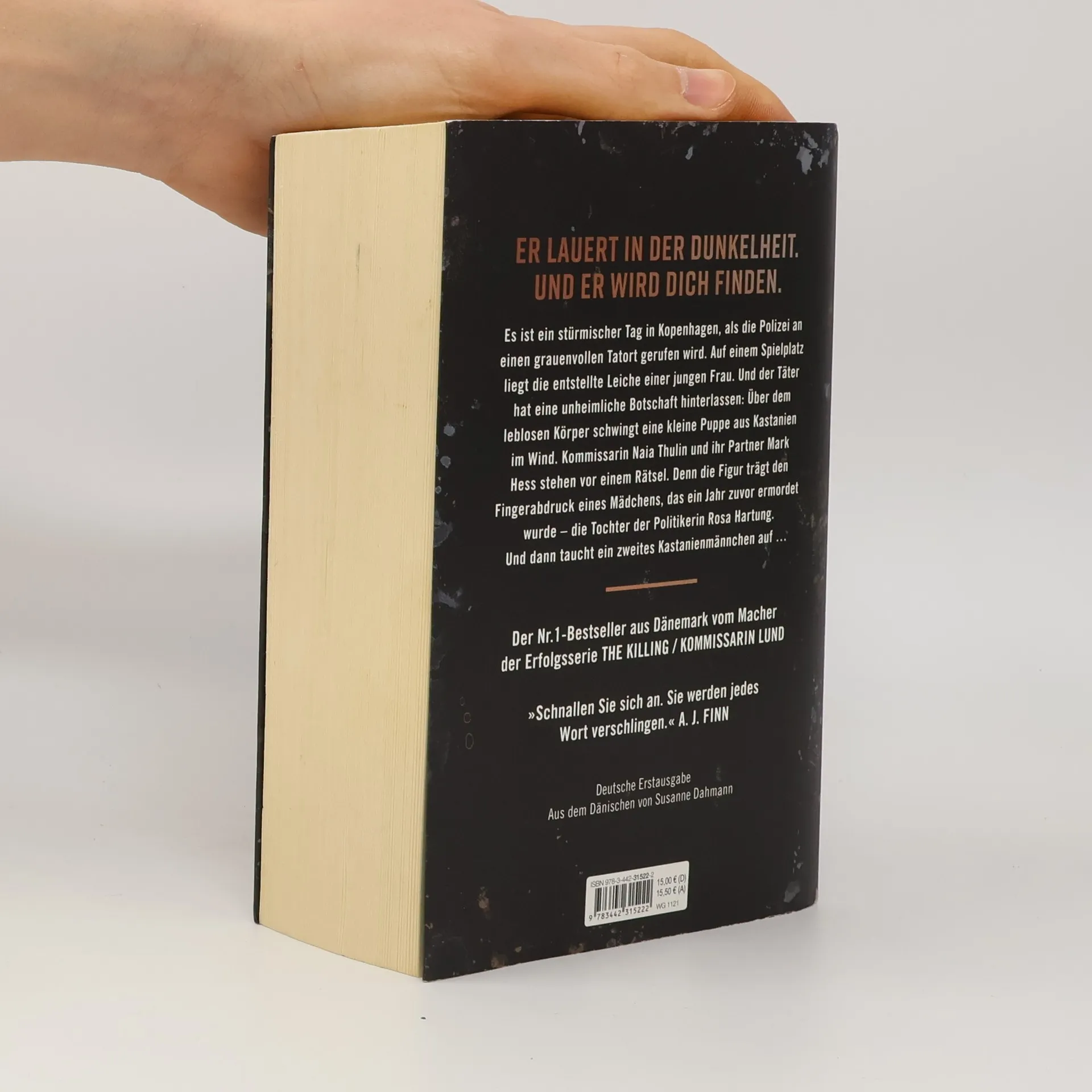 Der Nr.1-Bestseller aus Dänemark – vom Macher der Erfolgsserie THE KILLING (Kommissarin Lund). Es ist ein stürmischer Tag in Kopenhagen, als die Polizei an einen grauenvollen Tatort gerufen wird. Auf einem Spielplatz liegt die entstellte Leiche einer jungen Frau. Und der Täter hat eine unheimliche Botschaft hinterlassen: Über dem leblosen Körper schwingt eine kleine Puppe aus Kastanien im Wind. Kommissarin Naia Thulin und ihr Partner Mark Hess stehen vor einem Rätsel. Denn die Figur trägt den Fingerabdruck eines Mädchens, das ein Jahr zuvor ermordet wurde – die Tochter der Politikerin Rosa Hartung. Und dann taucht ein zweites Kastanienmännchen auf …