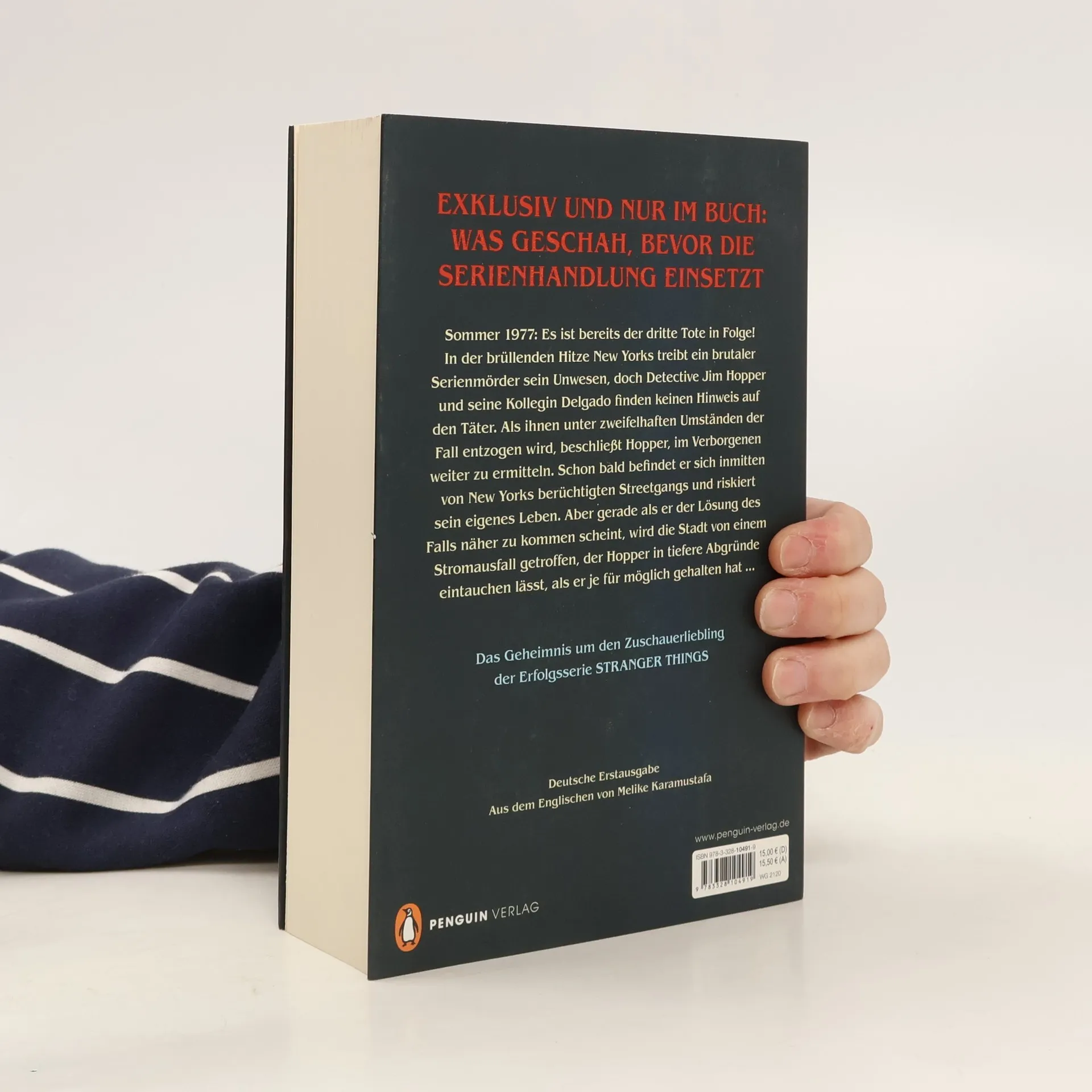 Exklusiv und nur im Buch: Was geschah, bevor die Serienhandlung einsetzt Sommer 1977: Es ist bereits der dritte Tote in Folge! In der brüllenden Hitze New Yorks treibt ein brutaler Serienmörder sein Unwesen, doch Detective Jim Hopper und seine Kollegin Delgado finden keinen Hinweis auf den Täter. Als ihnen unter zweifelhaften Umständen der Fall entzogen wird, beschließt Hopper, im Verborgenen weiter zu ermitteln. Schon bald befindet er sich inmitten von New Yorks berüchtigten Streetgangs und riskiert sein eigenes Leben. Aber gerade als er der Lösung des Falls näher zu kommen scheint, wird die Stadt von einem Stromausfall getroffen, der Hopper in tiefere Abgründe eintauchen lässt, als er je für möglich gehalten hat …Ein Muss für alle Fans. Und für alle, die die Serie noch nicht kennen: Ein extrem spannender Thriller.Wenn Sie noch tiefer in die mysteriöse Welt von STRANGER THINGS eintauchen wollen, lesen Sie gleich weiter:>> STRANGER THINGS: Das offizielle Begleitbuch>> STRANGER THINGS: Suspicious Minds. Das Geheimnis um Elfi