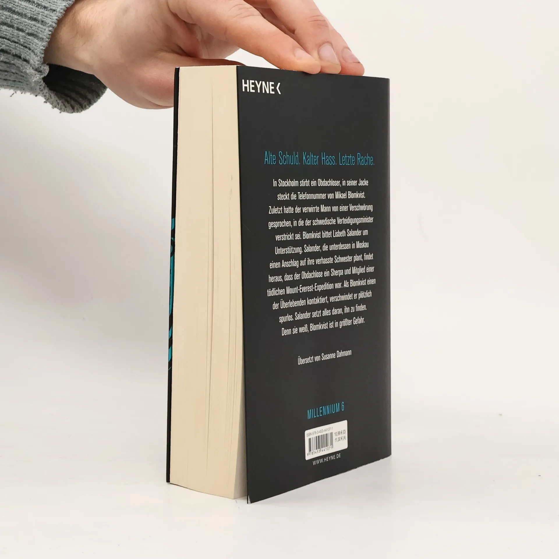 Ich werde die Jägerin sein und nicht die Gejagte Ein Obdachloser wird tot auf dem Stockholmer Mariatorget gefunden. In seiner Jackentasche findet sich die Telefonnummer von Mikael Blomkvist. Als eine DNA-Analyse ergibt, dass der Obdachlose ein sogenanntes Super-Gen besaß, das nur in einer bestimmten Ethnie in Nepal vorkommt, wird Blomkvist hellhörig und nimmt die Recherche auf. Lisbeth Salander hält sich unterdessen in Moskau auf, wo sie einen Anschlag auf ihre verhasste Schwester Camilla plant. Blomkvist bittet Salander um Unterstützung, und sie findet heraus, dass der Obdachlose ein Sherpa war, der an einer dramatischen Mount-Everest-Expedition mit tödlichem Ausgang teilgenommen hatte. Blomkvist kontaktiert einen der Überlebenden der Expedition und verschwindet plötzlich spurlos. Salander macht sich sofort auf die Suche nach ihm. Sie spürt, dass Blomkvist in großer Gefahr schwebt.