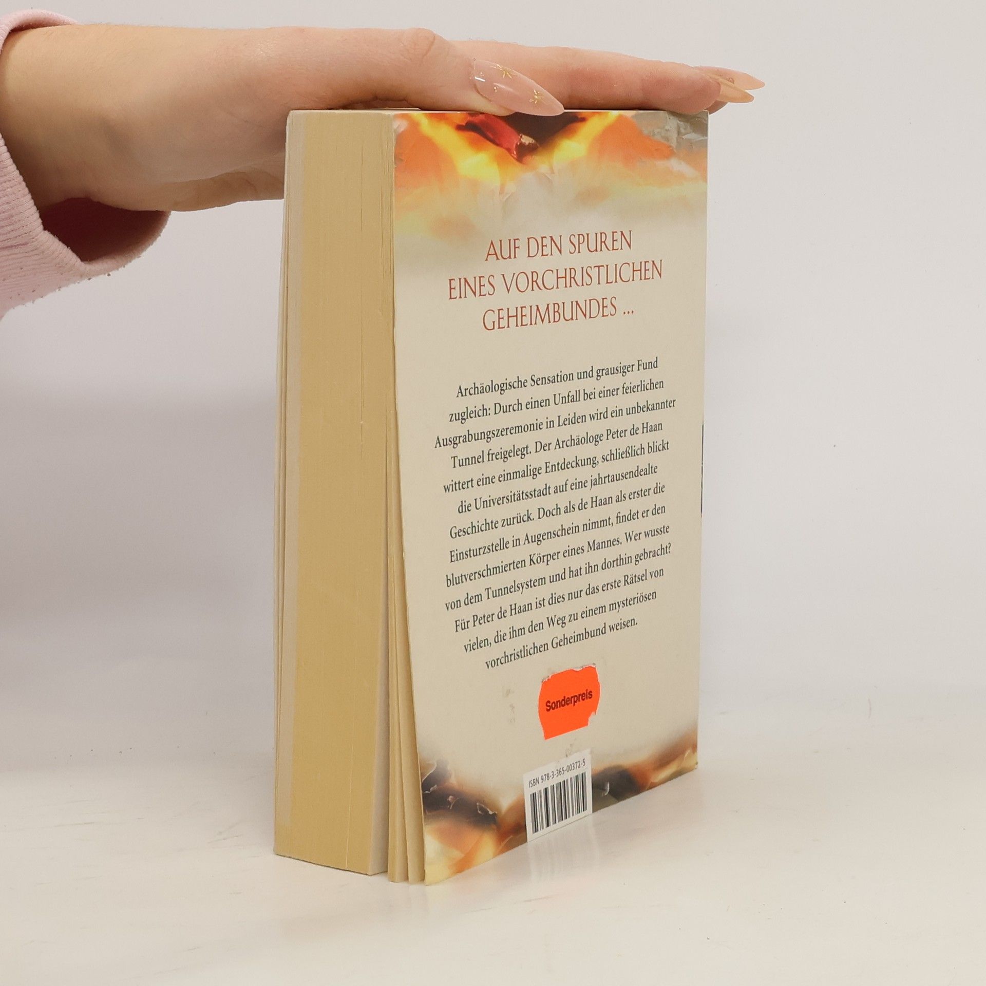 Archäologische Sensation und grausiger Fund zugleich: Durch einen Unfall bei einer feierlichen Ausgrabungszeremonie in Leiden wird ein unbekannter Tunnel freigelegt. Der Archäologe Peter de Haan wittert eine einmalige Entdeckung, schließlich blickt die Universitätsstadt auf eine jahrtausendealte Geschichte zurück. Doch als de Haan als erster die Einsturzstelle in Augenschein nimmt, findet er den blutverschmierten Körper eines Mannes. Wer wusste von dem Tunnelsystem und hat ihn dorthin gebracht? Für Peter de Haan ist dies nur das erste Rätsel von vielen, die ihm den Weg zu einem mysteriösen vorchristlichen Geheimbund weisen. »Ein gut geschriebener Actionthriller mit Tiefgang.« Nederlands Dagblad