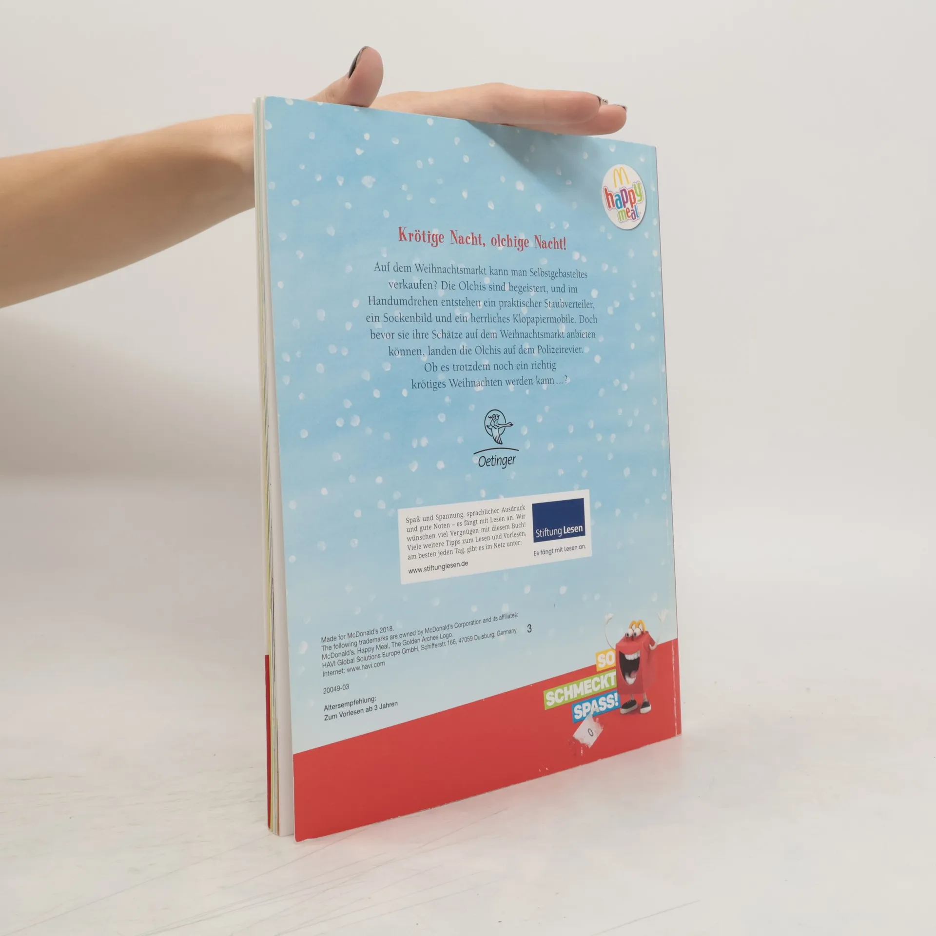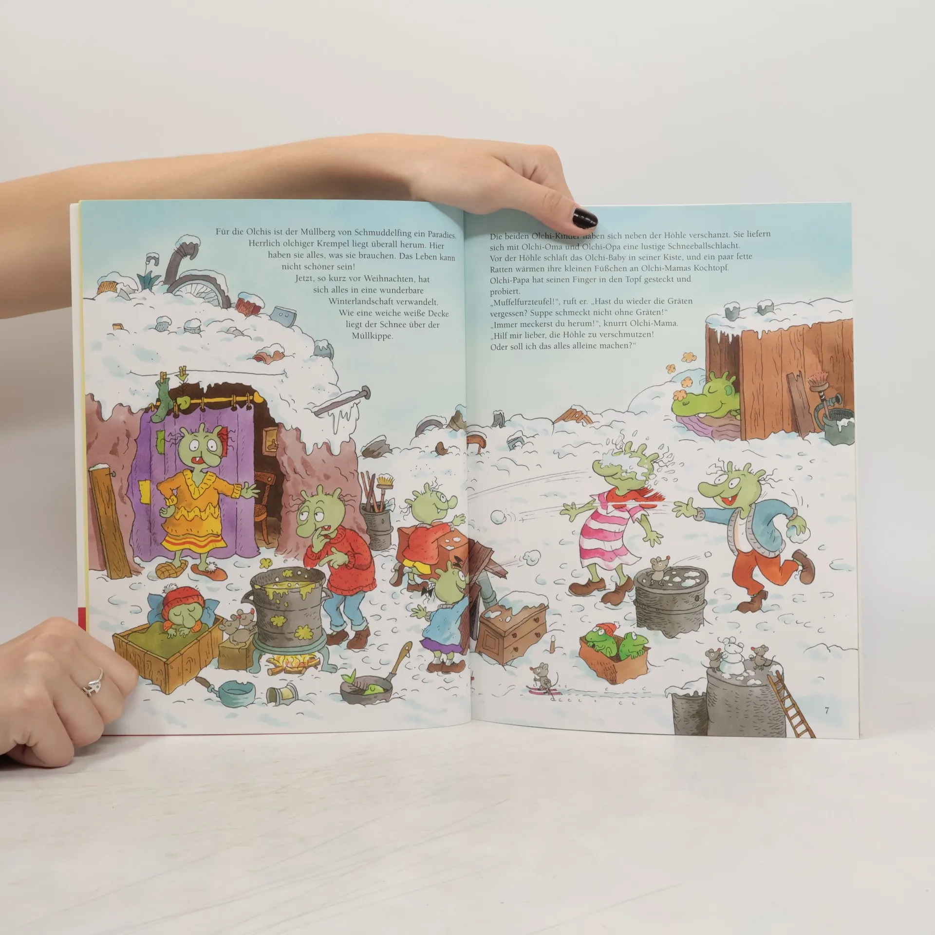 In „Krötige Weihnachten“ von Erhard Dietl erleben die Olchis, die liebenswerten grünen Wesen vom Müllberg, turbulente Festtage. Auf einem Weihnachtsmarkt versuchen sie, ihre skurrilen Erfindungen – einen Staubverteiler und ein Klopapier-Mobile – zu verkaufen. Doch ein Missverständnis führt die Olchis direkt aufs Polizeirevier. Währenddessen kämpfen auch andere Stadtbewohner mit dem Weihnachtstrubel: Der Weihnachtsmann hadert mit seinem ewigen „Ho, ho, ho“ und Polizistin Hufnagel sehnt sich nach ruhigen Feiertagen. Diese humorvolle, unkonventionelle Weihnachtsgeschichte, reich an Wärme und Heiterkeit, eignet sich ideal für Kinder ab 4 Jahren und verspricht ein einzigartiges Lese- und Vorleseerlebnis, das in Erinnerung bleibt. Familienfreundliche Weihnachtsunterhaltung : Eine charmante, humorvolle Geschichte, die Kinder und Eltern gleichermaßen amüsiert. Buchreihe mit Kultcharakter : Die Olchis sind bei jungen Lesern äußerst beliebt und garantieren Lesebegeisterung. Einzigartige Weihnachtsgeschichte : Bietet eine alternative, humorvolle Perspektive auf die Festtage. Ideale Vorlesegeschichten : Kurze, unterhaltsame Episoden eignen sich perfekt zum Vorlesen in der Adventszeit. Kindgerechte Aufmachung : Die Illustrationen und die witzige Erzählweise kommen bei Kindern besonders gut an.
